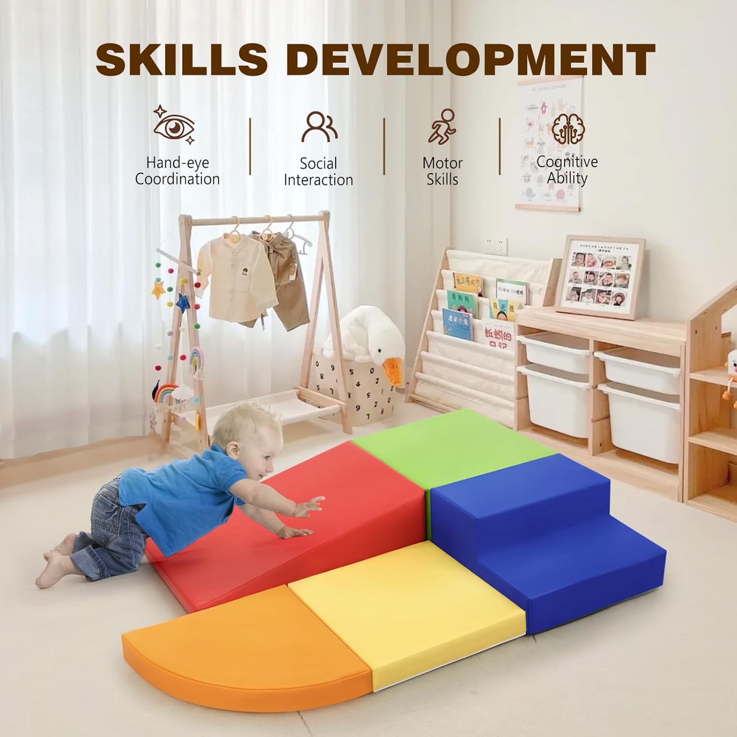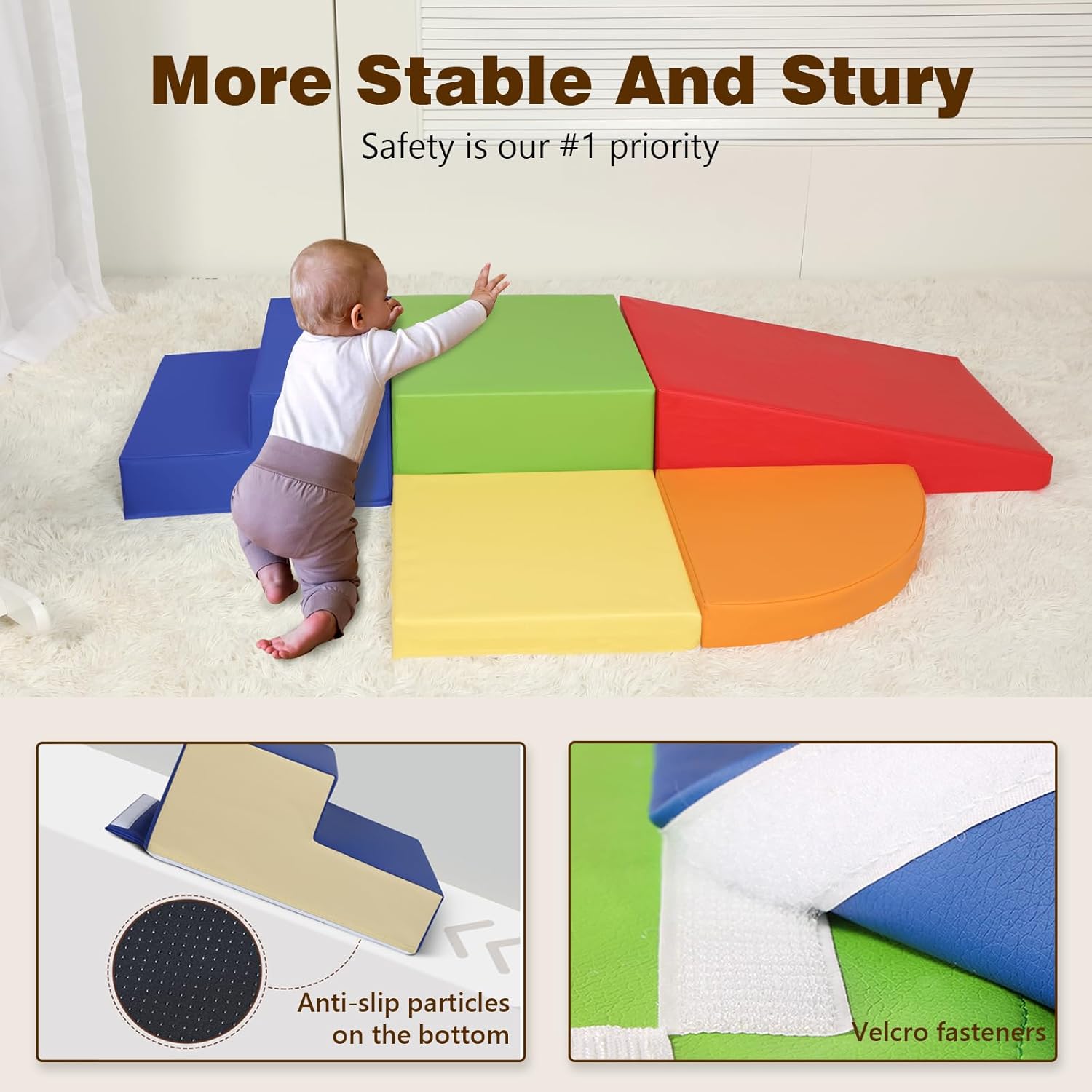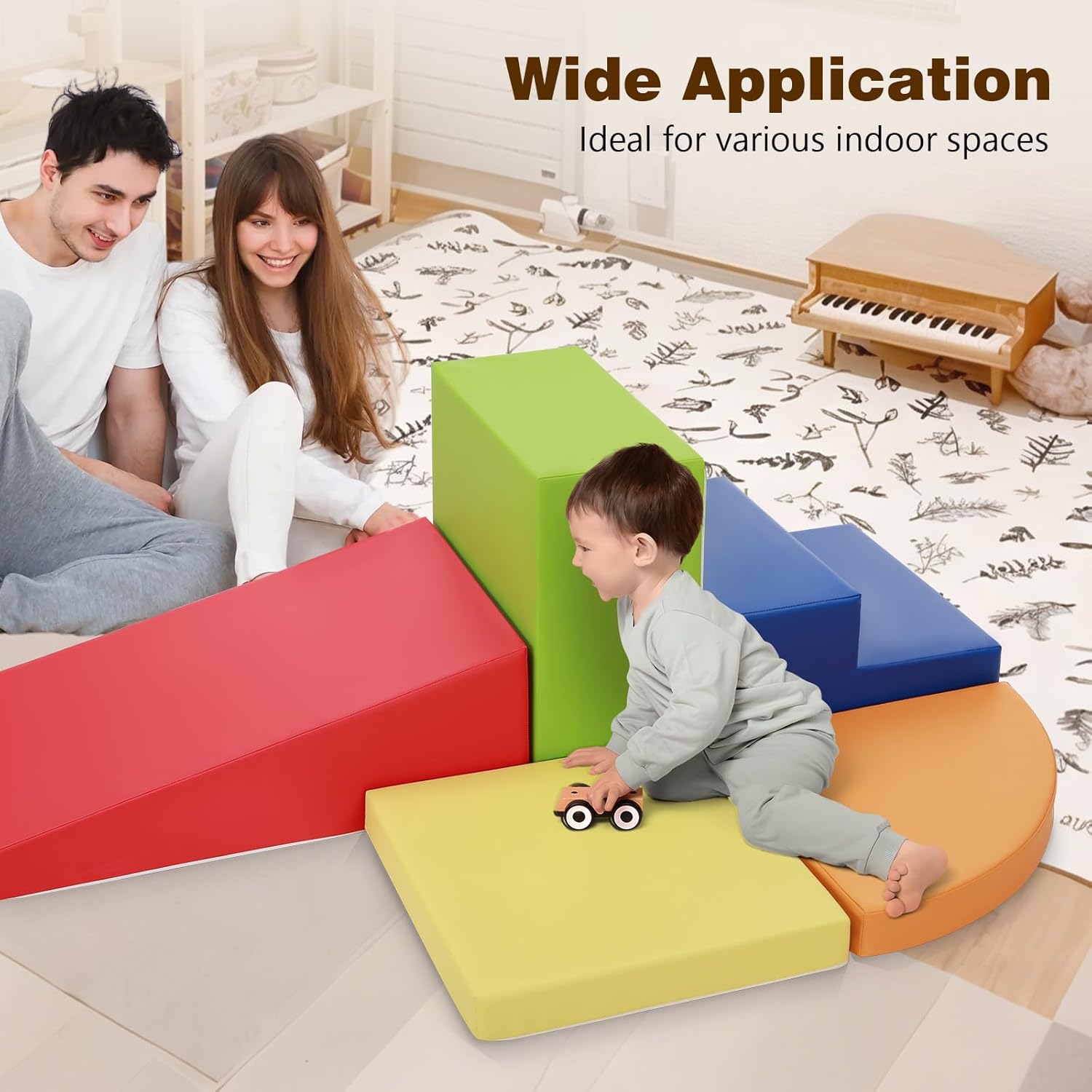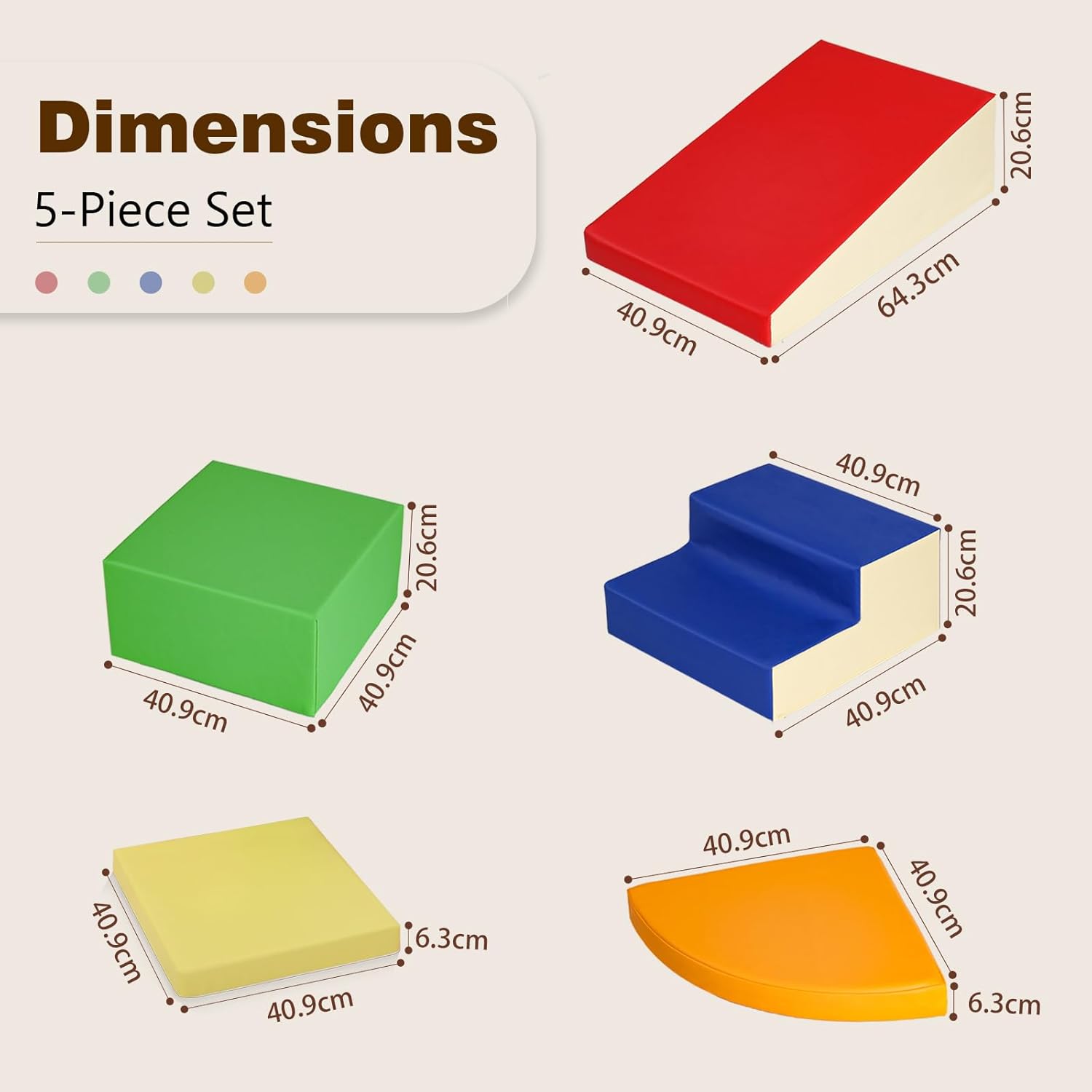 Avviso! Se c'è un problema in cui i blocchi in schiuma non rimbalzano, vi preghiamo di contattarci tempestivamente via email Gioco di Arrampicata Perfetto per Bambini: Questo set in schiuma da 5 pezzi è ideale per bambini dai 3 anni. Sicuro e divertente, adatto sia per uso interno che esterno Giocattolo Educativo per Bambini: Blocchi colorati che aiutano a riconoscere forme e colori, incoraggiando lo sviluppo spaziale e motorio in modo sicuro Set Versatile in Schiuma: Include gradino blu scuro, mezzaluna arancione e quadrato verde. Stimola la creatività nel costruire percorsi di arrampicata Alta Qualità e Facile da Pulire: Realizzato in schiuma resistente e pelle PU. Facile da pulire e perfetto per il gioco quotidiano