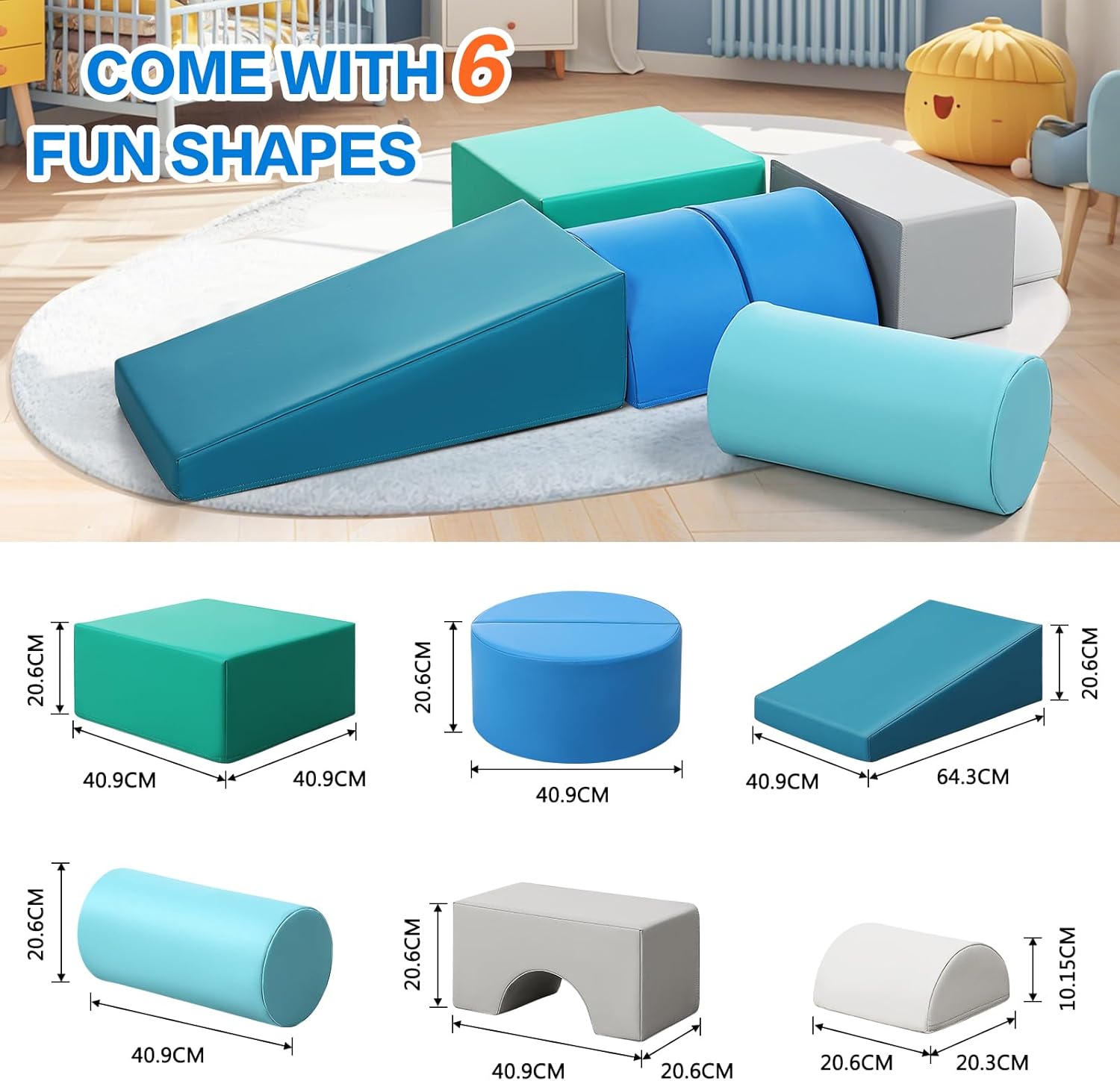 Avviso! Se c'è un problema in cui i blocchi in schiuma non rimbalzano, vi preghiamo di contattarci tempestivamente via email Design modulabile: 6 forme leggere e componibili. Crea palestre, divanetti o aree gioco per stimolare la fantasia dei più piccoli Gioco attivo sicuro: Pelle PU e schiuma densa mantengono la forma. Perfetto per arrampicate e giochi dinamici, da solo o con cuscini Sviluppo motorio: Potenzia abilità motorie, equilibrio e coordinazione. Favorisce interazione sociale e sicurezza superando ostacoli Pulizia pratica: Cerniera scorrevole per montaggio rapido. Superficie impermeabile e facile da pulire. Integra qualsiasi spazio gioco Regalo ideale: Per casa, asili o scuole. Un'ottima idea per Natale o compleanni, unendo divertimento e crescita