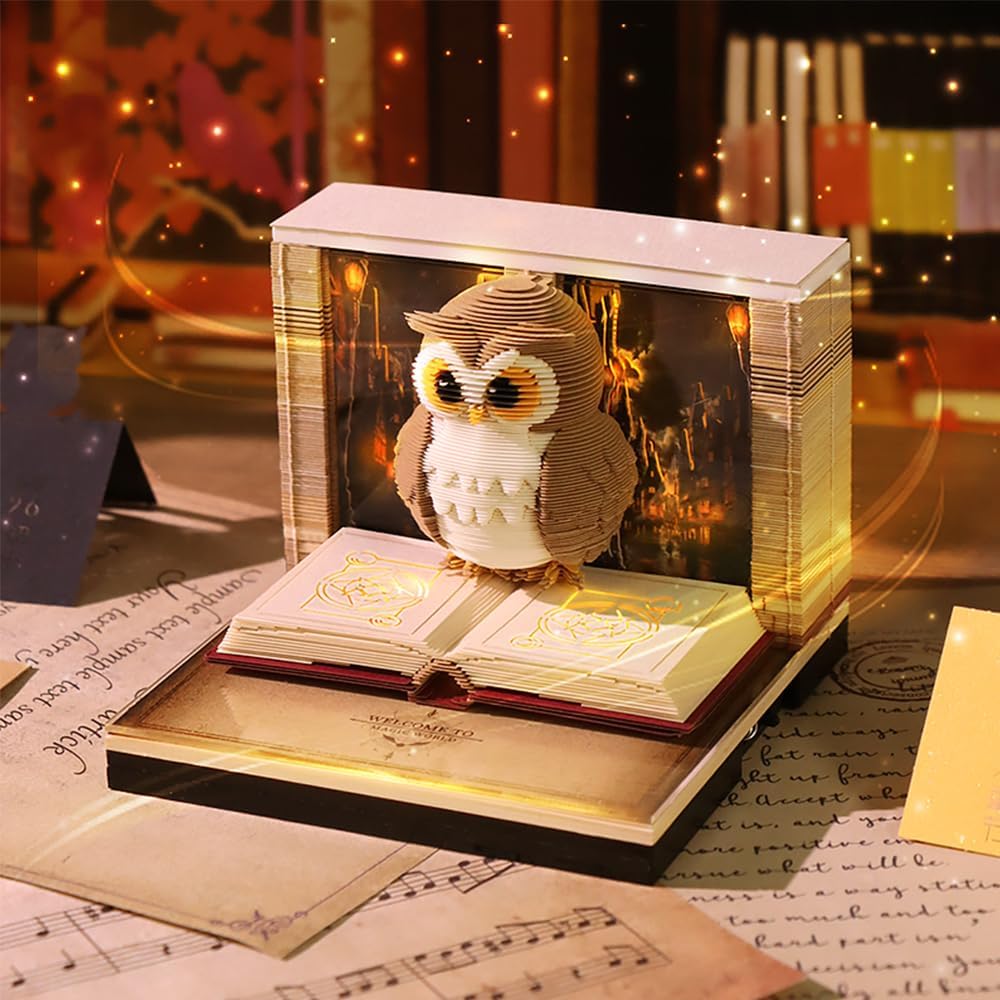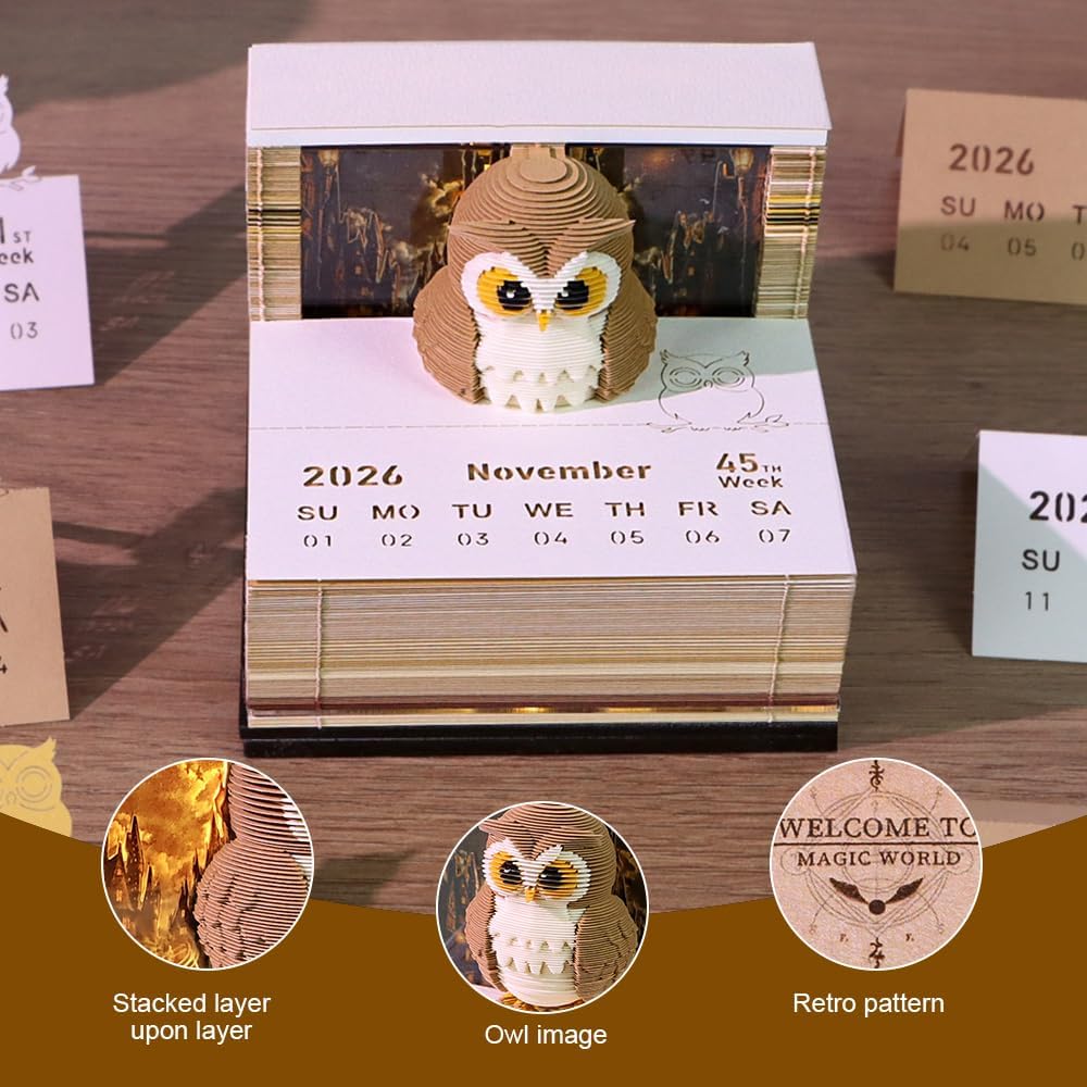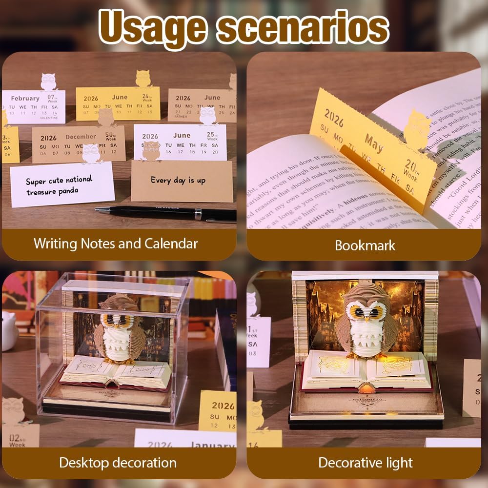 [Calendario 3D creativo] Questo versatile taccuino 3D, che combina calendario, blocco note e scultura di carta, si evolve ad ogni strappo. Strappare una pagina ogni giorno per immortalare momenti bellissimi. Una volta strappata l'ultima pagina, il Gufo si rivela gradualmente, presentandosi perfettamente. Più che un semplice strumento per prendere appunti, è anche una meravigliosa decorazione da scrivania. [Illuminazione a LED integrata] L'illuminazione a LED integrata del blocco note 3D (dotato di due batterie al litio 2032) ti trasporterà in un mondo magico, stimolando la tua creatività, facendo brillare la tua scrivania e aggiungendo un'atmosfera affascinante alla tua stanza. Grazie alla sua copertura in acrilico, tutto ciò che devi fare è premere l'interruttore per migliorare la tua serata. [Artigianato squisito] Realizzato con carta speciale di alta qualità e tecniche di intaglio della carta, il calendario da tavolo creativo 3D presenta carta decorativa colorata e forme squisite, conferendo al calendario un fascino unico che attirerà sicuramente l'attenzione. Dotato di una copertura acrilica antipolvere, è un pezzo decorativo unico perfetto per qualsiasi spazio. Unisce la praticità e l'artigianato classico della scultura di carta, creando un'opera d'arte decorativa ed ecologica. [Decorazione perfetta] I materiali premium del blocco note 3D garantiscono la durata e la longevità del blocco note del calendario 2026, ideale per la visualizzazione a lungo termine su una scrivania o uno scaffale. Staccando i foglietti adesivi uno ad uno, non solo potrai annotare eventi importanti, ma anche assaporare ogni momento di sorpresa e gioia finché il bigliettino non sarà perfettamente ripristinato, alleviando stress e ansia. [Regalo perfetto] La squisita fattura e la consistenza trasparente dei foglietti adesivi del castello 3D resistono alla deformazione e allo sfilacciamento, rendendolo un regalo ideale per occasioni speciali come San Valentino, compleanni, festa della mamma, Ringraziamento, Natale e Capodanno. Il blocco note 3D è un regalo unico e pratico, simbolo di cura e benedizione. Usalo per esprimere il tuo amore e la tua preoccupazione per gli altri.