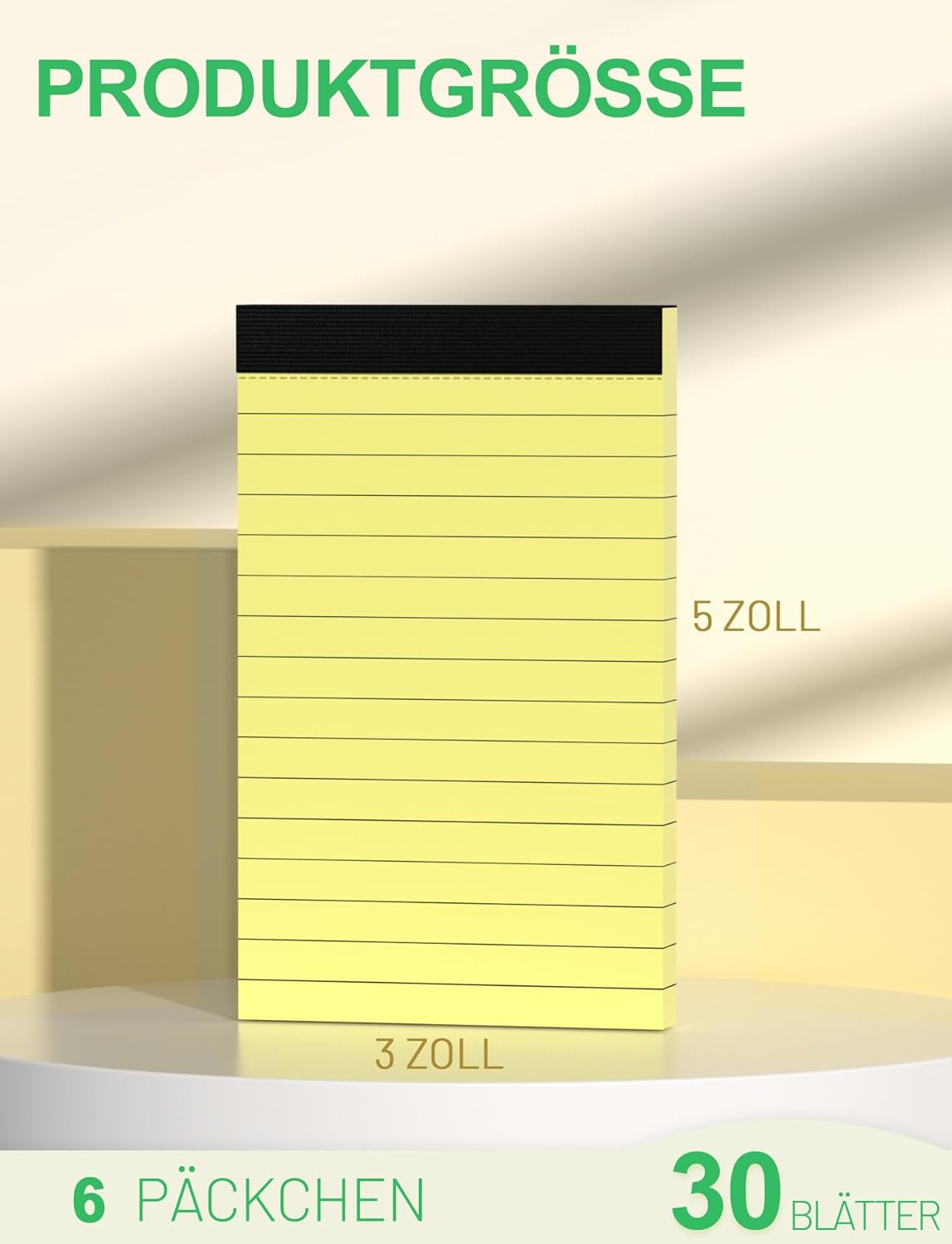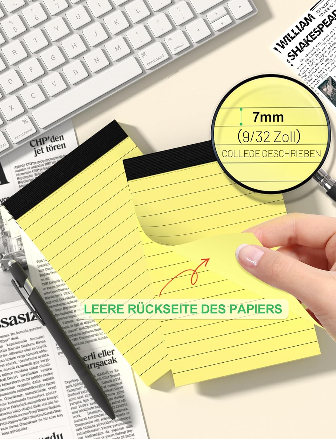 Blocco note A7 - Piccolo - Giallo - Formato A7 - Ricarica - 30 fogli per blocco - Mini blocco note a righe - Piccolo blocco note di ricambio per lavoro, ufficio, scuola - Confezione da 6