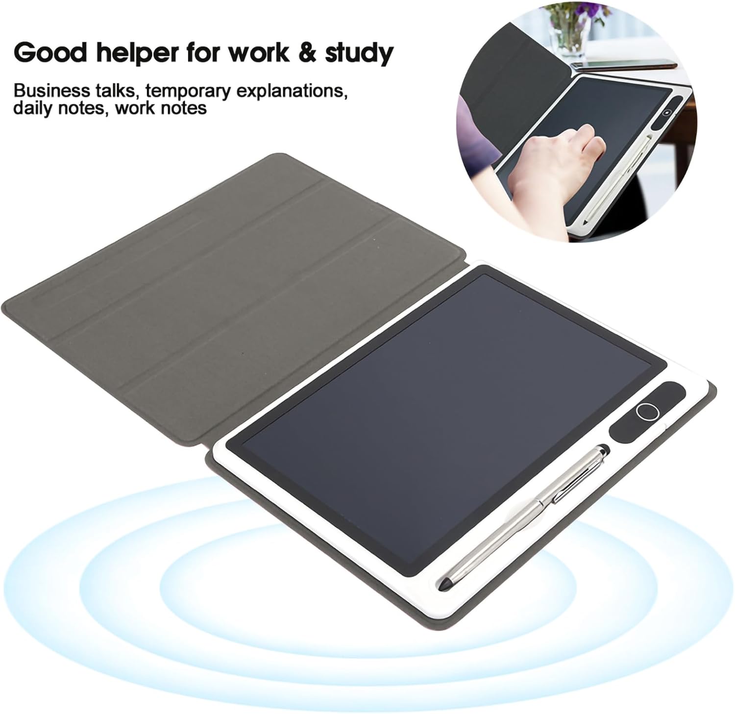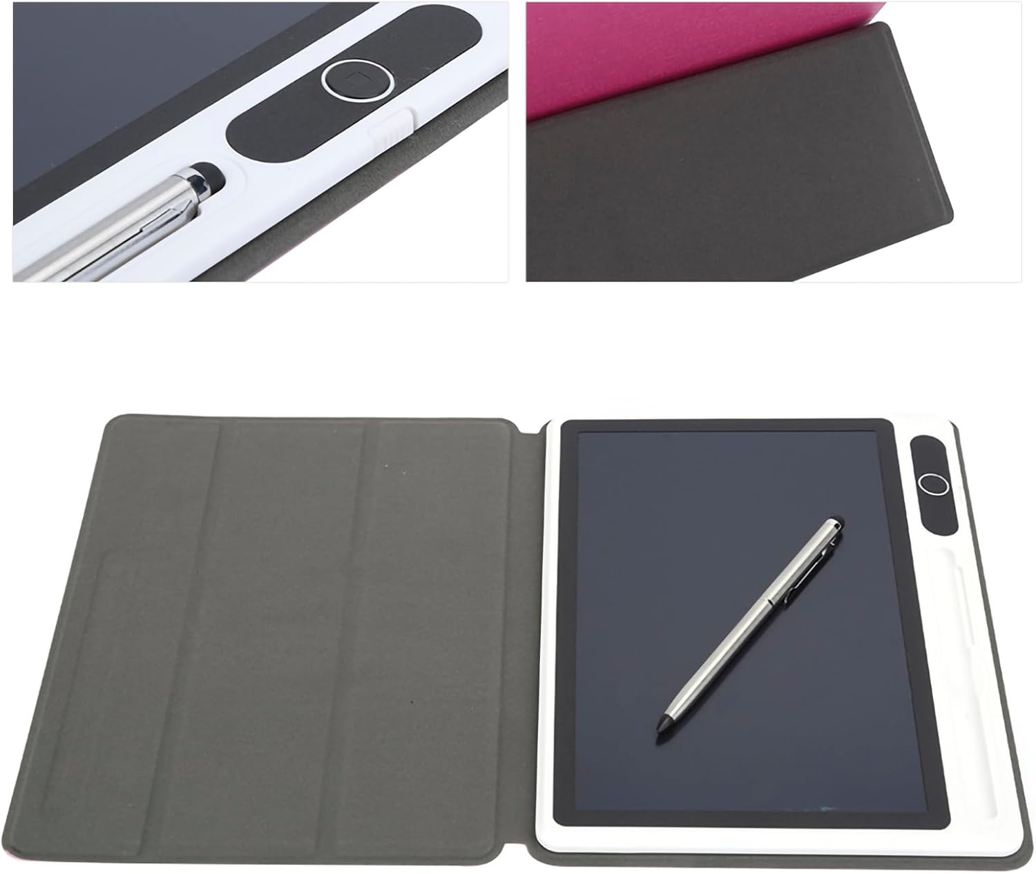 Protezione degli occhi: il blocco da disegno monocolore utilizza la tecnologia LCD sensibile alla pressione, non dovrai più preoccuparti di sprecare carta. Lo schermo LCD non ha radiazioni e abbagliamenti, non si illumina al buio ed è confortevole per i tuoi occhi. Buone prestazioni: la tecnologia a basso consumo energetico aiuta il blocco da disegno a scrivere più di 100.000 volte. La pellicola LCD flessibile adotta una tecnologia di laminazione ad alta tecnologia, il sensore di pressione riproduce perfettamente la tradizionale sensazione di scrittura su carta. Ampia applicazione: la lavagna LCD è adatta per appunti, bozze, aritmetica, ortografia e assistenti di apprendimento. Può essere utilizzato come lavagna per appunti, tavolo da disegno, blocco note, lavagna per ufficio, ausili grafici, blocco per appunti, ecc. Protezione completa e supporto stabile: la copertura protettiva in PU avvolge perfettamente il blocco note elettronico, con un buon assorbimento degli urti. Design della copertina pieghevole, può essere piegato in un supporto stabile per la visualizzazione e la scrittura. Un buon aiuto per lavoro e studio, riunioni di lavoro, spiegazioni temporanee, note quotidiane e promemoria di lavoro. Promemoria: questa tavoletta grafica LCD non può connettersi a telefoni o computer, se è necessario salvare note o scarabocchi, è possibile utilizzare il telefono per scattare una foto o eseguire la scansione. Si consiglia di utilizzare questo prodotto in un'area ben illuminata per vedere il contenuto dello schermo più chiaramente.