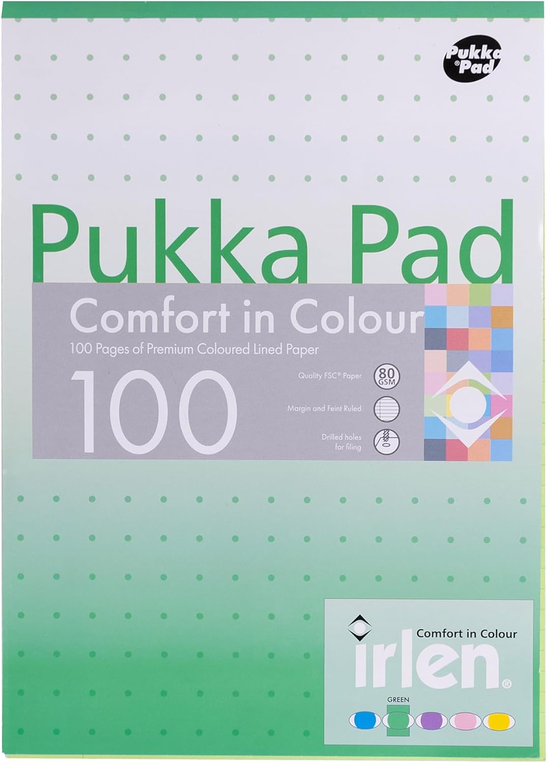 Blocco note verde per dislessia e sindrome di Irlen. Ottima carta per dislessici e occhi irritati. Qualità del blocco note Pukka testata per la sindrome di Irlen. 100 fogli A4 a righe.
