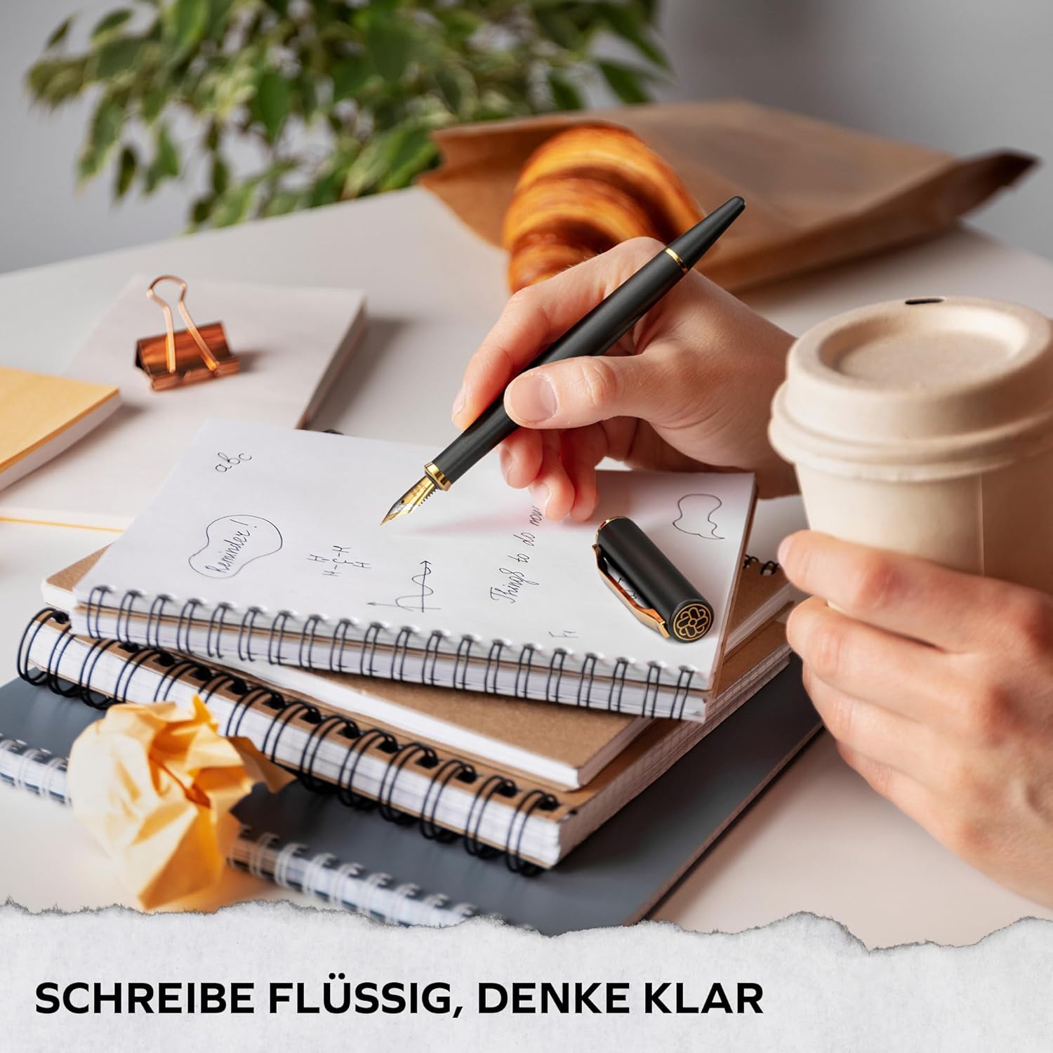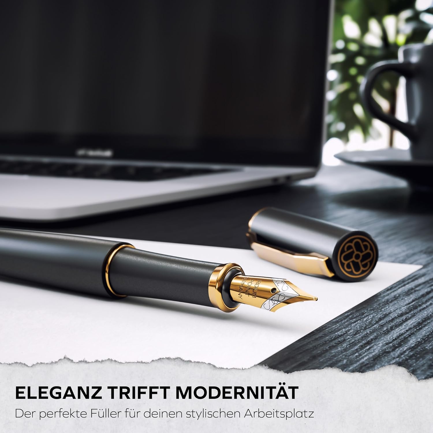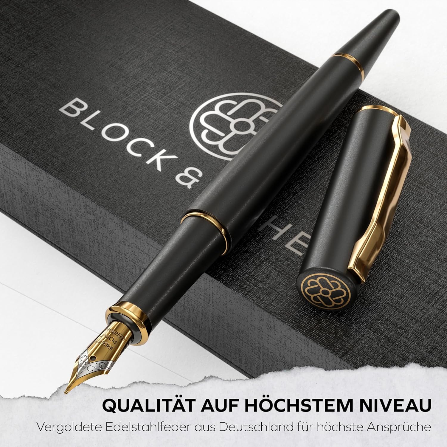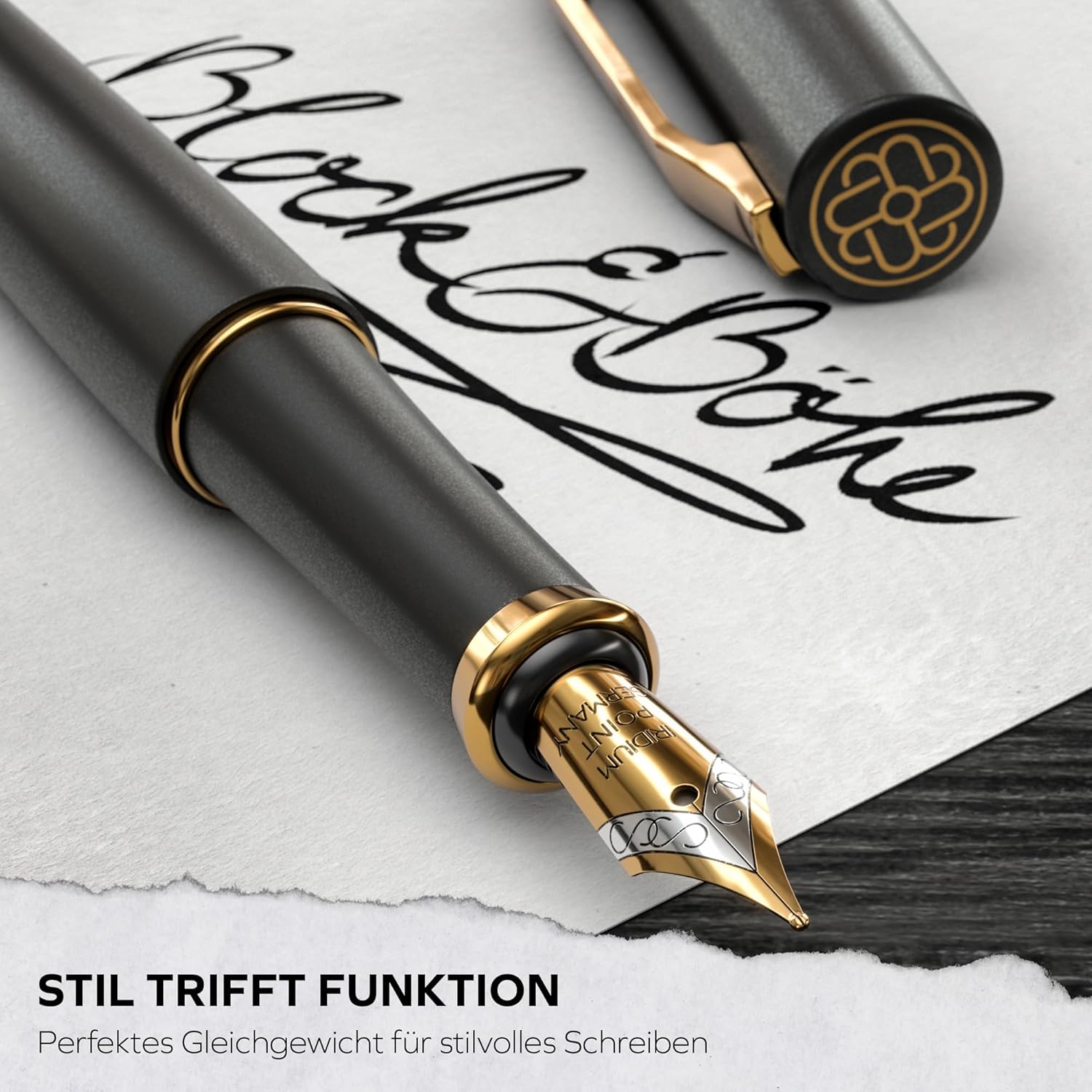 Nobile pennino tedesco: il pennino (medio) della penna stilografica è realizzato in acciaio inossidabile tedesco, placcato in oro e raffinato. Ciò offre un'affidabilità e una qualità eccezionali che garantiscono il piacere della scrittura ai massimi livelli. Design estetico: La penna stilografica ha un design moderno e minimalista. La sensazione di esclusività e lusso è sottolineata dalle linee chiare e dalla lavorazione di alta qualità. La penna stilografica è ideale anche per i mancini. Set regalo completo: la penna stilografica viene fornita in una confezione attraente che include una cartuccia d'inchiostro, un convertitore di inchiostro, una confezione regalo e un manuale utente. Questo lo rende il regalo perfetto per donne e uomini. Design a colori: per l'elegante penna stilografica nera, il colore del testo è oro, in abbinamento ai dettagli placcati oro della penna. Il modello grigio utilizza un colore del testo argento che si abbina armoniosamente agli anelli argento della penna. Materiali di alta qualità: ogni aspetto di questa penna stilografica è stato accuratamente selezionato per garantire sia l'estetica che la funzionalità. L'uso di materiali di alta qualità e un rivestimento speciale garantiscono una lunga durata e un'eccezionale qualità di scrittura.