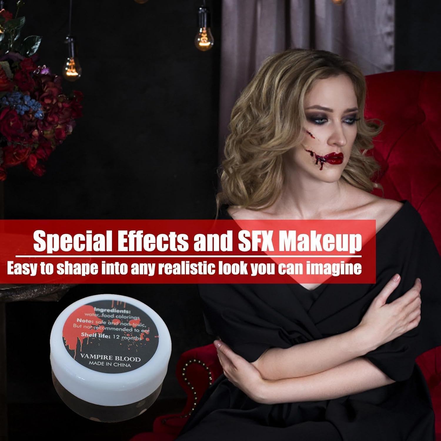 Usi multipli: trasformati in una creatura macabra con il nostro accessorio per il sangue di Halloween. Modella secondo l'aspetto desiderato per cicatrici, ustioni e altro ancora realistiche. Rendi il tuo costume spaventoso. Facile da trasportare: il sangue di vampiro di Halloween ti consente di creare il trucco desiderato; le dimensioni portatili ti consentono di portarlo facilmente al tuo Halloween o ad altre feste a tema. Ingredienti morbidi: ottieni un look spaventoso di Halloween con il nostro accessorio per il sangue che utilizza ingredienti delicati sulla pelle e sicuri, dandoti un aspetto realistico senza alcun danno alla tua pelle. Ampiamente applicabile: adatto per una varietà di eventi come spettacoli sul palco, cosplay, feste a tema, rifacimento di Halloween, case infestate spaventose e carnevale. Pulizia senza sforzo: risparmia tempo e fatica pulendo dopo la festa di Halloween con il nostro accessorio per il sangue. Basta usare il detergente per il viso o l'olio detergente per rimuovere il trucco dal sangue di vampiro, senza sforzo.