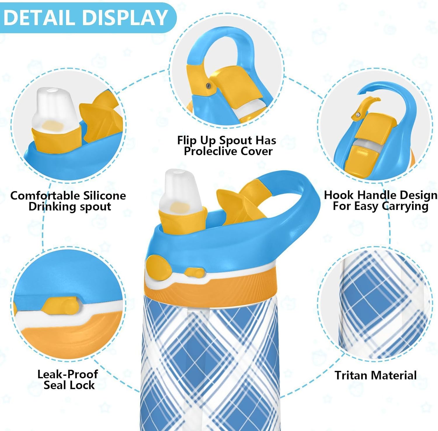 Materiali di qualità: la borraccia per bambini (16 x 7,5 cm) utilizza tritan e silicone alimentare. Ideale per pratica sportiva o picnic. Non adatta a bambini di età inferiore ai 3 anni Comoda da trasportare: con un ampio manico per mani piccole e un gancio sul coperchio, la borraccia per bambini può essere appesa agli zaini. I bambini non faranno fatica a trasportarla durante le gite sul campo o le attività dopo la scuola. Uso senza problemi con una sola mano: il design a becco d'anatra si adatta alle bocche dei bambini, con una copertura antipolvere. L'interruttore a pulsante della borraccia per bambini è facile da usare con 1 mano, anche quando giocano o corrono. Previene le perdite: il blocco a pulsante blocca l'apertura accidentale del becco d'anatra. Mantiene le bevande all'interno, proteggendo zaini e vestiti durante i pendolari o il gioco. Pulizia semplice: le parti completamente rimovibili evitano l'accumulo di sporco. Pulire con detergente neutro e acqua calda: facile per i genitori mantenere pulita la borraccia sportiva per l'uso quotidiano.