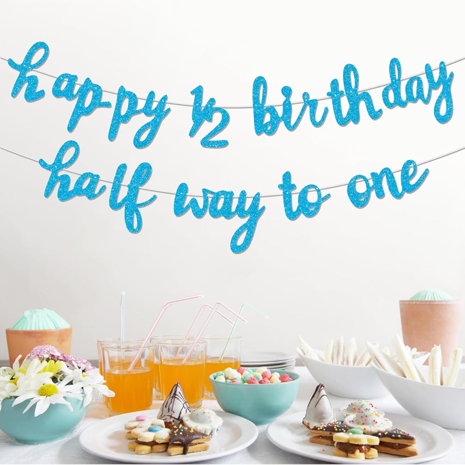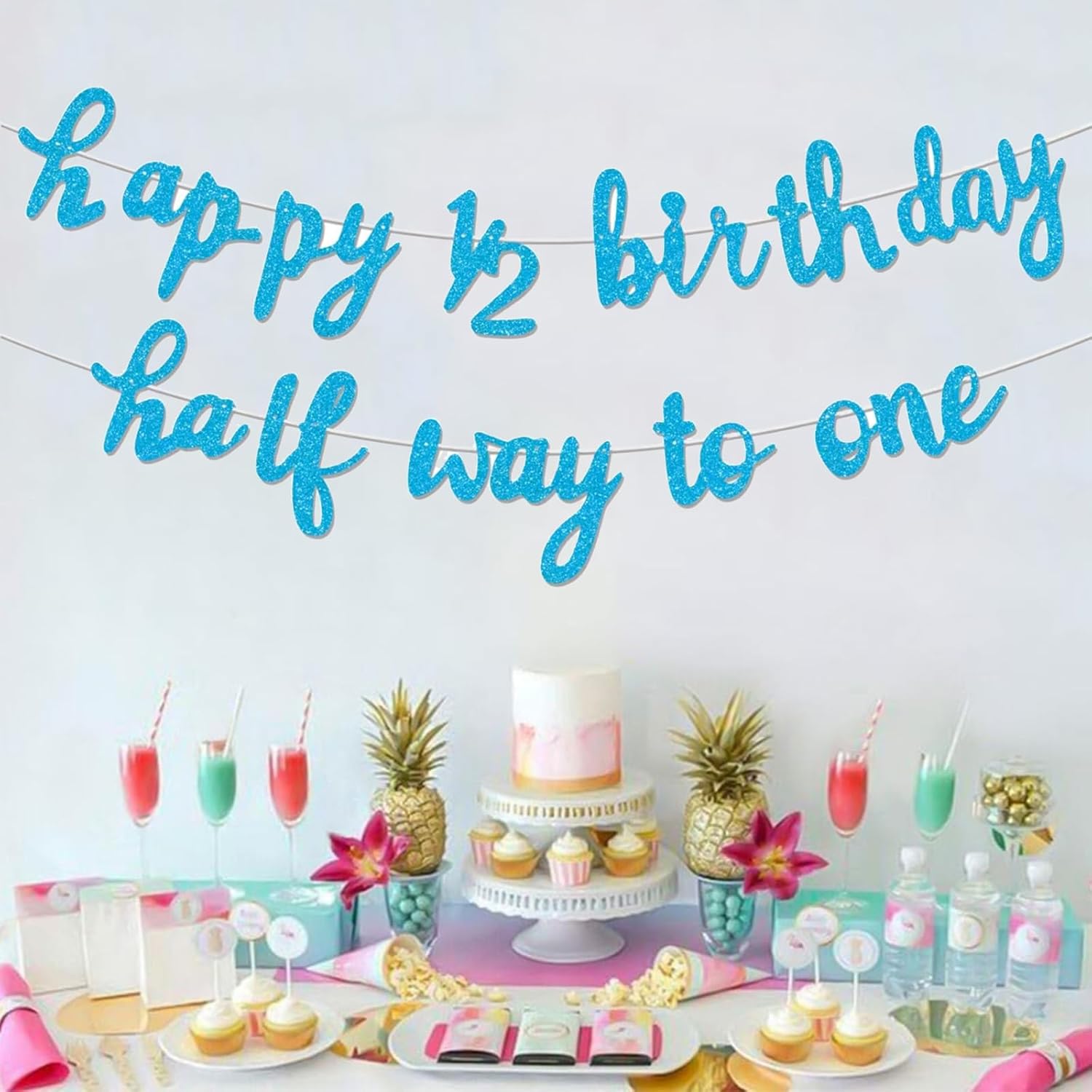 Blu Half Way To One Banner Half Way To One Decorazioni per Ragazza 1/2 Compleanno Decorazioni