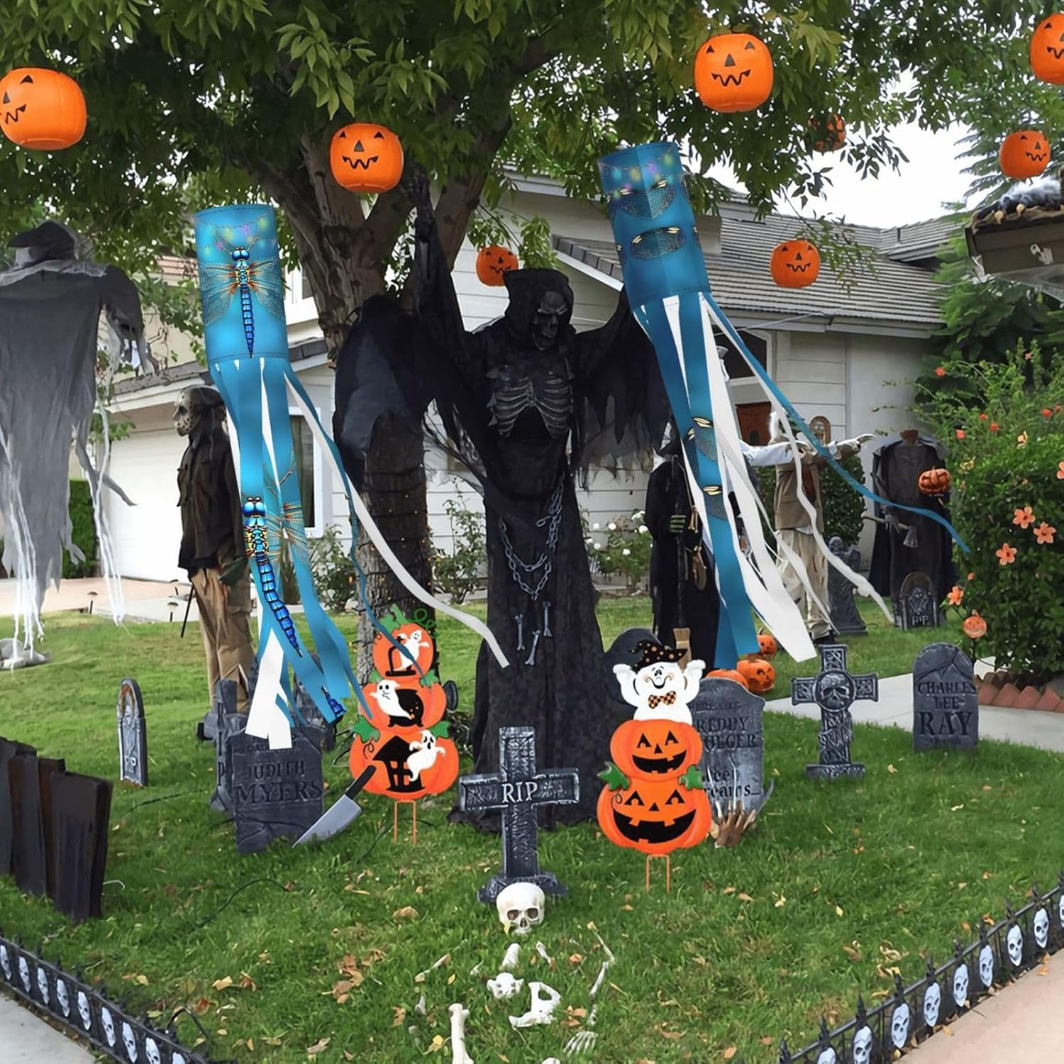 Realizzate con materiale leggero e arioso: le nostre calze a vento sono realizzate in poliestere leggero e svolazzante, progettate per un'asciugatura rapida e un volo ventilato, creando uno splendido display dinamico con le loro nove code. Ideali per tutte le feste: queste calze a vento sono perfette per Halloween, Natale e altre vacanze. Aggiungeranno un fascino accattivante a giardini, strade, parchi giochi, aperture di eventi e altro ancora. Struttura intelligente: misura 102 cm di altezza e 15,4 cm di larghezza, queste calze a vento hanno un'asta di supporto integrata e un connettore di tipo A sulla corda di nylon a tre lati lunga 40 cm per appenderlo in modo sicuro e facile. Illuminazione opzionale: scegli tra la nostra versione con una deliziosa stringa di luce a LED colorata per uno spettacolo notturno scintillante o la versione non illuminata per un elegante display diurno. Istruzioni per la cura: per mantenere il loro aspetto vivace, queste calze a vento devono essere lavate a mano e asciugate all'aria naturalmente. Si sconsiglia il lavaggio in lavatrice e la candeggina.
