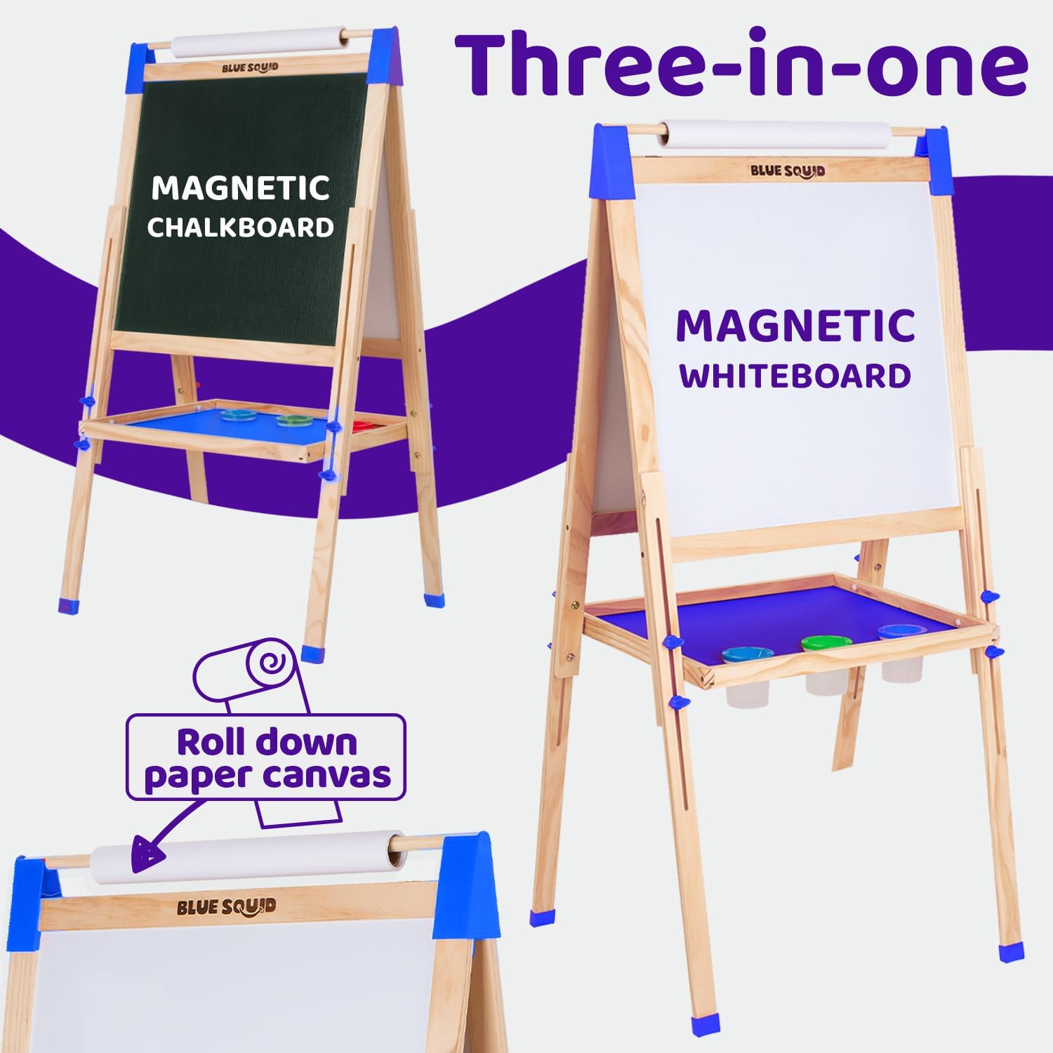 Il cavalletto artistico per bambini 3 in 1 di Blue Squid per bambini 3-4 presenta una lavagna su un lato e una lavagna cancellabile a secco sull'altro. Entrambi i lati sono magnetici, fissando la carta a discesa in posizione con i pulsanti magnetici inclusi, offrendo ore di divertimento per dipingere, praticare ABC e altro ancora! Un regalo perfetto per bambini di 3-4 e 4-9 anni, questo cavalletto divertente ed educativo stimola l'immaginazione, migliora le capacità motorie e rende l'apprendimento divertente attraverso il gioco creativo. Questo cavalletto per bambini dispone di un pratico vassoio per contenere gli accessori di cui hai bisogno. Con una lavagna magnetica su un lato e una lavagna con clip per fissare fogli di diverse dimensioni dall'altro, è double face per il massimo utilizzo. Entrambi i lati del cavalletto artistico per bambini da 3 a 4 anni e cavalletto artistico per bambini dai 4 agli 8 anni consentono ai bambini di godersi una varietà di divertimento nella pittura. Regalo perfetto per Natale o compleanno per bambini e bambini. Il cavalletto per bambini include accessori di base tra cui 3 barattoli di vernice, pennarelli per lavagna bianca, gomma con panno e rotolo di carta ricaricabile. Il cavalletto include anche un ampio vassoio portaoggetti sotto e supporti integrati per tazze di vernice, fornendo tutto ciò di cui il bambino ha bisogno per il suo capolavoro in un'unica posizione comoda. Questo cavalletto artistico per bambini dai 8 ai 12 anni viene fornito con un cavalletto magnetico anche per bambini dai 3 ai 4 anni, garantendo che ogni bambino possa divertirsi. Questo cavalletto per bambini si regola da 81,3 cm a 132,1 cm, rendendolo adatto per bambini dai 3 ai 12 anni. L'altezza del cavalletto per bambini 3-4 anni e il cavalletto artistico per bambini dai 4 ai 9 anni possono essere modificati per adattarsi all'età del bambino. Ciò significa che un cavalletto artistico per bambini è tutto ciò di cui hai bisogno dall'asilo alla scuola elementare. Funziona alla grande anche come cavalletto all'aperto per i bambini. Il nostro cavalletto regolabile per bambini è costruito con una struttura robusta e facile da pulire, garantendo uno spazio artistico sicuro e piacevole per i bambini. La nostra lavagna per bambini a doppio lato è progettata per una maggiore robustezza, rendendola perfetta per ore di gioco creativo.