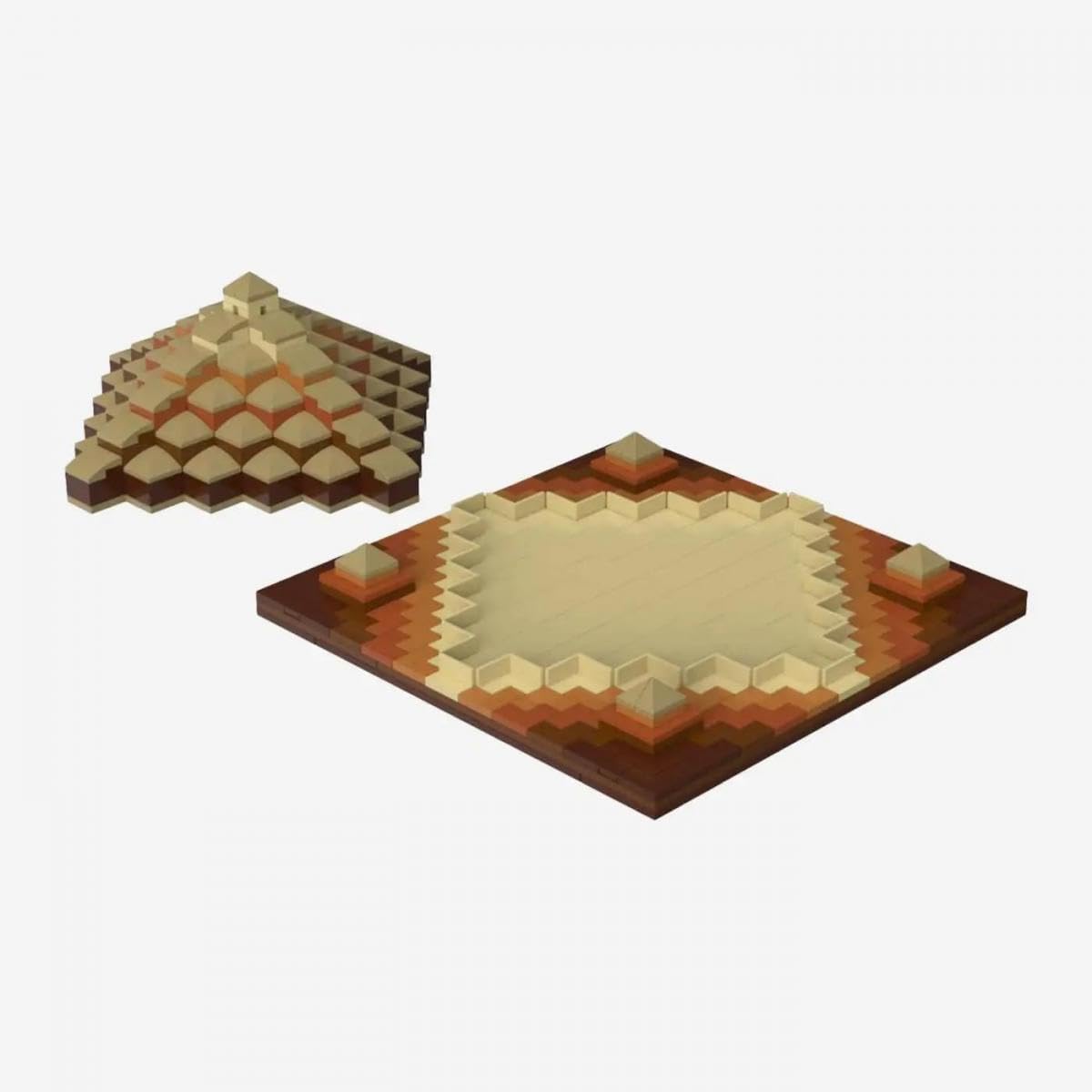 PUZZLE 3D CREATIVO CON TEMA PIRAMIDALE: questo set combina enigmi e costruzioni in un'esperienza affascinante. A poco a poco viene creato un paesaggio piramidale dettagliato con livelli a gradini e quattro piramidi angolari. UNA SOLA COMBINAZIONE PORTA ALLA SOLUZIONE: La costruzione richiede un po' di pazienza e logica: la soluzione completa è inclusa nelle istruzioni allegate. DESIGN DECORATIVO CON SFUMATURE DI COLORE ARMONICHE: Le pietre color sabbia, marroni e rossastre creano un aspetto autentico che fa apparire il modello particolarmente elegante e colpisce come punto culminante decorativo. RAPPRESENTAZIONE DETTAGLIATA CON STRUTTURA REALISTICA: I gradini chiari e la piramide principale disposta centralmente conferiscono al set una profondità visiva e lo rendono un eye-catcher in diorami o vetrine. IDEALE COME REGALO O PEZZO DA ESPOSIZIONE: perfetto per gli amanti dei puzzle, gli appassionati di storia o i fan del modellismo: il set combina una costruzione sofisticata con un fascino decorativo.
