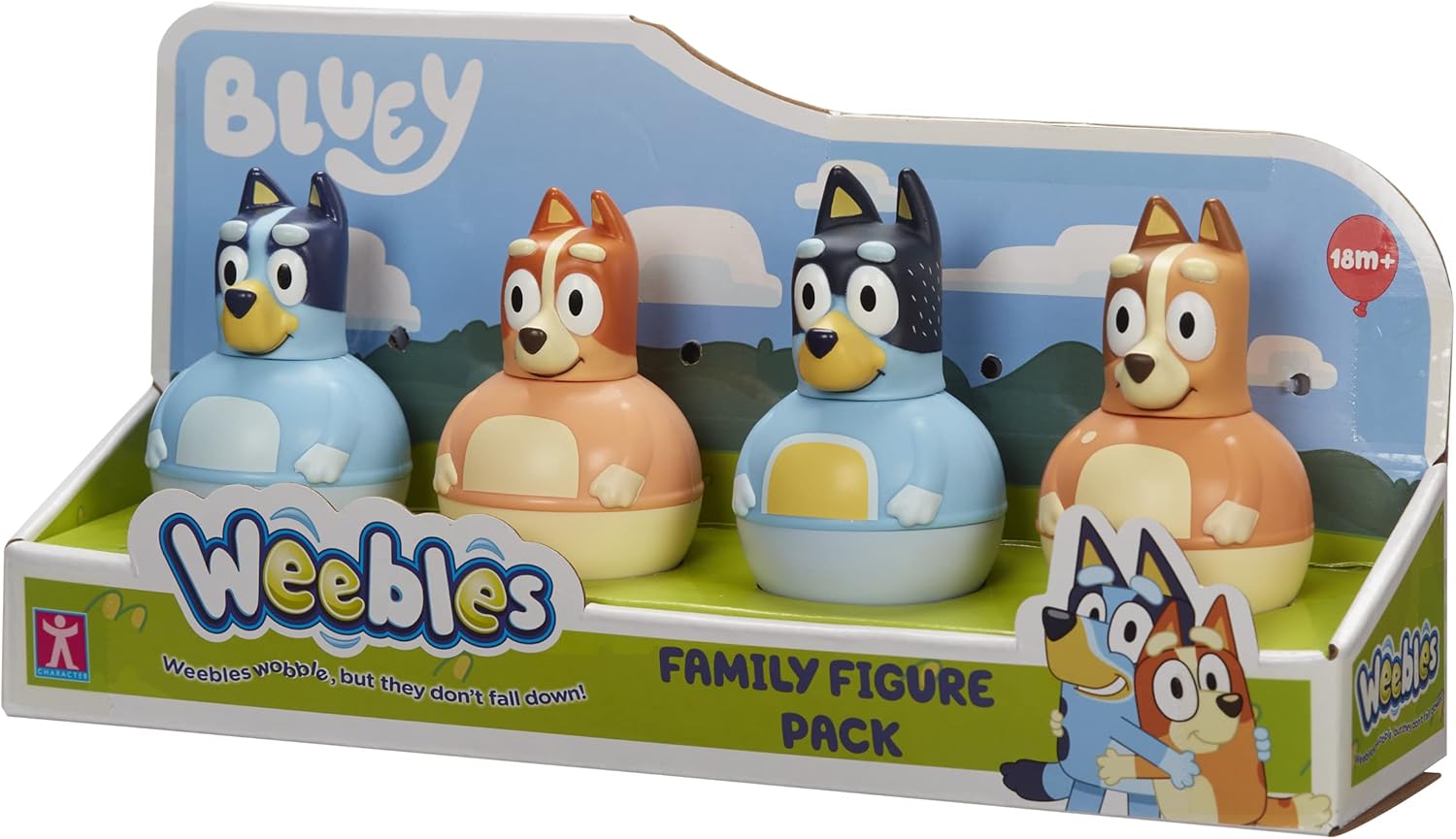 'Weebles Wobble ma non cadono!' Weebles sono personaggi tremolanti super divertenti. Figure modellate spesse per piccole mani La dimensione perfetta per giocare a casa o da portare Include 4 Bluey Weebls; Bluey, Bingo, Cile e Bandit Raccogli tutti!