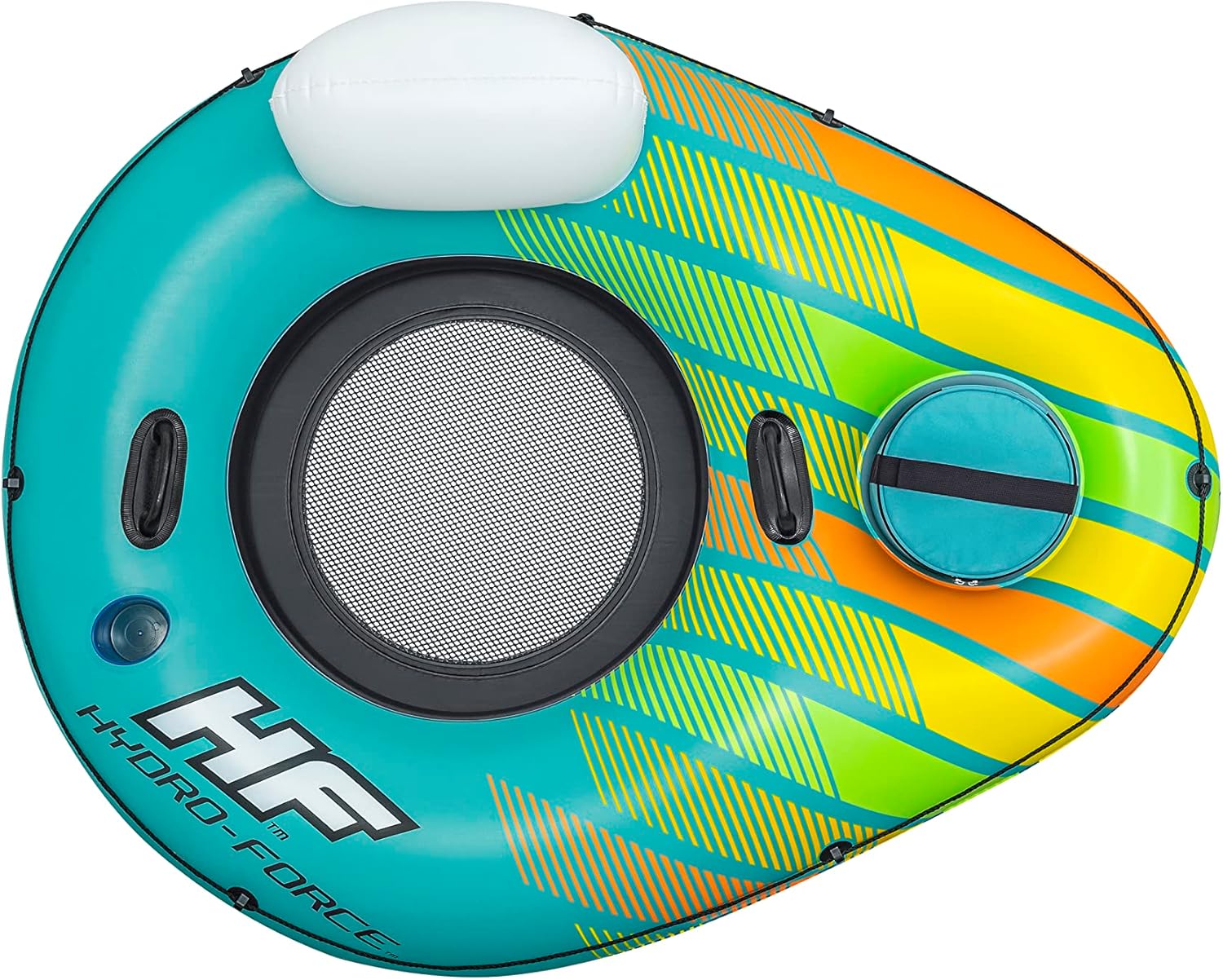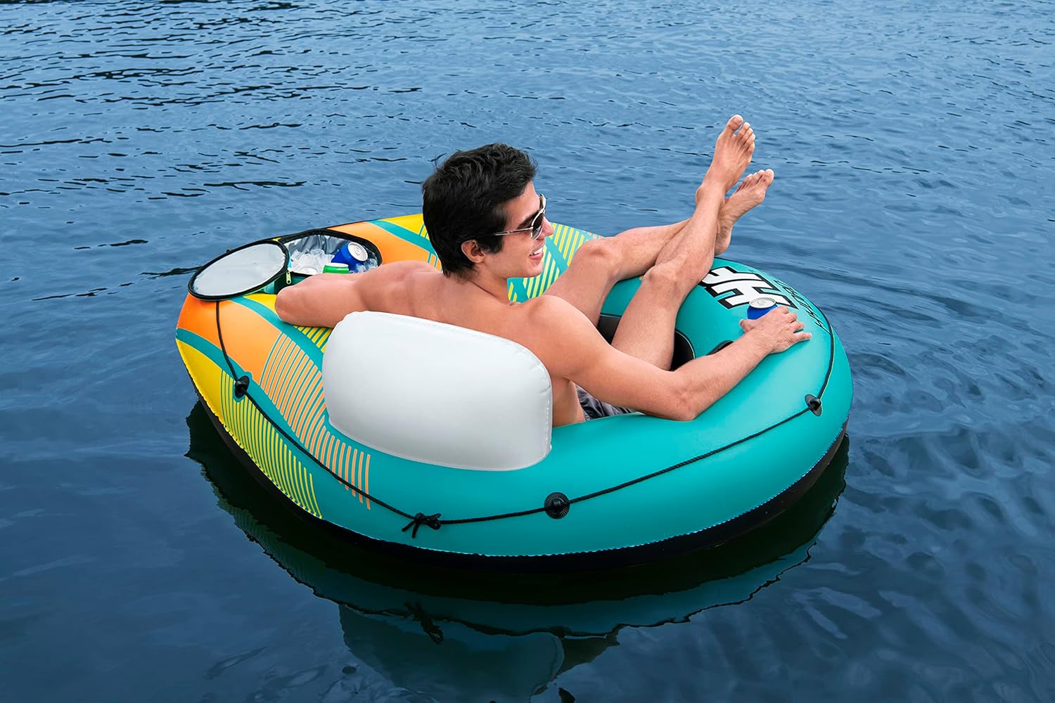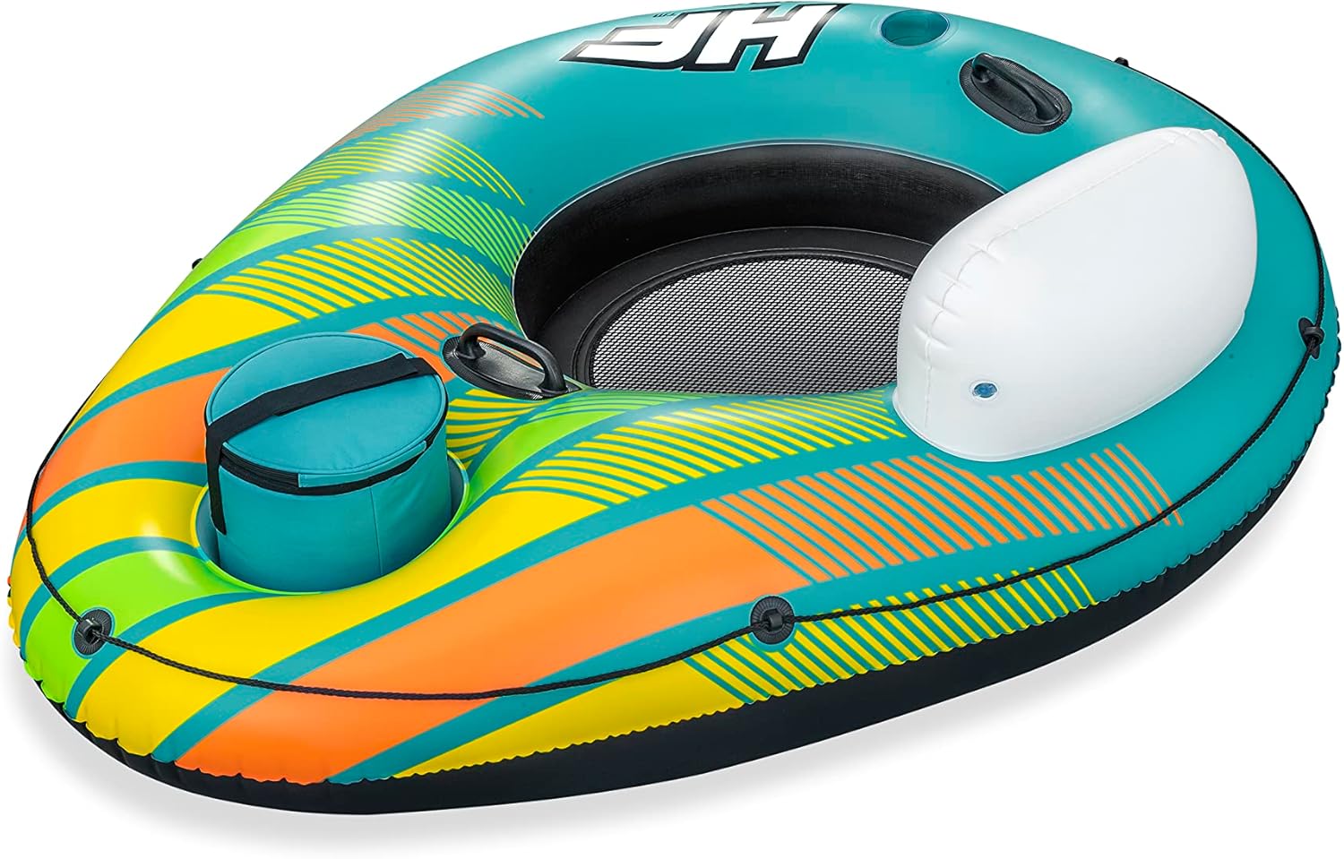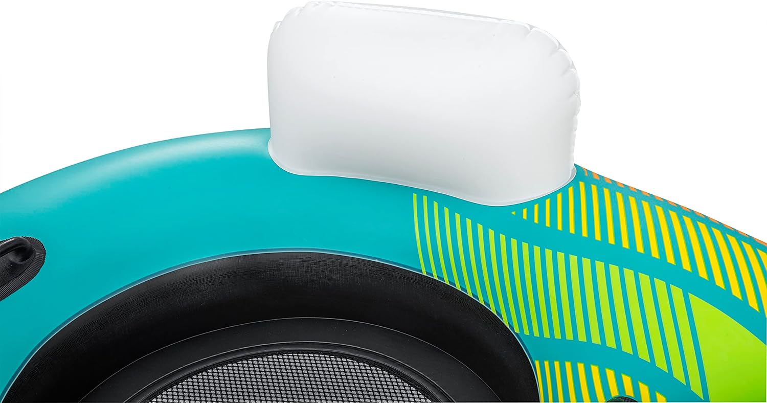 Il materiale Inflata-Shield resiste alle forature, limita l'allungamento e migliora la presa 1 dispositivo di raffreddamento gonfiabile rimovibile e spazio di archiviazione integrato per tenere bevande e snack a portata di mano Fondo in rete per un tempo confortevole e fresco Linea di vita a 360° con occhielli integrati per agganciare la boa o appenderla a quella degli amici Due robuste maniglie per salire semplicemente sulla boa Lo schienale fornisce supporto durante tutto il tempo in acqua