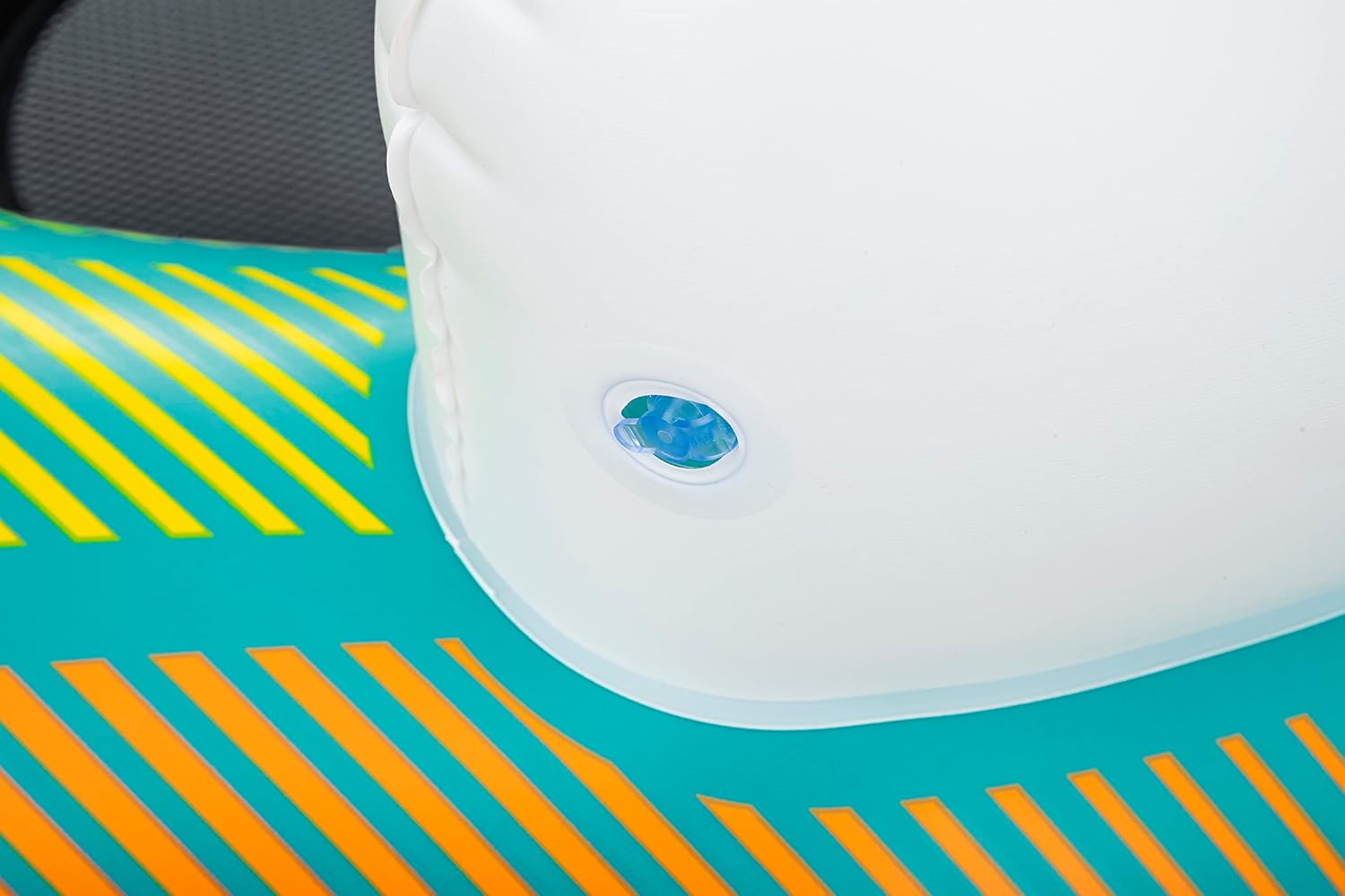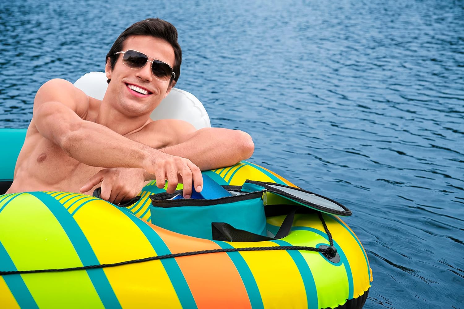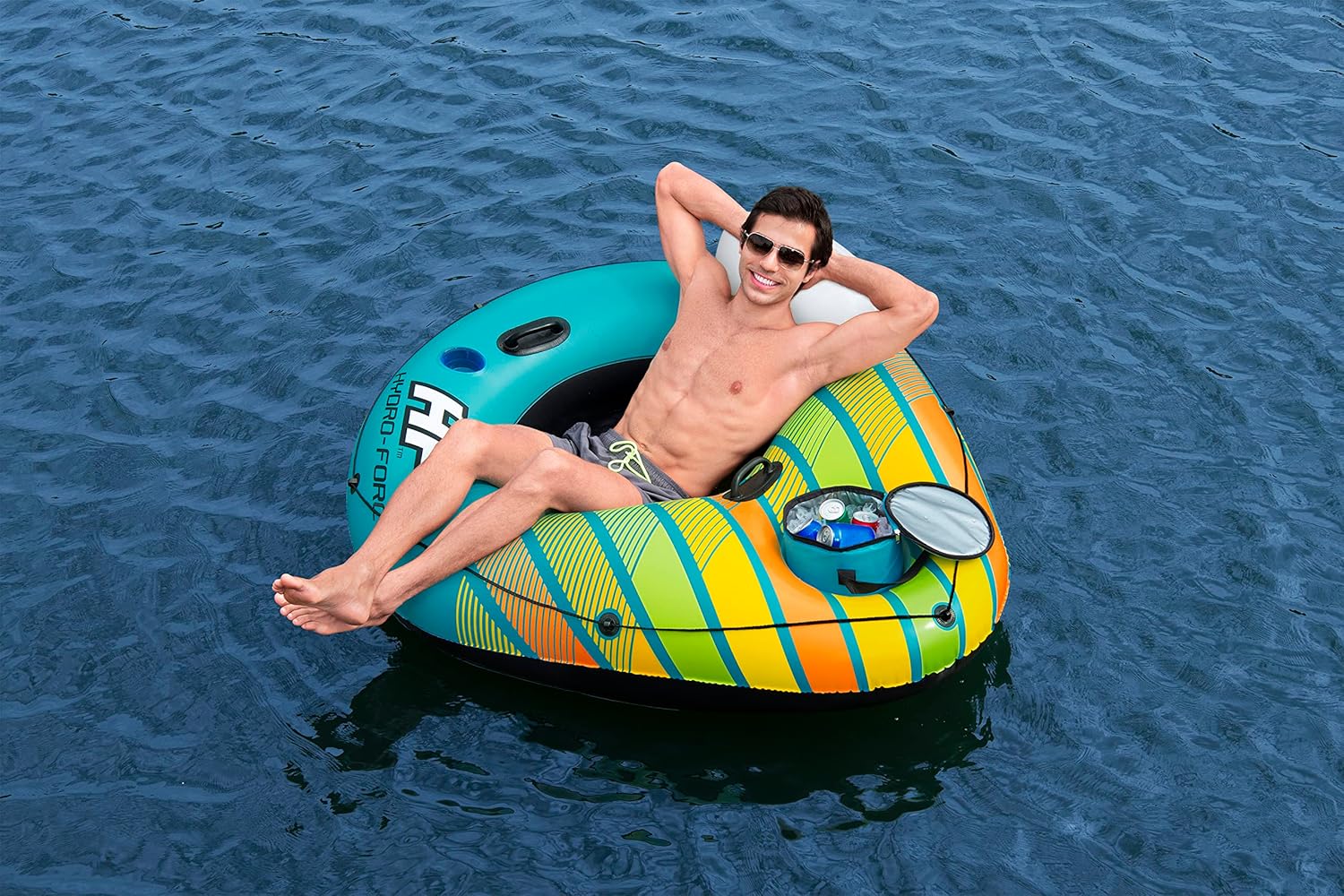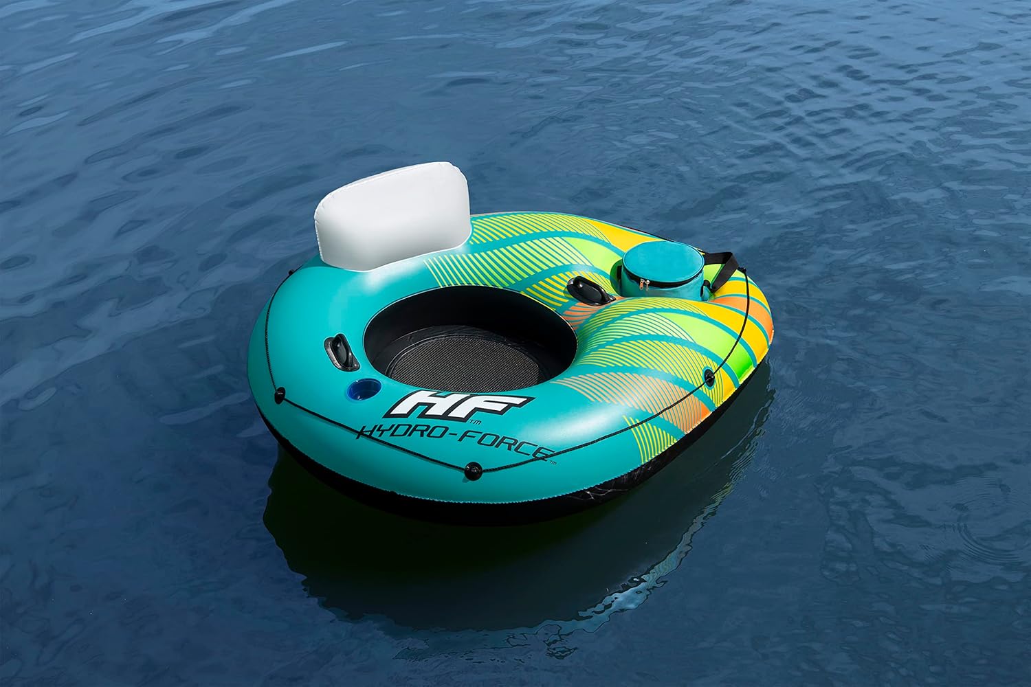 Il materiale Inflata-Shield resiste alle forature, limita l'allungamento e migliora la presa 1 dispositivo di raffreddamento gonfiabile rimovibile e spazio di archiviazione integrato per tenere bevande e snack a portata di mano Fondo in rete per un tempo confortevole e fresco Linea di vita a 360° con occhielli integrati per agganciare la boa o appenderla a quella degli amici Due robuste maniglie per salire semplicemente sulla boa Lo schienale fornisce supporto durante tutto il tempo in acqua
