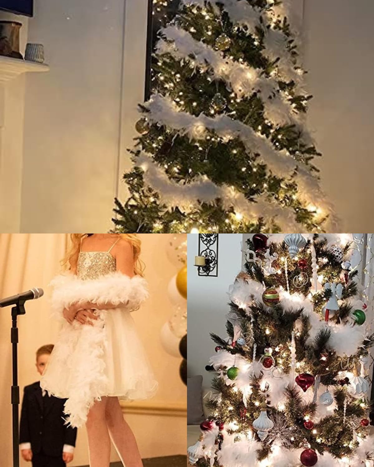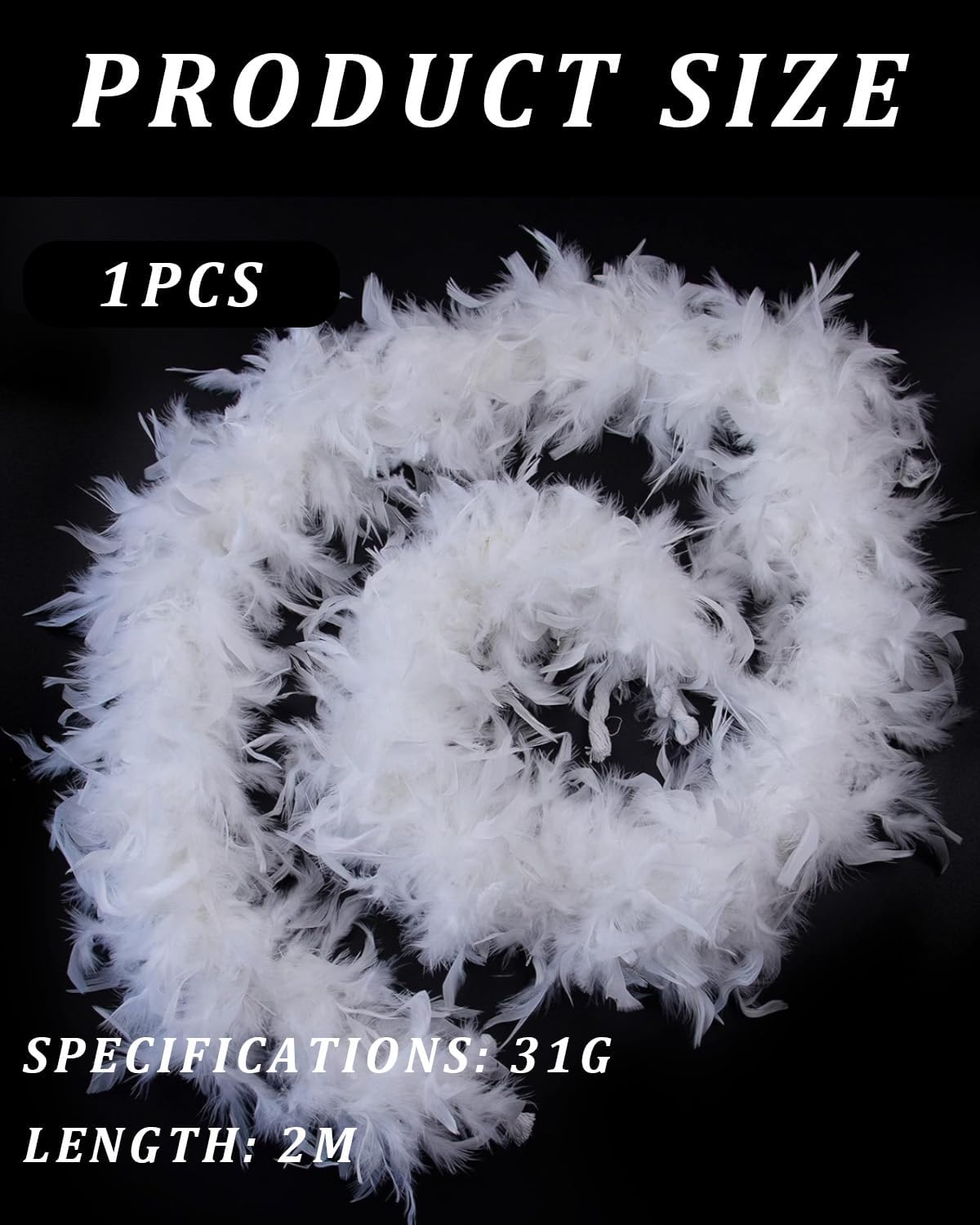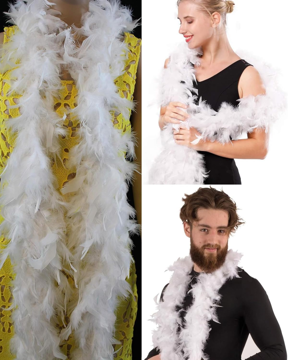 Il boa di piume lungo 120 cm, leggero e confortevole, non ti appesantirà È bianco, decorato con filo metallico argentato, ed è lungo circa 200 cm. Elegante e divertente, questo boa di piume aggiunge un tocco di eleganza e fascino al tuo look generale La sciarpa è versatile e ideale per outfit da showgirl e un bellissimo accessorio per ogni diva Effetto glitter, un piccolo abbellimento in filo metallico bianco può produrre un affascinante effetto glitter e il design bianco-argento ti rende più eccezionale nella festa a tema degli anni '20.