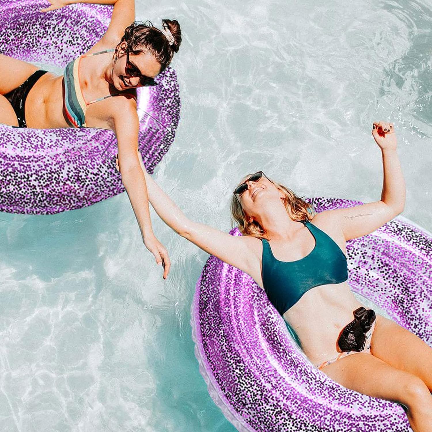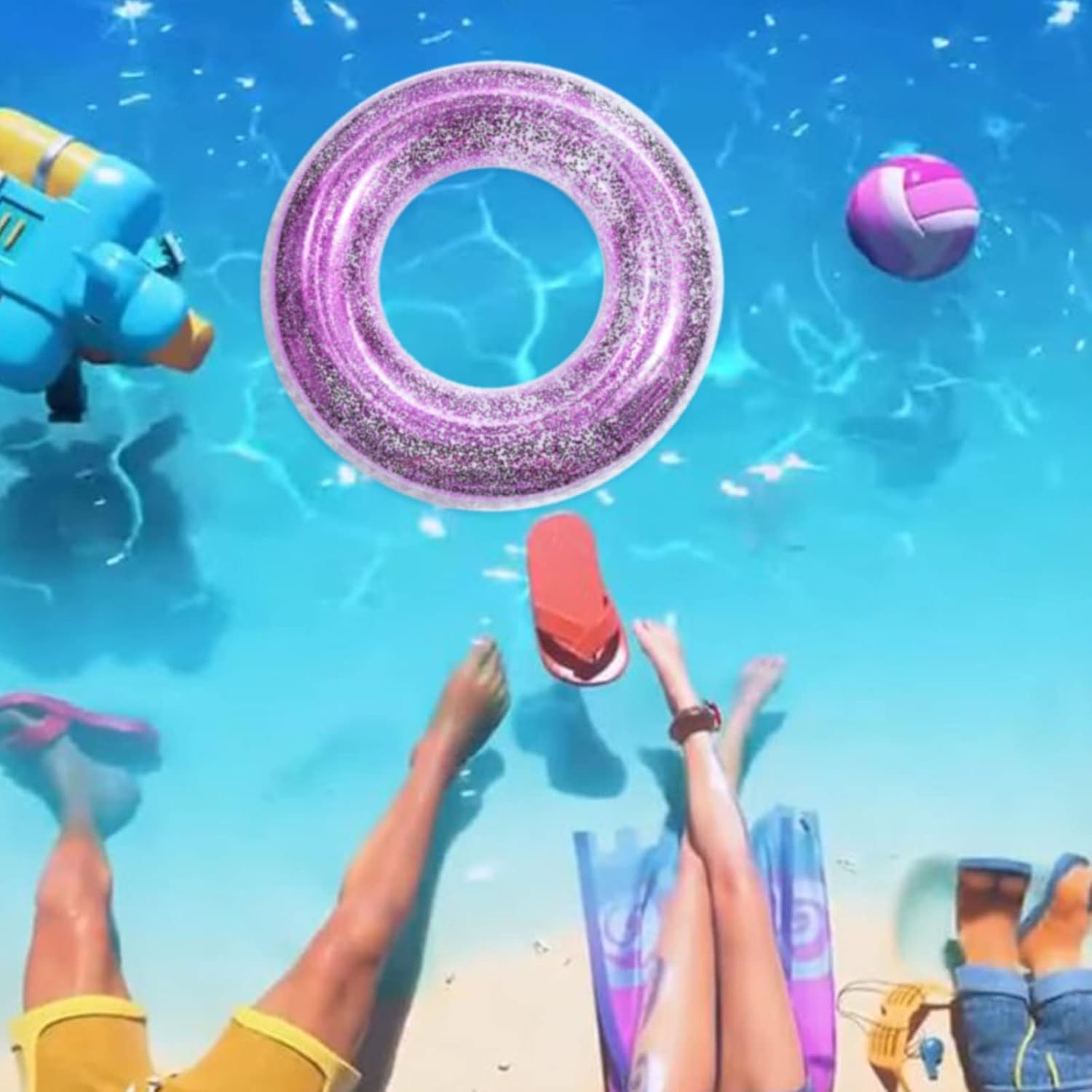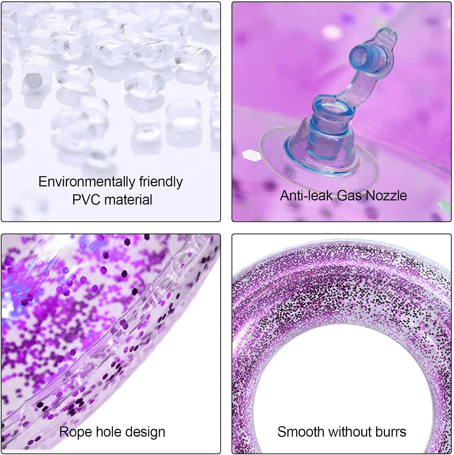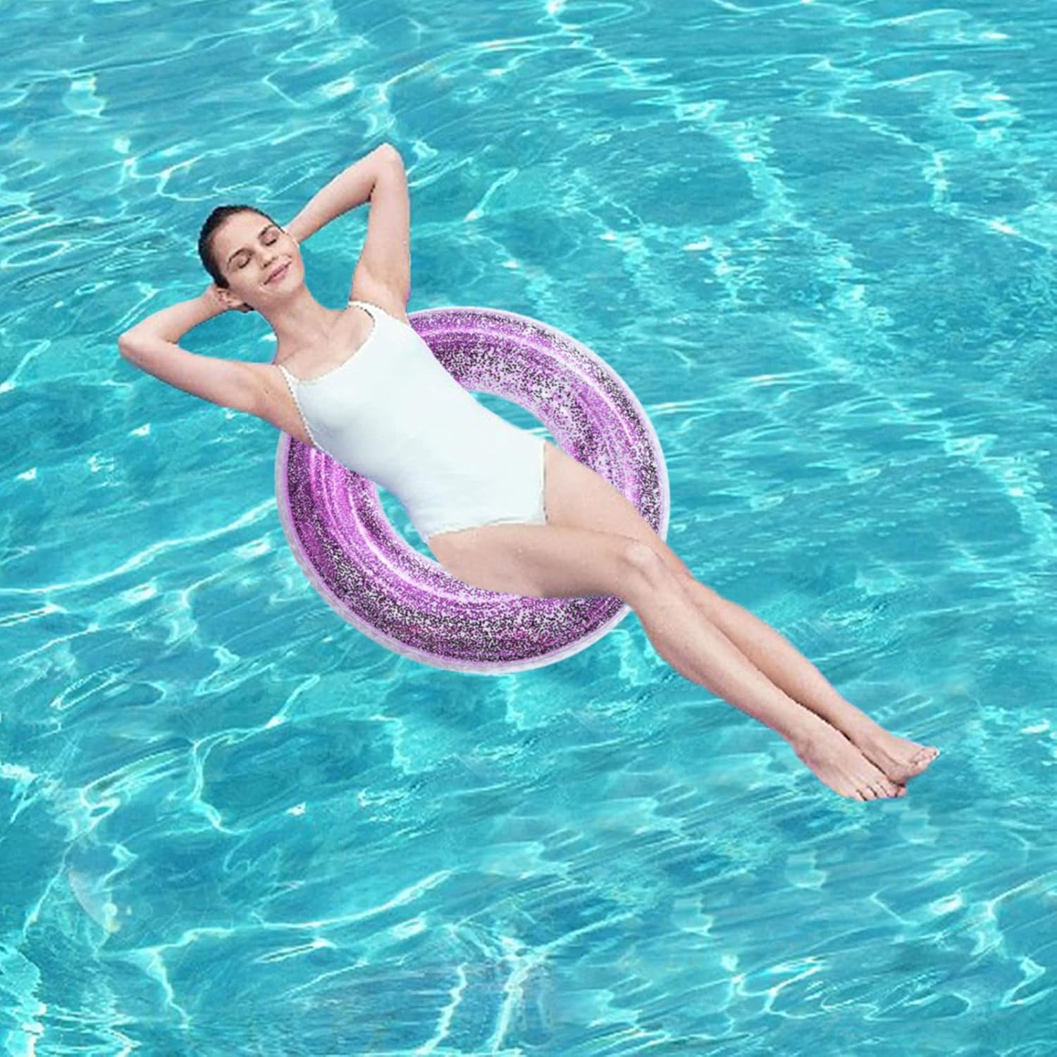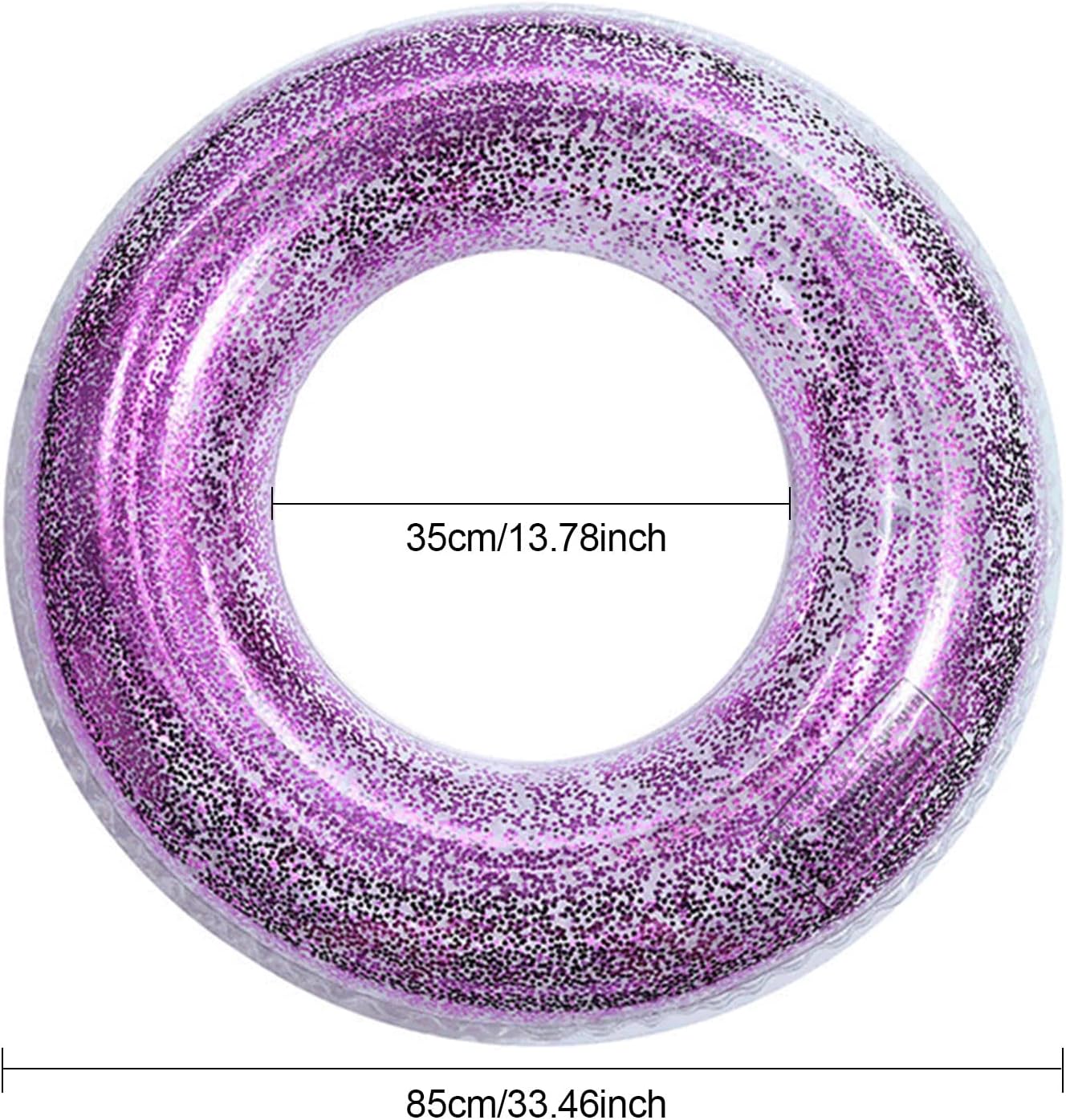 Facile da usare: può essere gonfiato con pompa elettrica/asciugacapelli/pompa a mano, facile da gonfiare e sgonfiare, comodo per i viaggi. Si ripiega quando non viene utilizzato e non occupa spazio. MATERIALI DI QUALITÀ: I galleggianti per piscina sono realizzati in tessuto PVC a doppio strato ad alta densità, molto durevole, resistente ai graffi e alla pressione, pronto per ogni festa estiva in piscina. Applicazione: adatto per oceano, lago, fiume o piscina. Perfetto per rilassarsi, chiacchierare, fare un pisolino o semplicemente galleggiare. Dimensioni: questa piscina gonfiabile è adatta per adulti, con un diametro interno di 35 cm e un diametro esterno di 85 cm (19,6 pollici) quando gonfiata, è la dimensione perfetta per far giocare gli adulti in estate. Giocattolo per anello da nuoto: il galleggiante gonfiabile per piscina con paillettes contiene un sacco di paillettes, scintillanti al sole, ti regaleranno una festa visiva e ti faranno risaltare in piscina.