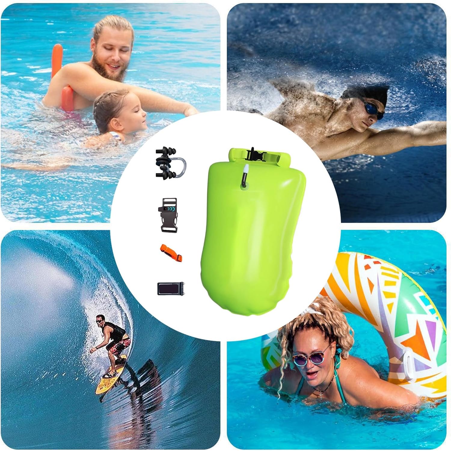 Fibbia rimovibile con una sola mano: progettati per regolazioni rapide, gli spallacci regolabili garantiscono una vestibilità sicura consentendo una facile rimozione, rendendolo ideale per il surf e adattabile a scenari di nuoto flessibili senza interruzioni Design impermeabile: dotato di una cerniera impermeabile IPX 7 e una perfetta tecnologia di tenuta, la boa da nuoto integra una custodia trasparente per consentire l'uso touchscreen senza compromettere la sicurezza in acqua Struttura in materiale robusto: dispone di una struttura rinforzata, che offre un'attrezzatura affidabile per sport acquatici con capacità di galleggiamento resistenti ai danni, garantendo una garanzia di sicurezza funzionale per avventure di nuoto all'aperto Ampia gamma di applicazioni: progettata per nuotatori, surfisti e snorkeler, questa boa offre prestazioni adattabili per molteplici attività acquatiche, combinando funzionalità con portabilità senza sforzo Funzionalità della sacca stagna 2 in 1: combinando una boa da nuoto con una borsa impermeabile, questo prodotto garantisce una portabilità leggera e un'efficienza salvaspazio, ideale per gli appassionati di acqua all'aperto che cercano attrezzi pratici