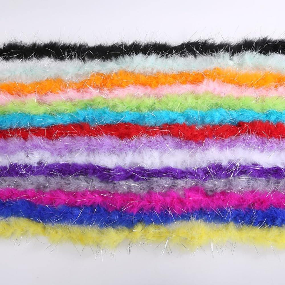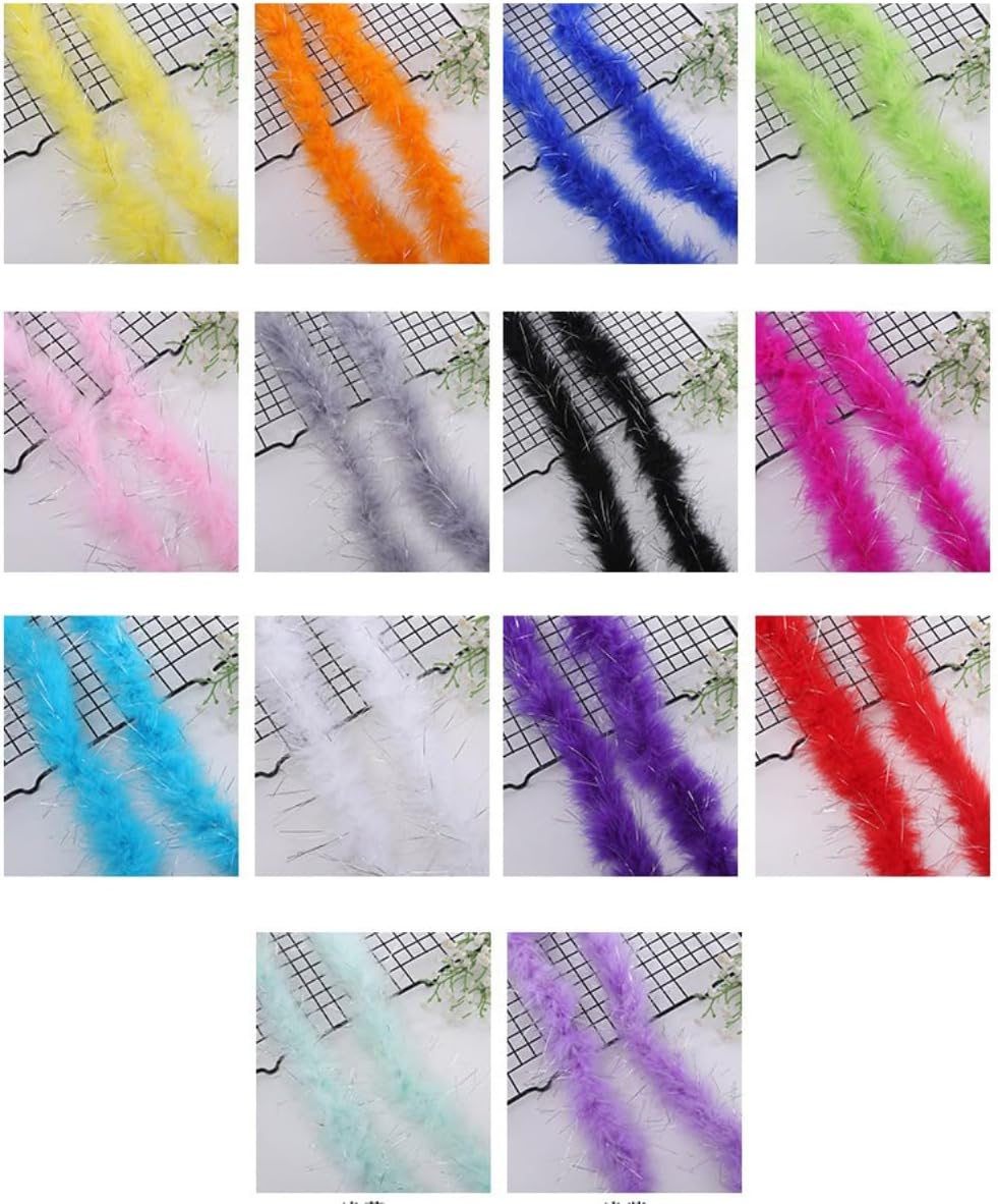 Materiali: i nostri boa di piume sono realizzati con piume di tacchino naturali e filo d'argento, per un bell'aspetto e una lunga durata. Versatilità: questi bellissimi boa di piume sono perfetti per carnevale, feste, Capodanno, feste di Halloween, Natale, eventi di danza e matrimoni. Sono adatti per progetti artigianali e decorazioni festive, nonché come accessorio per spettacoli sul palcoscenico, spettacoli di talenti e fotografia. Note importanti sul guscio di piume: il boa di piume è realizzato con materiali naturali. La lunghezza e la forma delle singole molle non possono essere garantite. È normale che le piume cadano, ma non ne pregiudica l'utilizzo. Quando si apre la confezione, le piume possono cadere. Agitare le piume in eccesso e appendere la sciarpa per alcune ore prima di indossarla. Dimensioni: la sciarpa è lunga circa 200 cm. Contenuto della confezione: 1 sciarpa unisex in piuma di tacchino.