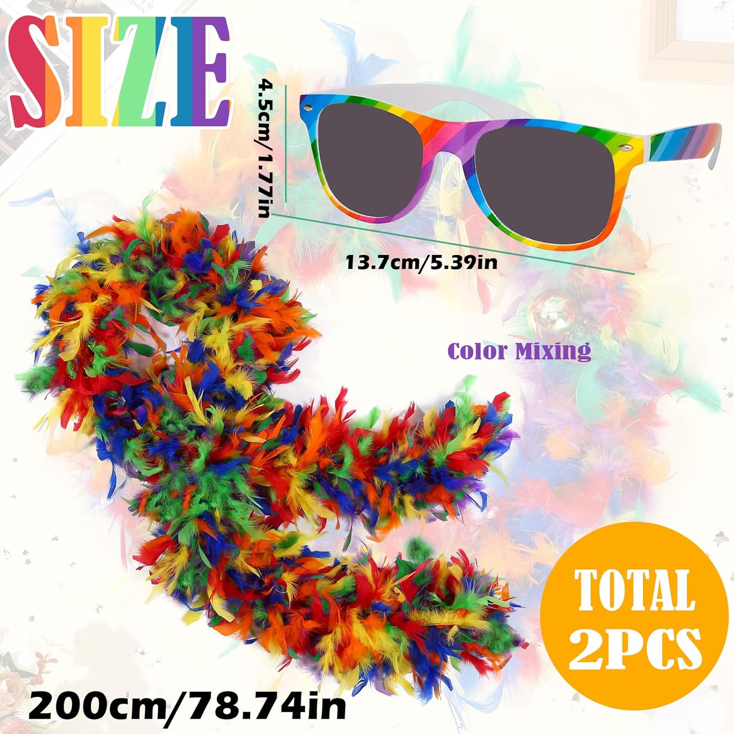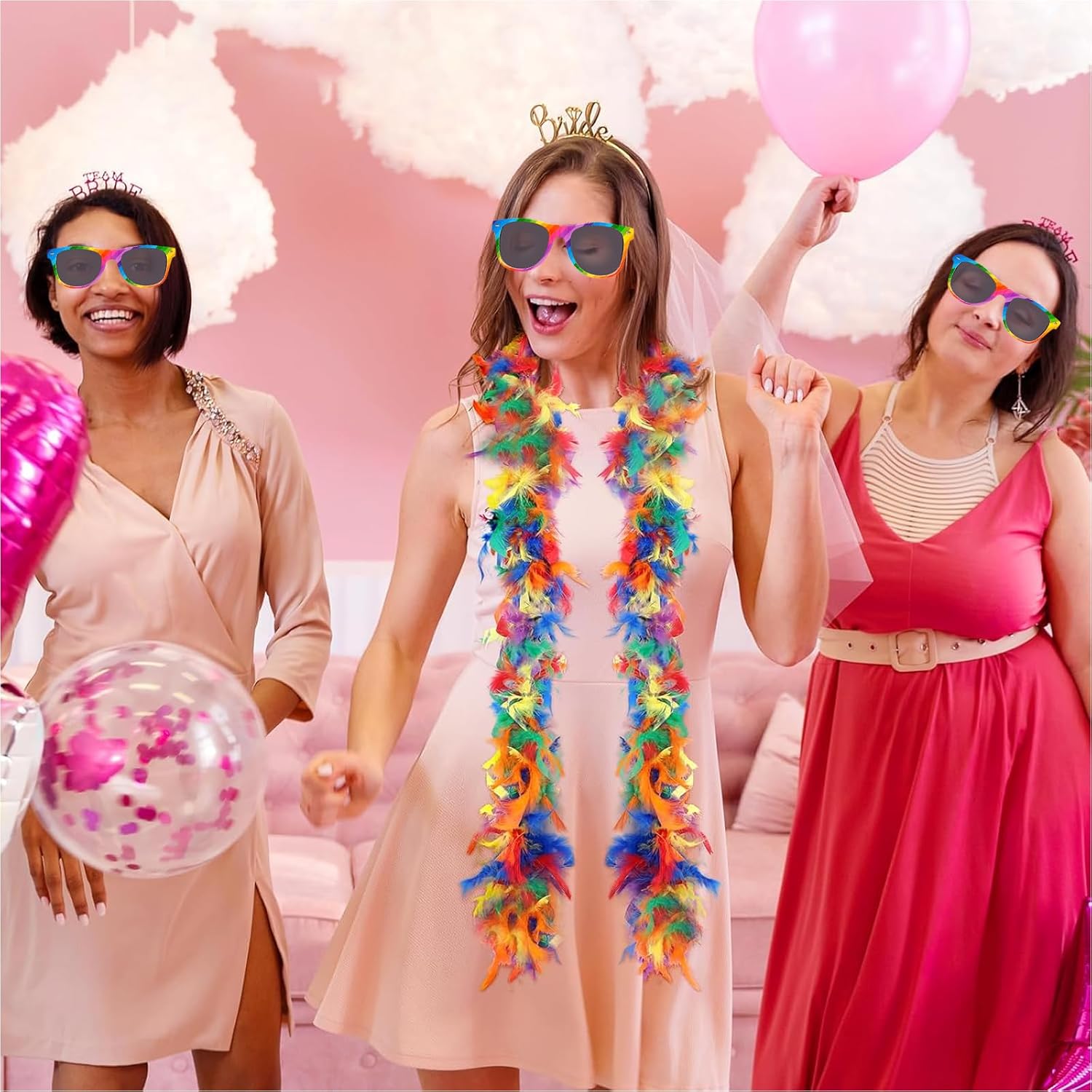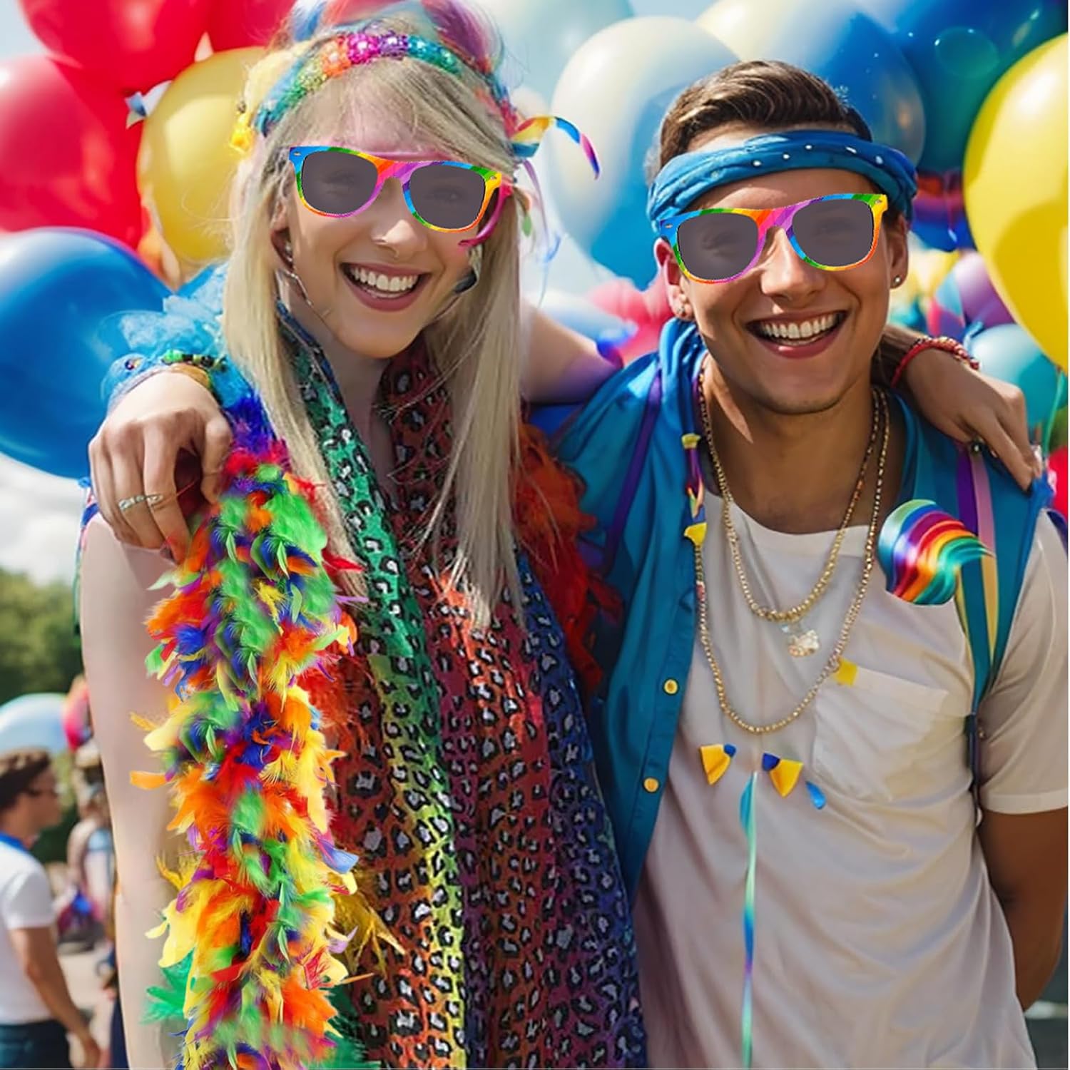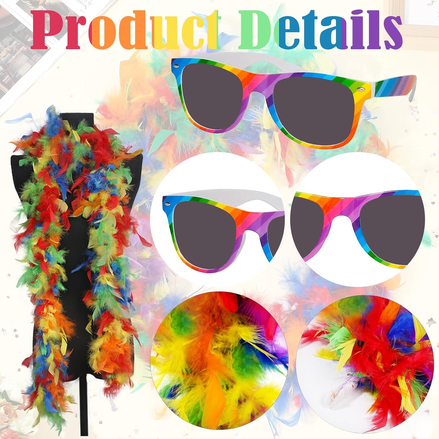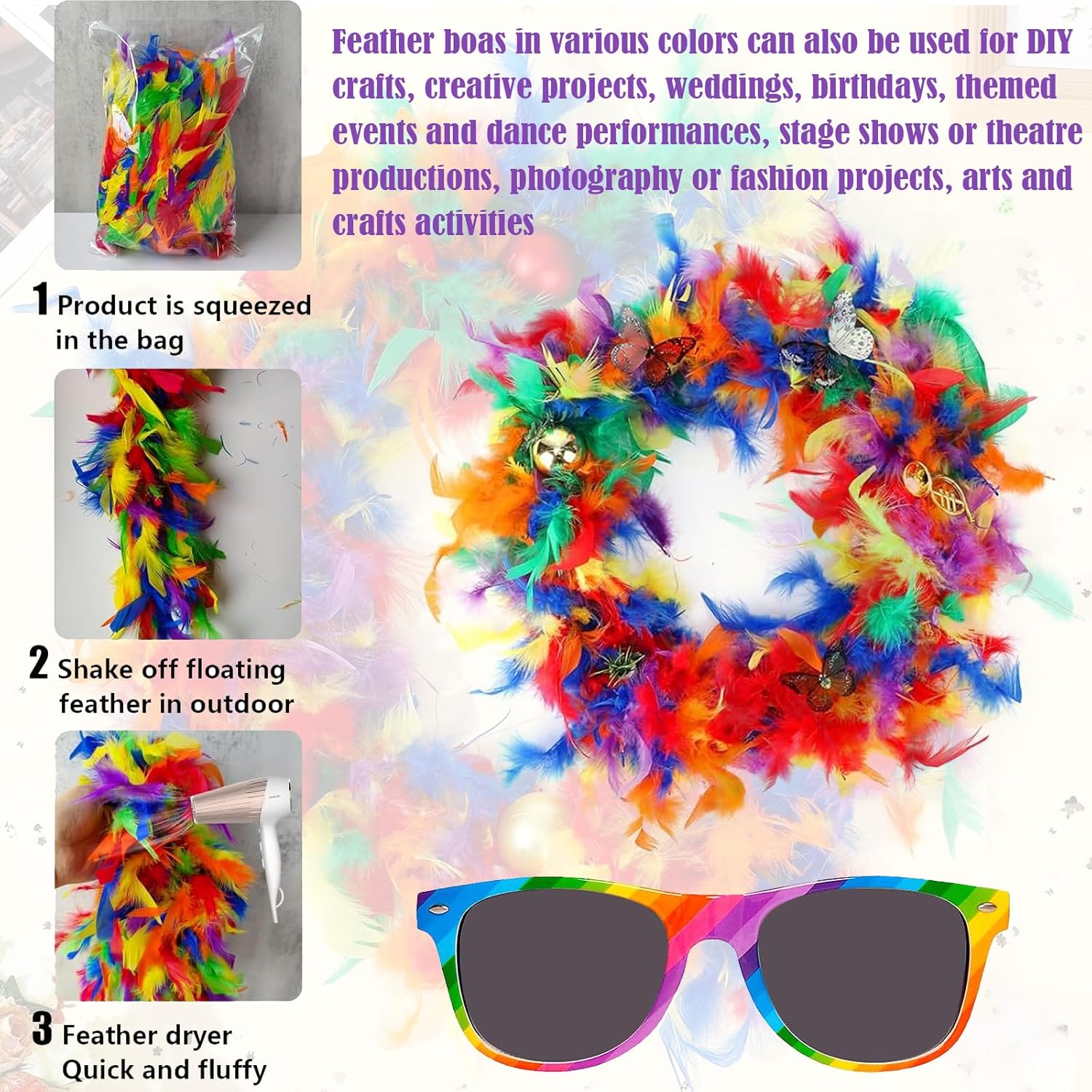 Boa di piume arcobaleno, Occhiali da Sole Arcobaleno, Boa Piume Colore– Piume di Tacchino di Qualità Superiore, Ideali per Decorare la tua Casa e il tuo Abbigliamento