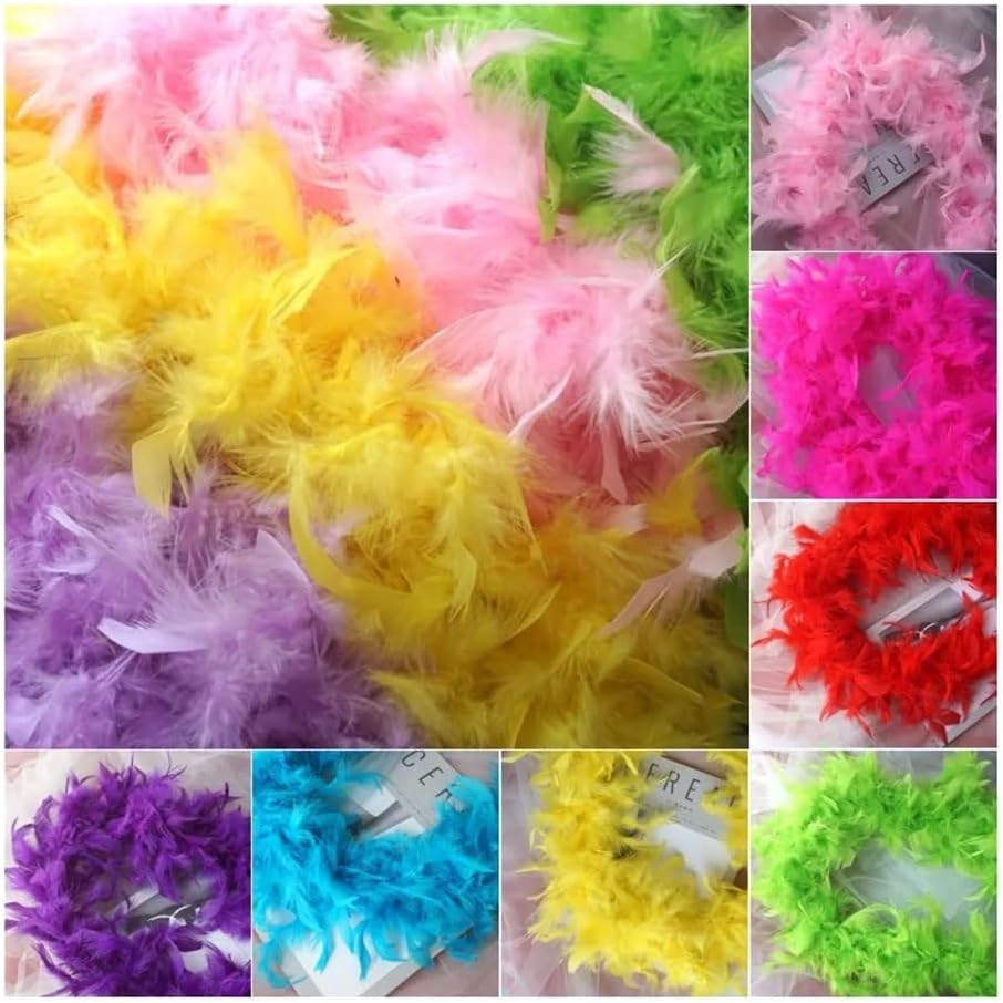 Boa di piume di tacchino, accessori per abbigliamento, multicolore, boa soffice, per feste di compleanno, matrimoni, 2 metri (giallo)