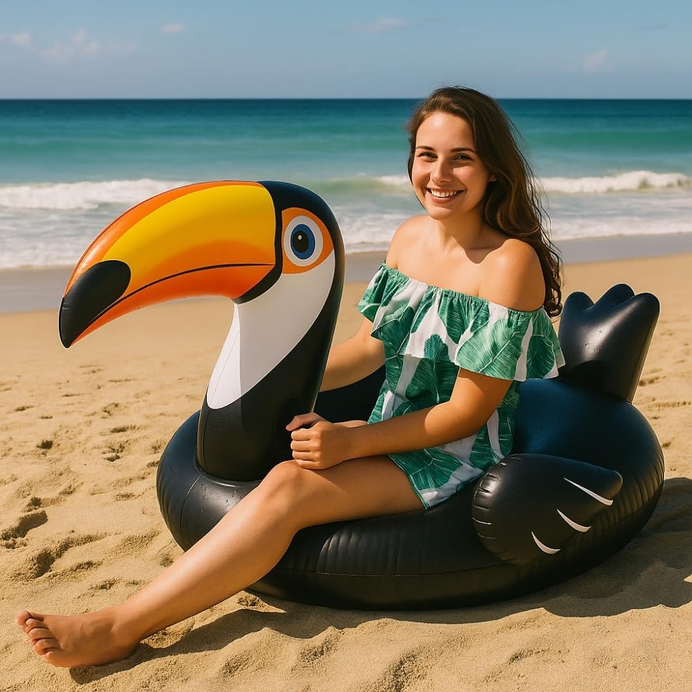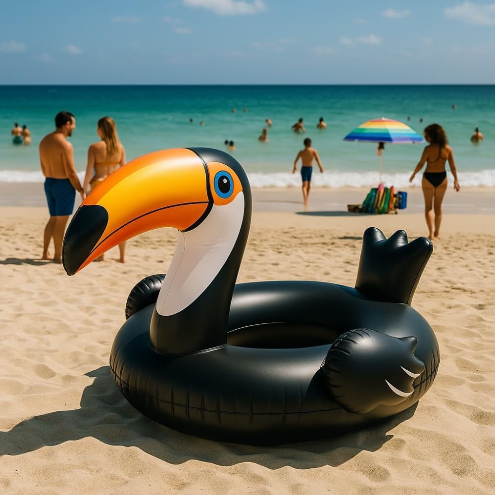 Design unico a forma di tucano tropicale Regalati un accessorio divertente e trendy che si fa notare! Questa boa a forma di tucano cattura subito l'attenzione con i suoi colori vivaci e il becco tropicale. È perfetto per le tue foto estive e aggiunge un tocco di esotismo ad ogni bagno. Oltre al suo stile, la sua forma ergonomica garantisce una posizione comoda per rilassarsi al sole. Sicurezza rinforzata con maniglie integrate La boa è dotata di due solide maniglie, che consentono una presa salda per mantenere l'equilibrio, soprattutto in caso di onde o movimenti improvvisi. Questo elemento è fondamentale per la sicurezza di bambini e adulti, evitando così cadute accidentali. Materiale in PVC di alta qualità Realizzata in robusto PVC, questa boa è progettata per resistere ad un uso intensivo in piscina e in spiaggia. È resistente ai raggi UV, al sale e al cloro, prolungandone notevolmente la durata. Il materiale è anche morbido al tatto, il che migliora il comfort di seduta. Facile da gonfiare, trasportare e riporre Grazie alla punta standard, la boa può essere gonfiata rapidamente con una pompa manuale o elettrica. Una volta sgonfio, si piega facilmente per riporlo in modo compatto. Il suo peso leggero lo rende molto pratico da trasportare in valigia o in borsa da spiaggia. Adatta per adolescenti e adulti fino a 85 kg Pensata per i giovani dai 14 anni in su e per gli adulti, questa boa offre un eccellente galleggiamento per utenti fino a 85 kg. È ideale per momenti di relax in coppia o da soli, nel rispetto delle basilari norme di sicurezza.