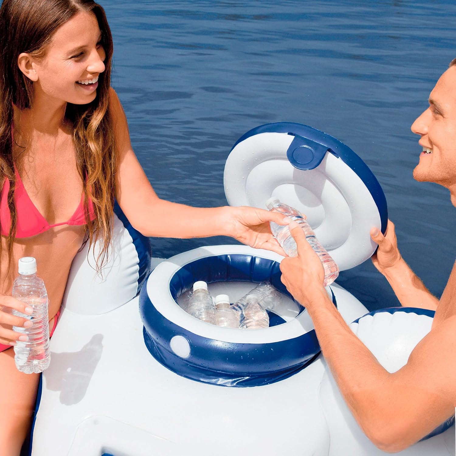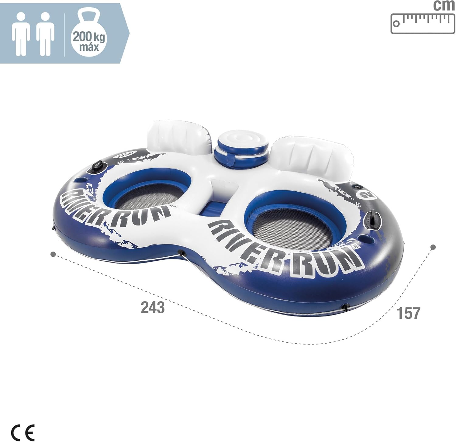 Comodo schienale Fondo in morbida rete Per due persone Descrizione fascia d'età: 14 anni e oltre colore: blu, bianco e nero materiale: vinile lunghezza: 243 cm larghezza: 157 cm