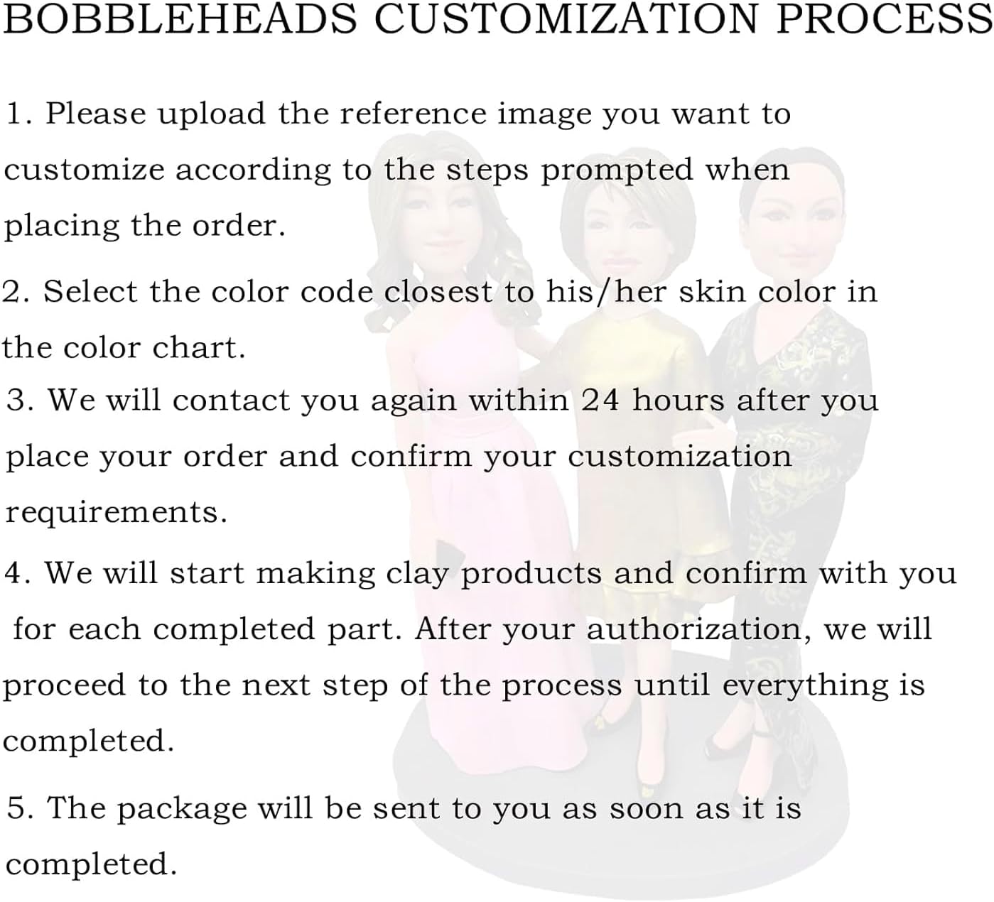 Nota: una volta completato il progetto, ti mostreremo il design e ti chiederemo conferma e feedback. Si prega di notare che una volta che il motivo entra nella fase di cottura, non può essere modificato. Pertanto, esamineremo attentamente il design insieme a te per garantire la tua soddisfazione e effettuare la conferma finale prima della cottura. CARATTERISTICHE UNICHE: Le nostre figurine personalizzate sono la scelta regalo perfetta non solo perché sono carine e divertenti, ma anche perché sono personalizzate appositamente per te. Il nostro team realizzerà con cura ogni bobblehead per garantire che si adatti perfettamente alle tue caratteristiche e alla tua personalità. Tutto quello che devi fare è fornirci le tue foto e i dettagli che desideri personalizzare e noi creeremo uno shaker unico in base alle tue specifiche. 【Materiale】Utilizziamo argilla polimerica che soddisfa i più alti standard del settore, un materiale convertibile multicolore ed ecologico che rende la tua testa tremante molto vivida. Colore: il colore della pelle non può essere uguale al 100% a quello della persona reale perché le caratteristiche dell'argilla polimerica e il colore effettivo dopo la cottura saranno più scuri rispetto all'immagine. Caratteristica: non solo forniamo aspetti personalizzati, ma possiamo anche aggiungere dettagli personalizzati per soddisfare le tue esigenze. Che si tratti della maglia della tua squadra sportiva preferita o di un oggetto di scena del tuo hobby, possiamo ricrearlo sulla Shake Head Ball. Questo regalo unico e personalizzato farà sentire speciali e apprezzati i tuoi cari.