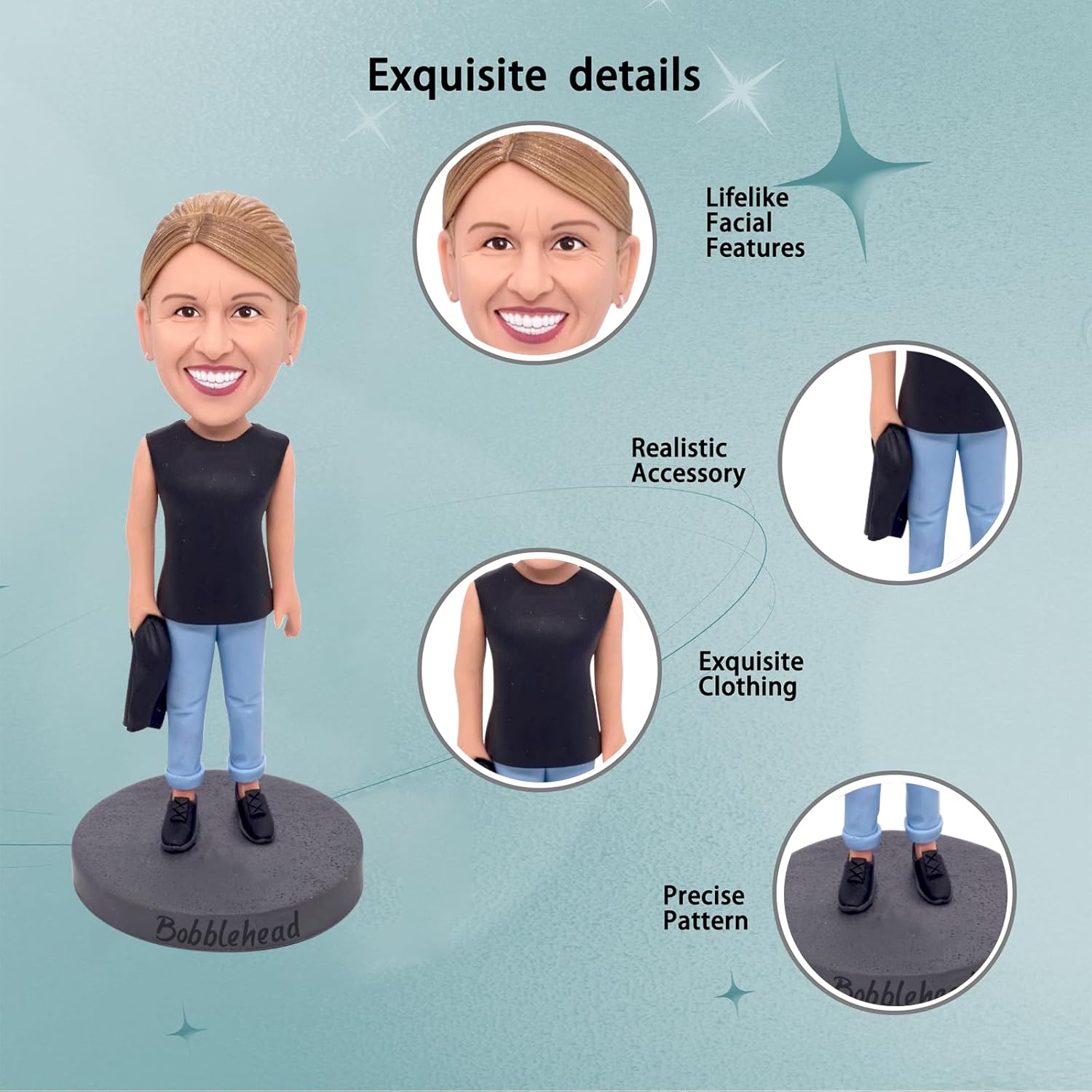 Design affascinante della cameriera: questo bobblehead personalizzato presenta una donna allegra in un classico abito da cameriera che tiene una tazza di birra, catturando perfettamente l'energia e la cordialità della vita da bar. Figura completamente personalizzata - Personalizza ogni dettaglio: acconciatura, caratteristiche del viso, colore uniforme, targhetta con il nome, e persino lo stile della birra, realizzato per assomigliare alla persona scelta. Fatto a mano con cura: ogni statuetta è scolpita da artisti esperti utilizzando materiali polimerici di alta qualità, dandole una consistenza realistica e una finitura professionale. Regalo divertente per ogni occasione: un regalo unico per baristi, personale del ristorante, amanti della birra o chiunque sia orgoglioso del loro spirito di ospitalità - ideale per compleanni, anniversari di lavoro o aperture di bar. Ricordo da collezione: più che una decorazione, questo bobblehead da cameriera personalizzato è un promemoria duraturo del duro lavoro, della gioia e del calore del servizio.