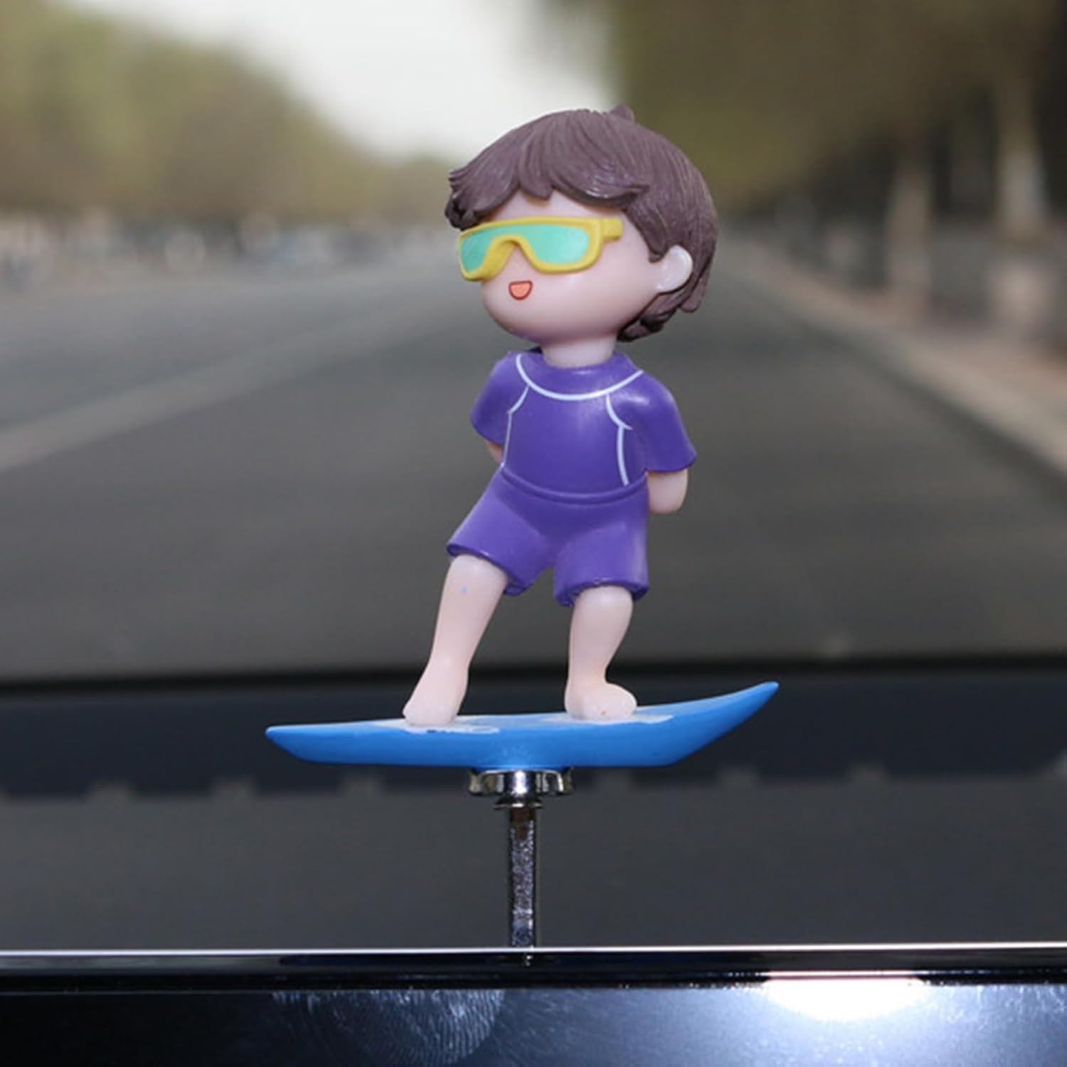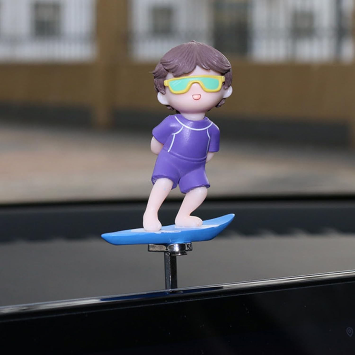 Motivi energetici surf: aggiorna l'atmosfera della tua auto con questa vivace statuetta da surfista, che mostra colori audaci e linee fluide che imitano il movimento della mano. Il personaggio stravagante incarna l'avventura, creando un punto focale istantaneo Movimento dinamico oscillante: sperimenta un accattivante spettacolo di fisica mentre questo accessorio per cruscotto reagisce al movimento della tua auto. L'ornamento mantiene un'oscillazione delicata e continua durante gli azionamenti attraverso l'ingegneria intelligente del contrappeso. Eccellente resistenza all'attrito: le decorazioni del cruscotto realizzate in ABS assorbono gli urti prevenendo le abrasioni. La composizione del materiale ottimizzata resiste agli attriti ripetuti dovuti agli sbalzi di temperatura e al posizionamento dell'articolo. Aderenza senza danni: combina resistenza a prova di punzonatura con una delicata adesione per il posizionamento del cruscotto e della console. Preserva gli interni del veicolo eliminando graffi o modifiche strutturali, offrendo un fissaggio sicuro che resiste alle condizioni di guida quotidiane. Trasforma l'atmosfera della cabina: crea ambienti di cabina invitanti con decorazioni per cruscotto che bilanciano fascino decorativo e miglioramento atmosferico. Questi pezzi migliorano l'estetica degli interni attraverso uno stile coordinato mantenendo la funzionalità senza ostacoli per una guida sicura e piacevole