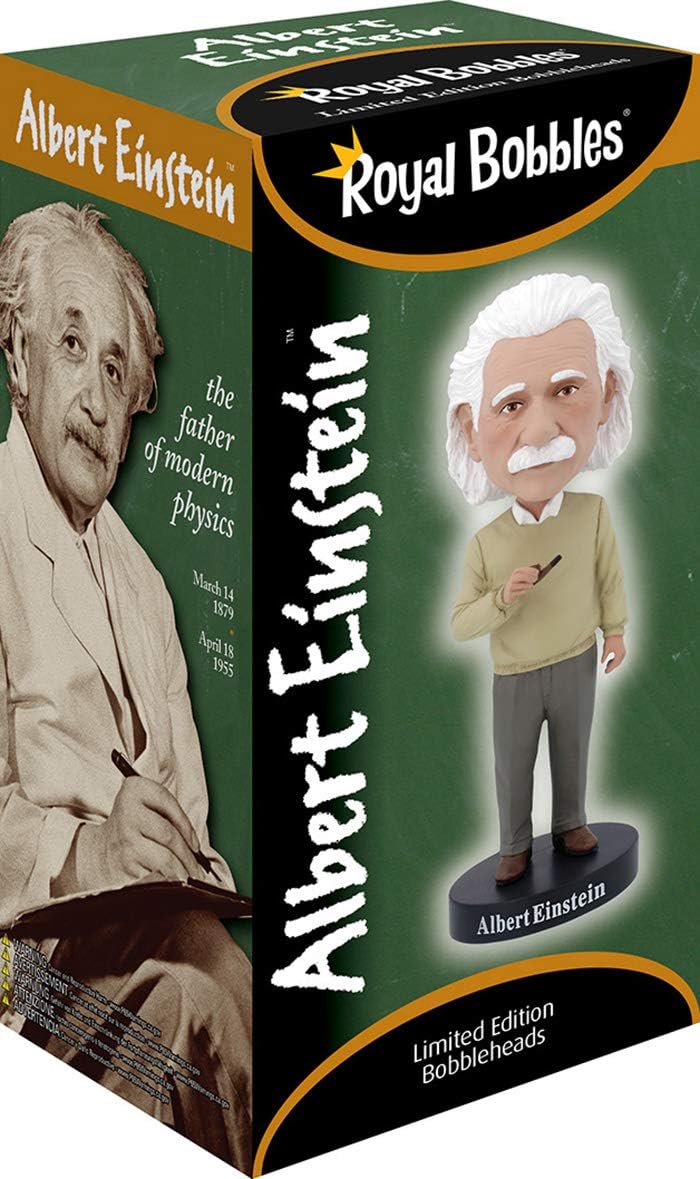 BOBBLEHEAD ALBERT EINSTEIN V2: la nostra intricata bobblehead ritrae un'immagine realistica di Albert Einstein. Albert Einstein è uno degli scienziati più famosi dell'era moderna. Ha modellato la comprensione degli scienziati di tutto il mondo. La sua bobblehead è alta circa 8 pollici e tiene una pipa in mano. Ricorda questo straordinario scienziato in modo divertente. FAMOSI SCIENZIATI DA COLLEZIONE: Royal Bobbles presenta un'intera linea di icone famose, tra cui famosi scienziati, artisti, cantanti, personaggi politici e altre figure storiche! Ideali per i collezionisti di ogni genere, queste bobblehead sono fantastici regali per tutti! BOBBLEHEAD UNICHE E DA COLLEZIONE: ogni bobblehead di qualità premium Royal Bobbles è disponibile in una scatola da collezione colorata e stampata con protezione interna in polistirolo tagliato su misura. Tutte le statuette Royal Bobbles sono realizzate in poliresina pesante di alta qualità, sono alte più di 8 pollici e sono dipinte a mano individualmente. Ogni figura presenta un ologramma con un numero di serie univoco sul fondo della base per indicarne l'autenticità. FIGURINE REALISTICHE - DETTAGLI SQUISITI: poiché ogni statuetta Royal Bobbles è studiata attentamente, dipinta a mano e realizzata con cura, ogni disegno è estremamente dettagliato. Royal Bobbles è leader nel settore con le sue sembianze realistiche e realistiche, rendendoli perfettamente a loro agio in qualsiasi ambiente: che si tratti di una scrivania, di una vetrina o persino di un'aula! STATUETTE BOBBLEHEAD PREMIUM: Fondata nel 2009, Royal Bobbles è un designer e produttore premium specializzato in figurine da collezione squisite e di alta qualità, che consentono un alto livello di dettaglio e durata in ogni prodotto. La qualità e il dettaglio dei prodotti e degli imballaggi Royal Bobbles non hanno eguali nel settore.