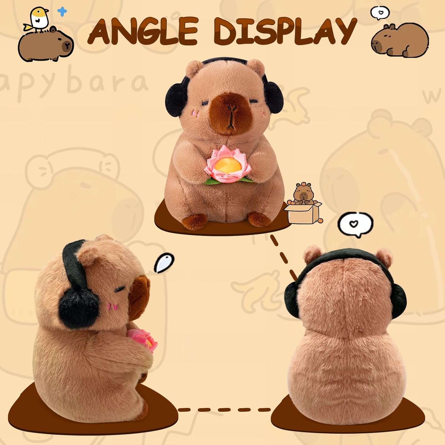 【Materiale di alta qualità】: graziosi peluche Capybara che è realizzato in materiale a corto di cortometraggio di alta qualità che sembra morbido e delicato e si sente delicato e piacevole. Pieno con cotone PP a molla sintetica per una vestibilità molto piacevole. Non importa quanto si preme saldamente o coccoli, questa piccola Capibara mantiene il suo aspetto soffice ed elegante. 【Design creativo】: Gli animali in tessuto Capybara sembrano molto interessanti e hanno un'espressione molto dolce. Questa peluche Capybara ha una forma tridimensionale unica e un'espressione carina che sembra divertente e sorprendente, è un ottimo modo per attirare i bambini. 【Bel compagno per bambini】: questo giocattolo di peluche Capybara di simulazione può anche essere un buon assistente per i bambini. Può essere un compagno rilassante per i bambini che dormono, guardano la TV e giocano a casa. Può anche essere un compagno eccellente per i bambini su cui puoi appoggiarti in macchina. 【Decorazione perfetta】: Posiziona il giocattolo di peluche Capybara sul divano e sul letto, crei un mondo animale perfetto insieme al morbido divano. Questo regalo Capybara è adatto per la camera da letto, il soggiorno, la casa, l'ufficio, il lettino, il divano e qualsiasi altro posto che ti piace. Questo cuscino pieno di bambole Capybara è perfetto per l'abbraccio e anche come cuscino. 【Gift squisito】: un bellissimo giocattolo di peluche Capybara che tutti non possono rifiutare perché è davvero dolce e morbido! Questo dolce giocattolo di peluche Capybara è molto adatto come un piccolo regalo per bambini e adulti, amici per il compleanno, la festa dei bambini, la festa per bambini, il Ringraziamento, il giorno di San Valentino, il Natale e altre occasioni, è un'ottima scelta.