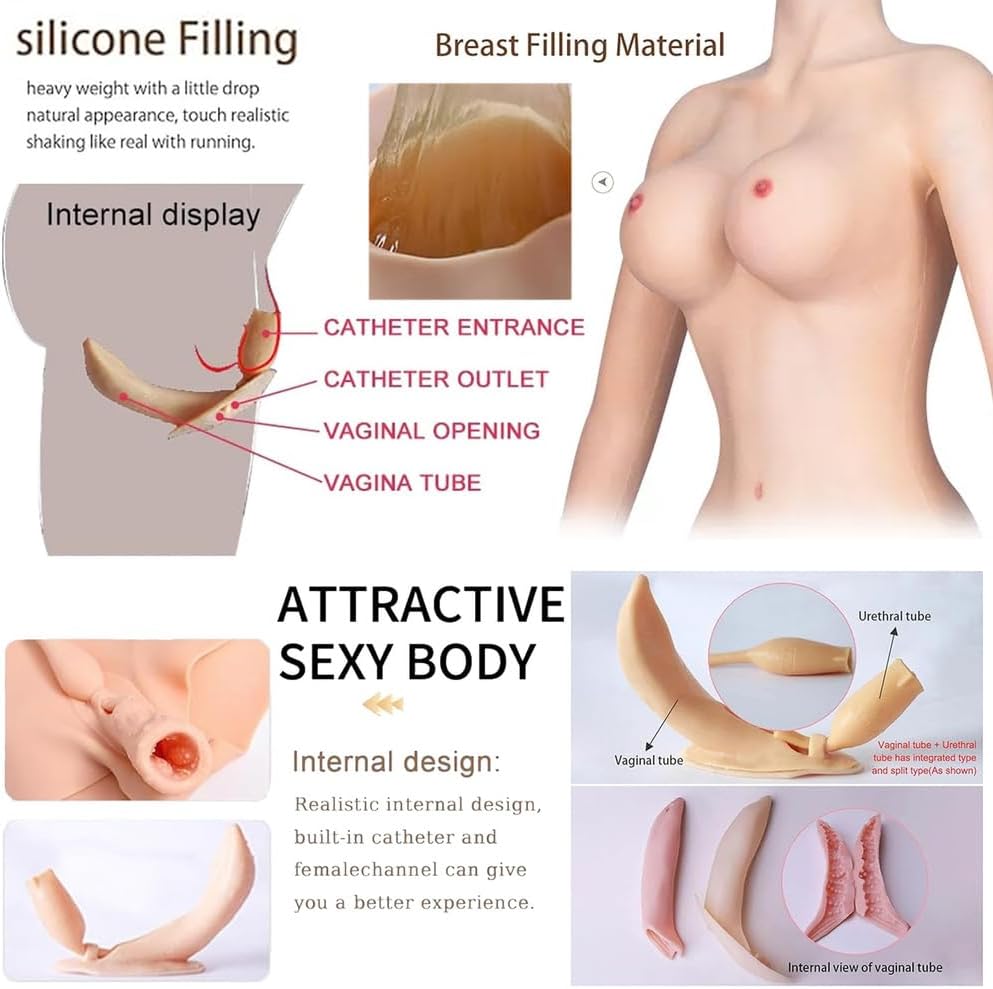 Modellamento del corpo: offre una silhouette più calda e attraente con seni pieni, vita sottile e glutei paffuti, scolpendo una curva a S per mostrare il fascino del tuo corpo. Si allunga fino al 150% per una vestibilità aderente. Sensazione realistica: progettato in una forma a goccia naturalmente cadente per ricreare una scollatura allettante, riempito con morbido silicone liquido, più realistico e pesante del riempitivo di cotone seta, che imita da vicino il seno delle donne vere. Materiale siliconico: realizzato in silicone ad alta elasticità, è morbido, robusto e durevole con una forte resistenza allo strappo, creando un look femminile naturale e perfetto. Ideale come abbigliamento da crossdressing per uso maschile-femmina e come seno finto. Caratteristiche femminili dettagliate: il body in silicone è facile da indossare e togliere. è realisticamente naturale aspetto. ci sono caratteristiche femminili così come un catetere nella parte inferiore del corpo, in modo che i maschi possano avere una pipì come fanno le femmine. Applicazioni versatili: progettato per crossdresser, transgender, amanti del cosplay, drag queen, transessuali e uomini vestiti da donna. Ideale per feste di travestimento, oggetti di scena fotografici e altro ancora.