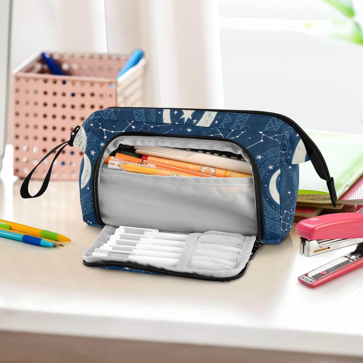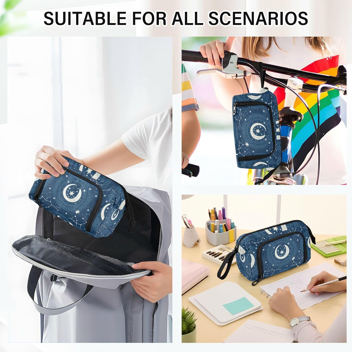 Materiale adeguato: questo robusto astuccio è realizzato in robusto tessuto di nylon, di lunga durata, pratico, resistente all'usura, resistente ai graffi, facile da lavare e pulire. Con cerniera in metallo liscio, può aprirsi e chiudersi facilmente. (Non adatto a bambini di età inferiore ai 3 anni!) Grande capacità: 24 x 9,5 x 15 cm (lunghezza x larghezza x altezza). L'astuccio grande presenta una tasca principale spaziosa di grande capacità, che può contenere 40-60 matite, regole o quaderni. Due tasche interne possono contenere piccoli oggetti scolastici come gomme, nastri, foglietti adesivi e altre necessità. La tasca laterale esterna è dritta alla tasca principale e si attacca a 5 scomparti per matite, fissando le penne usate di frequente e organizzando ordinatamente le matite. Design portatile e conveniente: con peso leggero, corpo piccolo e piegatura manuale, il nostro astuccio è facile da trasportare in borsa o tenere a portata di mano. L'apertura superiore e l'apertura laterale offrono scelte per voi per prendere o mettere le vostre necessità in esso. Puoi vedere chiaramente il tuo articolo dall'alto e trovare le tue penne, matite, pennarelli e pennelli usati di frequente dal lato. Multi funzioni: con una tasca frontale aggiuntiva e uno scomparto principale di grande capacità, il nostro prodotto non è solo un astuccio, ma una borsa, una borsa da viaggio, una borsa da trekking, una borsa per attrezzi, una borsa per cellulare, trucco, pittura, trucco, medicine, 3C, ecc. Istruzioni di lavaggio: lavare a mano, non lavare in lavatrice. Si prega di non aggiungere candeggina per il lavaggio.