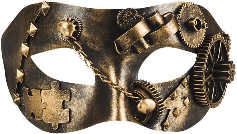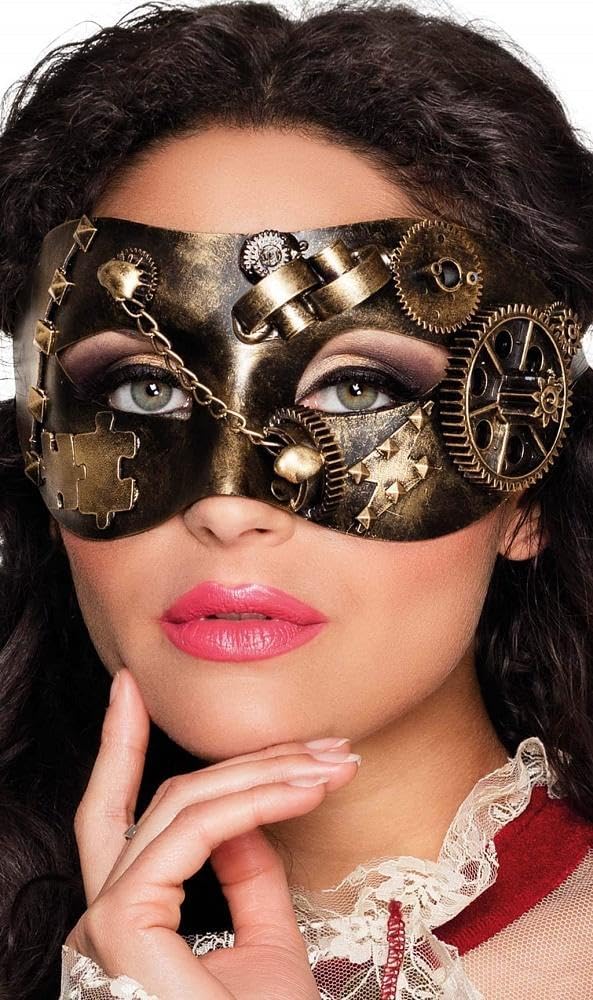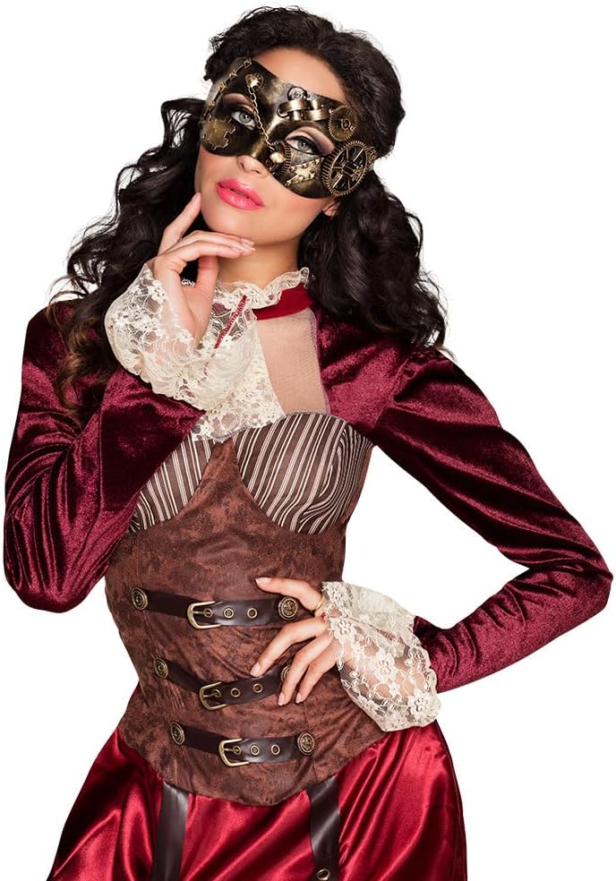 Riceverete una stravagante maschera steampunk del marchio Boland La maschera sembra essere realizzata in bronzo Sono lussuosamente decorate con dettagli steampunk La maschera facciale può essere facilmente attaccata alla testa Abbinate la maschera facciale con un costume coordinato di Boland (non incluso) per rendere completo il vostro outfit da festa