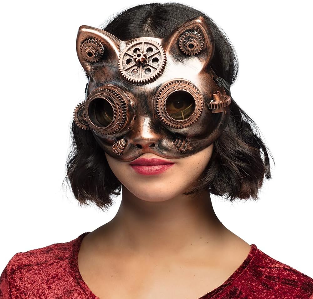 Descrizione Questa insolita mezza maschera del marchio Boland combina dettagli moderni con un giocoso look da gatto e aggiunge un tocco distintivo al vostro abbigliamento. Con il suo design unico e il suo stile robusto di ispirazione vintage, è l'accessorio ideale per feste a tema, cosplay, festival o carnevale. La maschera si adatta perfettamente a qualsiasi costume steampunk e porta il vostro look a un livello superiore. Il suo stile accattivante vi permetterà di essere sotto i riflettori e di attirare l'attenzione. Sia che vogliate rappresentare un "gatto a vapore" o una figura misteriosa, questa maschera è un vero e proprio eye-catcher. Contenuto della confezione Demi-masque de Steamcat