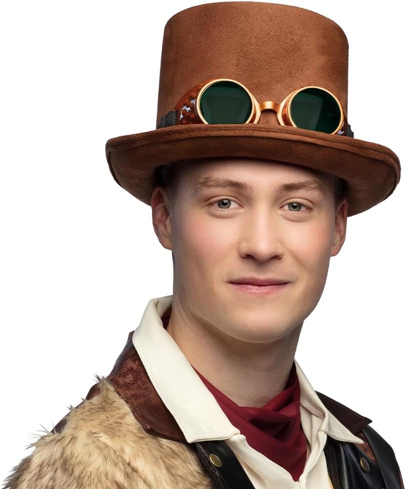 Descrizione Trasformatevi nella star di ogni festa con questo cappello steampunk di Boland! Questo cappello a cilindro marrone con occhiali annessi conferisce al vostro abbigliamento un look retrò di ultima generazione. Ideale per festival, carnevali o feste a tema steampunk, è un vero e proprio pezzo forte per chi vuole distinguersi. Abbinate il copricapo a un costume stravagante di Boland e creerete un look indimenticabile! Contenuto della confezione Chapeau streetpunk avec lunettes de fête