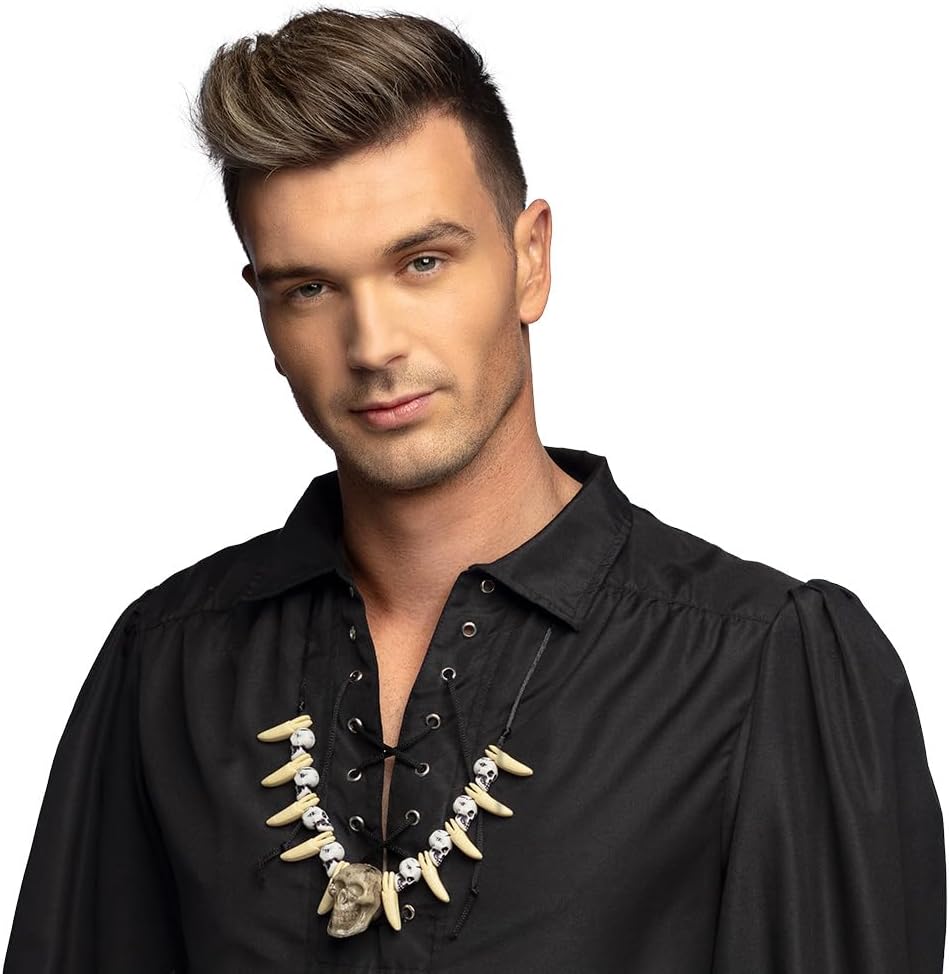 Descrizione del prodotto Immergetevi nel cupo mondo del carnevale con questa collana con denti di teschio della Boland. La bigiotteria ha un design spettrale ed è decorata con zanne sorprendenti e piccoli teschi che ti daranno un aspetto terrificante. Che tu voglia giocare nei panni di un pirata oscuro, di un inquietante mago voodoo o di un fantasma non morto, questa collana è l'ideale per questo. Diventa creativo e combina la collana con un costume coordinato (non incluso) di Boland per creare un terrificante costume di Halloween. Acquista subito questo gioiello e vivi momenti indimenticabili alla tua prossima festa di Halloween o a tema. Contenuto della scatola Collana con denti di teschio
