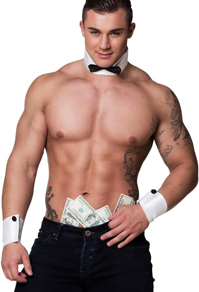Stripper Set Contenuto: colletto con papillon e 2 polsini Colore: Bianco Per uomini Accessorio ideale per addio al celibato/nubilato