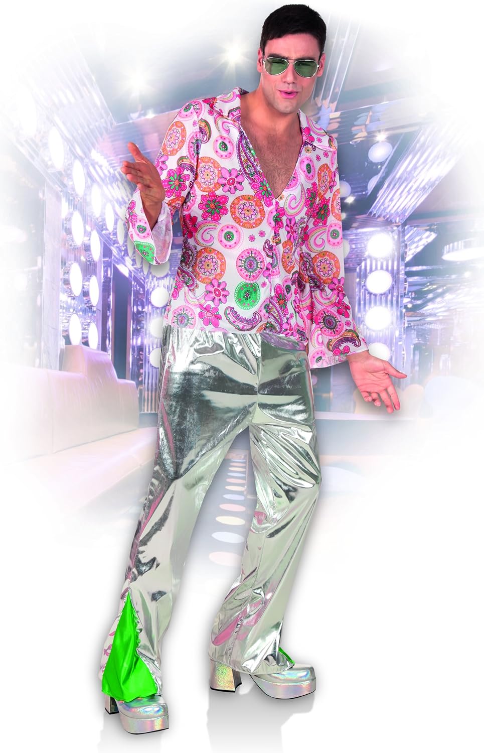 Motivo costume per adulti: hippie, contenuto: top e pantaloni, taglia: M/L per feste a tema