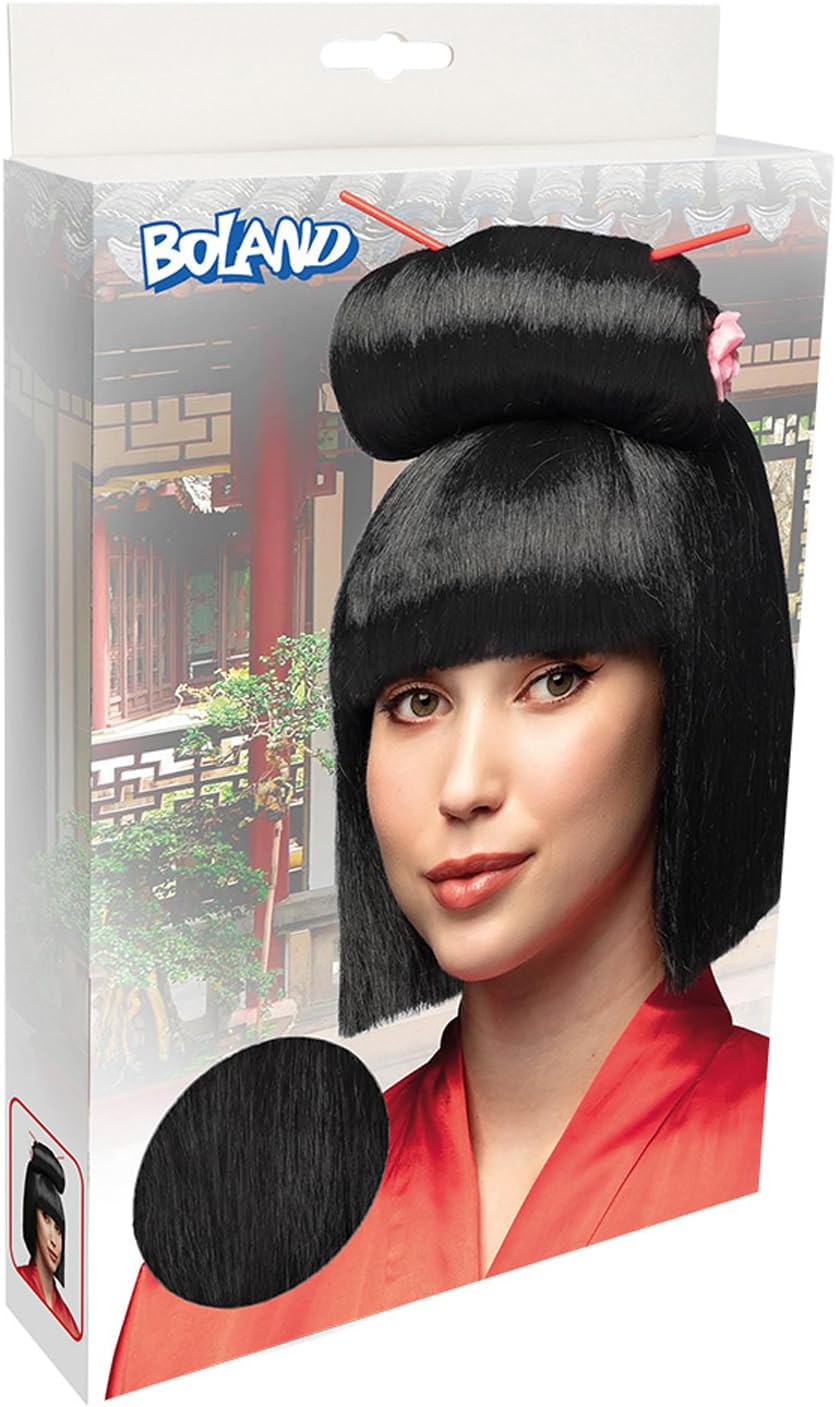 Descrizione Scoprite la trasformazione definitiva con questa stravagante parrucca "Maiko" del marchio Boland. L'acconciatura unica in capelli sintetici neri è disponibile in taglia unica per adulti e permette di creare un nuovo look in pochissimo tempo. Con il suo fascino asiatico e le affascinanti decorazioni come bacchette e fiori rosa, questa parrucca è perfetta per carnevale, Halloween o feste a tema. Portate il vostro travestimento al livello successivo con questa squisita parrucca di capelli sintetici e attirate l'attenzione di tutti! Indicazioni Preparazione della parrucca e dei capelli naturali: spazzolarla in una coda di cavallo o acconciatura simile per una maggiore aderenza. Posiziona sulla testa allineando le ciocche con la parte anteriore regolala il massimo comfort. Tecnica posa per fissare perni ganci. Stile è già pre-elegante look asiatico. Cura utilizzare prodotti styling leggeri mantenere forma lucentezza sintetici. Evitare l'esposizione di calore eccessivo alle sostanze chimiche. Durata cura adeguata, questo può durare diversi mesi. Contenuto della confezione Parrucca Visualizza di più