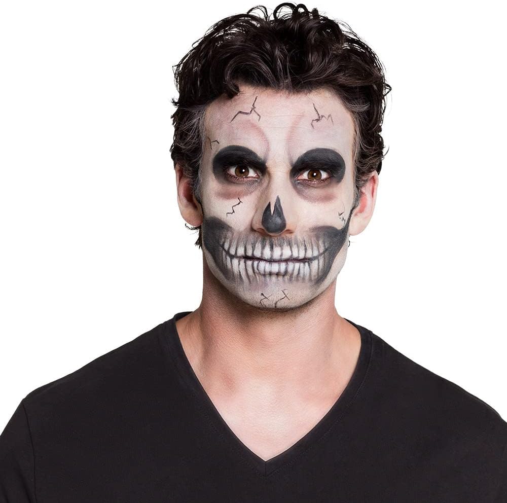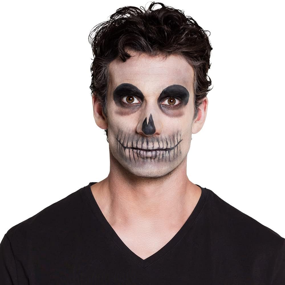 schmink Set Motivo: scheletro Contenuto: 4 colori, nera – Matite cosmetiche a, spugna e applicatore Colori: 2 X bianco, nero e grigio Semplicemente con acqua e sapone nuovamente Lavabile