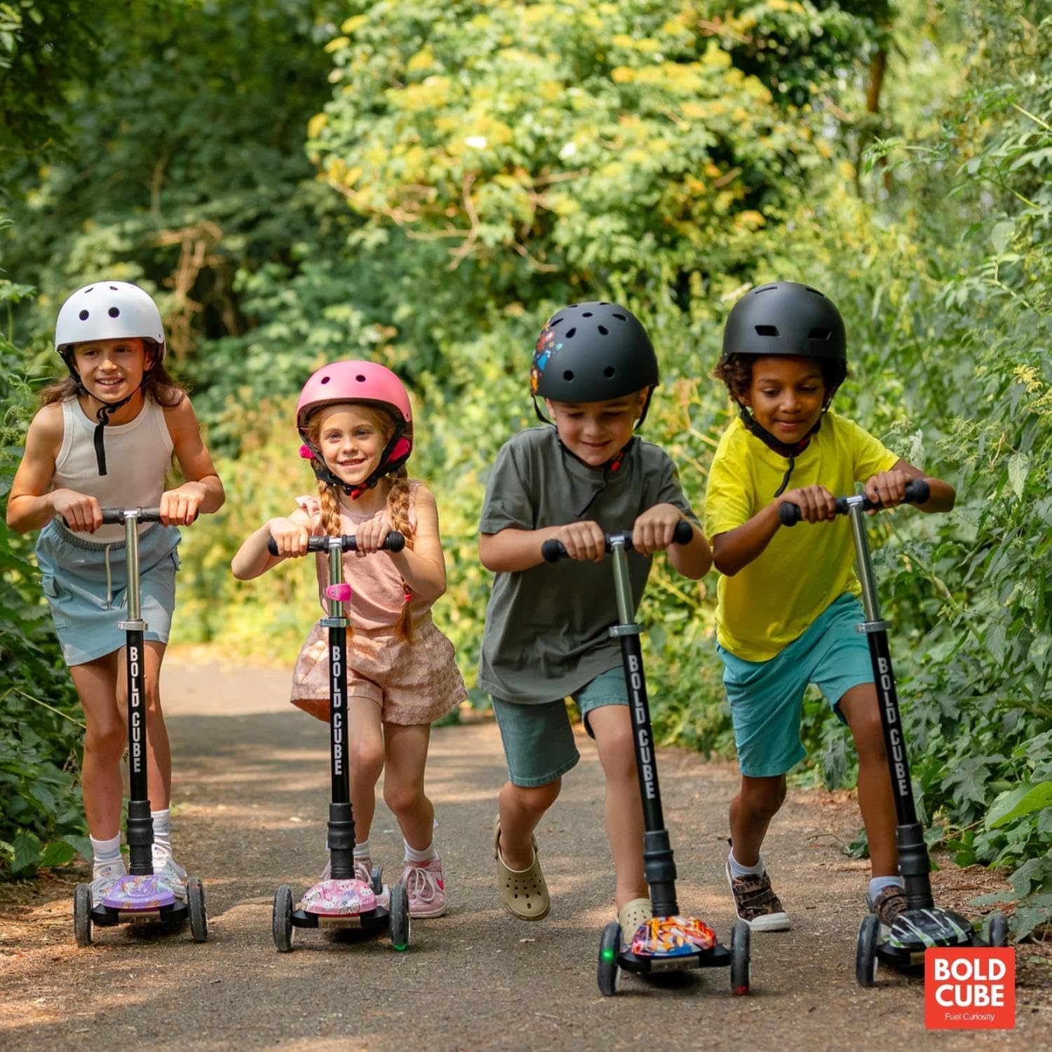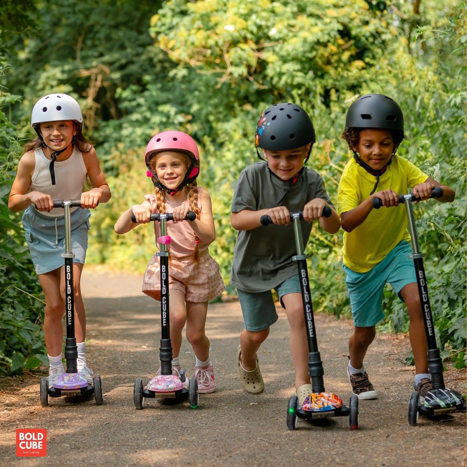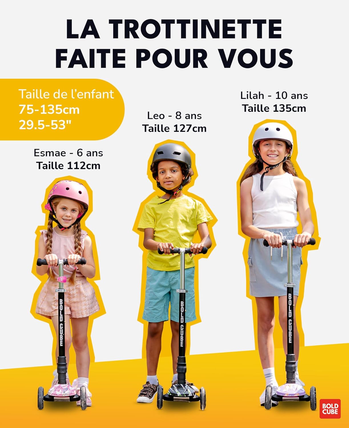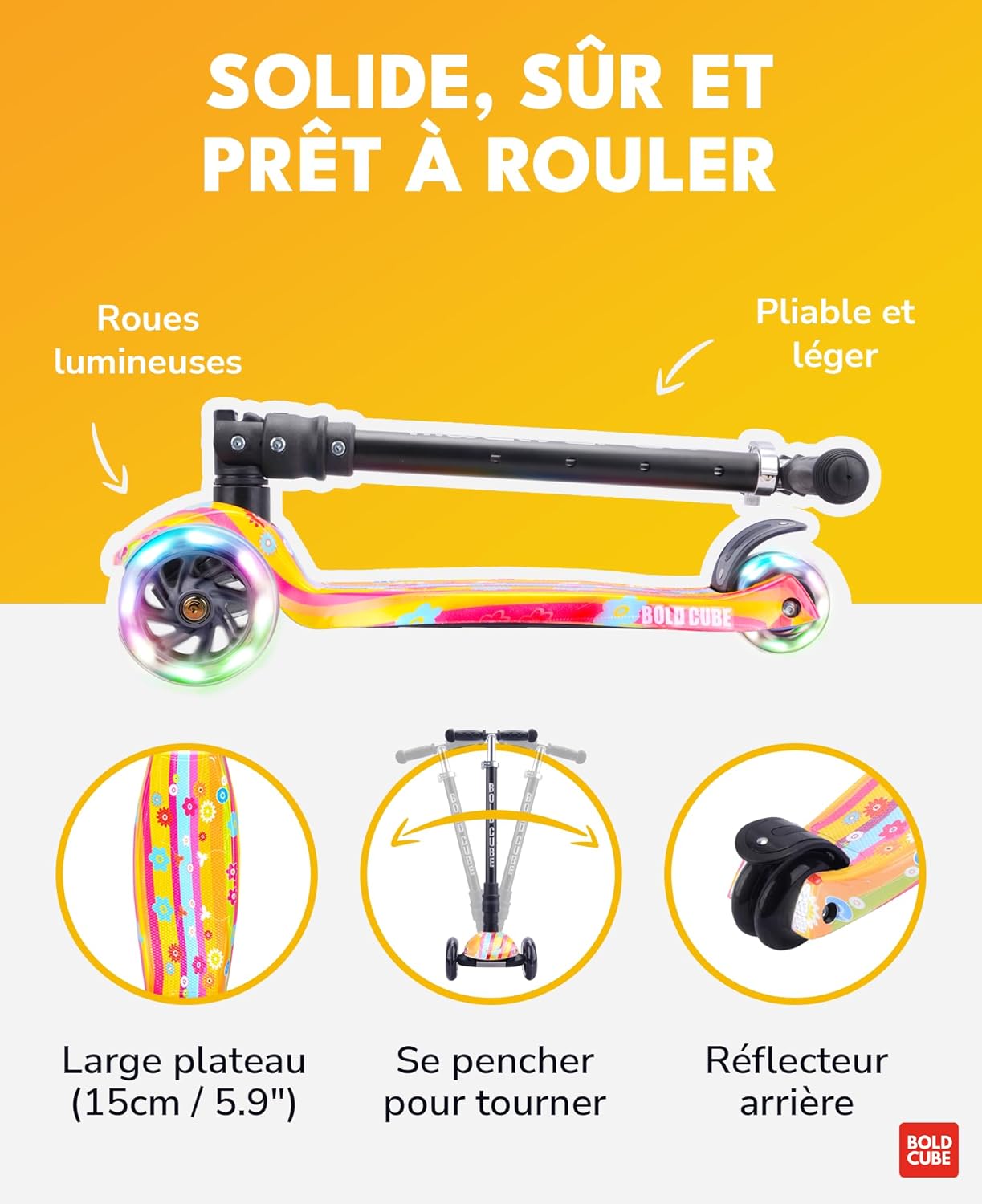 IL MARCHIO INGLESE N. 1 – Il monopattino “Big 3 Fold” per bambini dai 5 ai 10 anni è l’ideale per i bambini che desiderano un monopattino avanzato e scalabile. Dotato di ruote LED, catarifrangenti posteriori, un ampio poggiapiedi da 15 cm e fantastici motivi che delizieranno i tuoi piccoli MANUBRIO SCALABILE – Il manubrio regolabile in altezza del Big 3 Fold ha 4 livelli di altezza da 65 a 89 cm per una guida confortevole adattata alle dimensioni del tuo bambino RUOTE ILLUMINATE – Oltre ad essere scalabile, il “Big Fold” è dotato di ruote luminose multicolori che si illuminano al movimento e non richiedono alcuna batteria – Durevole ed ecologico! PIANI INTERCAMBIABILI – A differenza degli scooter classici, il ponte (altopiano) del “Big Fold” è sostituibile! Abbiamo un'ampia scelta di modelli che ti permettono di rinfrescare l'aspetto del tuo scooter come desideri. Ideale per prolungare la vita del tuo scooter garantendo un nuovo look IMPEGNO PER IL PIANETA - Cosa succede se una parte si usura dopo alcuni anni di utilizzo? Bella domanda! Sebbene i nostri modelli siano costruiti per durare, il tuo scooter Boldcube è COMPLETAMENTE riparabile. Boldcube si impegna dal 2017 a ridurre la propria impronta di carbonio costruendo scooter riparabili, una delle caratteristiche uniche di cui siamo così orgogliosi!