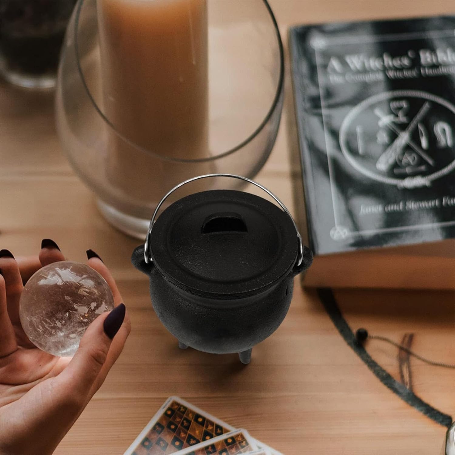 MANUSA PORTATIVA e coperchio: realizzato per incenso, incantesimi, offerte e pulizia. Ghisa robusta con manico e copertura di ferro per alte temperature e uso permanente. per rituali e decorazioni di Halloween. L'elemento d'acqua sull'altare. Il bollitore di Halloween, che si verifica in molte tradizioni della , è la rappresentazione perfetta 'elemento d'acqua femminile e uterino sull'altare. Funziona come un simbolo essenziale della creazione di vita 3 piedi verticali e rialzati: il calderone è dotato di 3 piedi verticali e elevati che mantengono una distanza dalla cima del tavolo e quindi lo rendono al sicuro su tutte le superfici. I piedi sono saldamente collegati alla pentola e quindi non si rompono così facilmente. Gestione semplice: con una maniglia pratica e un coperchio, la nostra caldaia di Halloween rende più facile l'uso e il trasporto. La maniglia può essere girata a sinistra e a destra in modo da poter adattare la posizione della pentola sul fuoco. Inoltre, il coperchio elimina rapidamente la fiamma per ulteriore sicurezza. Versatile: usa questo bollitore di Halloween per bruciare incenso, candele o offerte che la dea rappresenta la sua tradizione. È spesso usato per mescolare erbe e oli per effetti magici. Una delicata decorazione e un pezzo da collezione per la tua casa o l'altare.