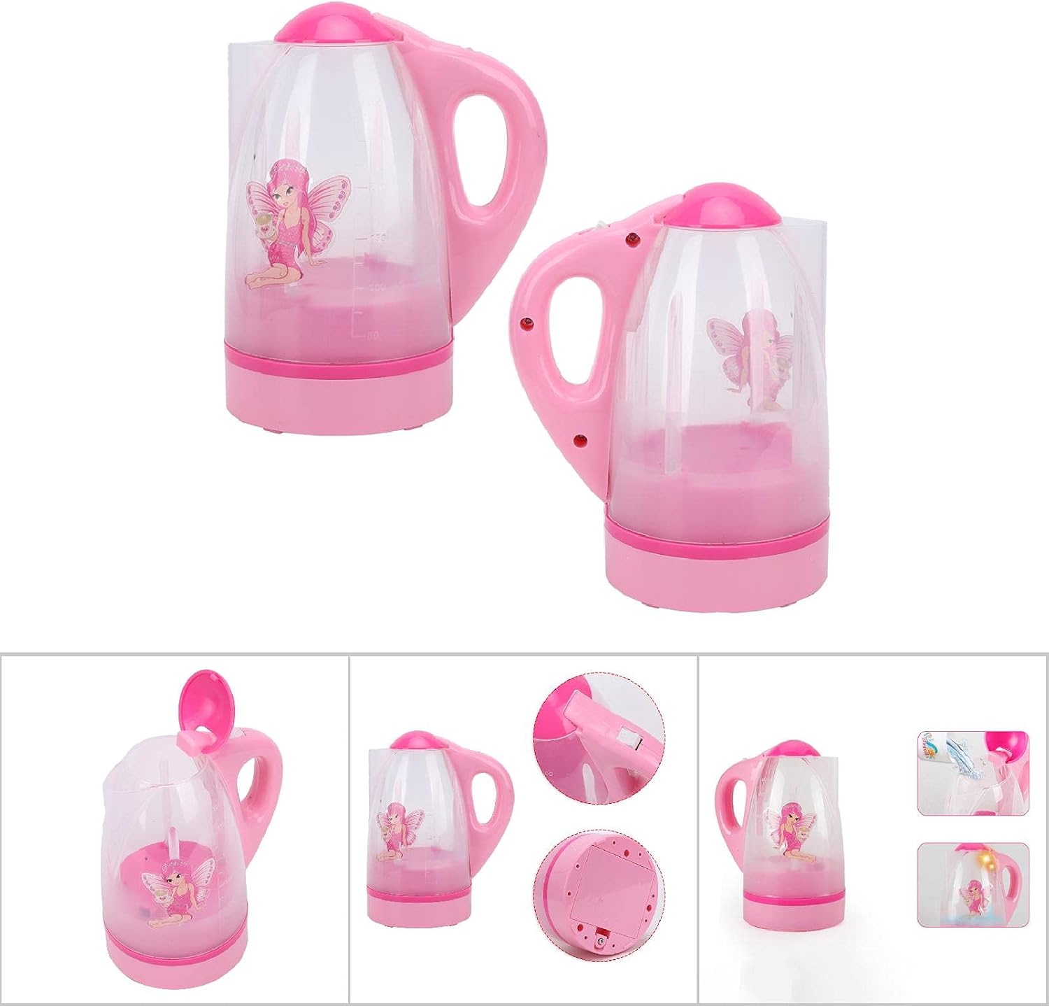 Realizzato in materiale resistente, non tossico e sicuro. Bordi lisci senza sbavature, sicuri per i tuoi bambini. Apri il coperchio superiore del bollitore, versa la giusta quantità di acqua e premi l'interruttore del bollitore per iniziare a bollire. Leggero e portatile, facile da usare e utilizzare. Favorevole alla formazione degli interessi dei bambini, allo sviluppo intellettuale, alla formazione della capacità di coordinazione occhio-mano. Meraviglioso giocattolo per bambini, adatto a bambini di età superiore a tre anni.
