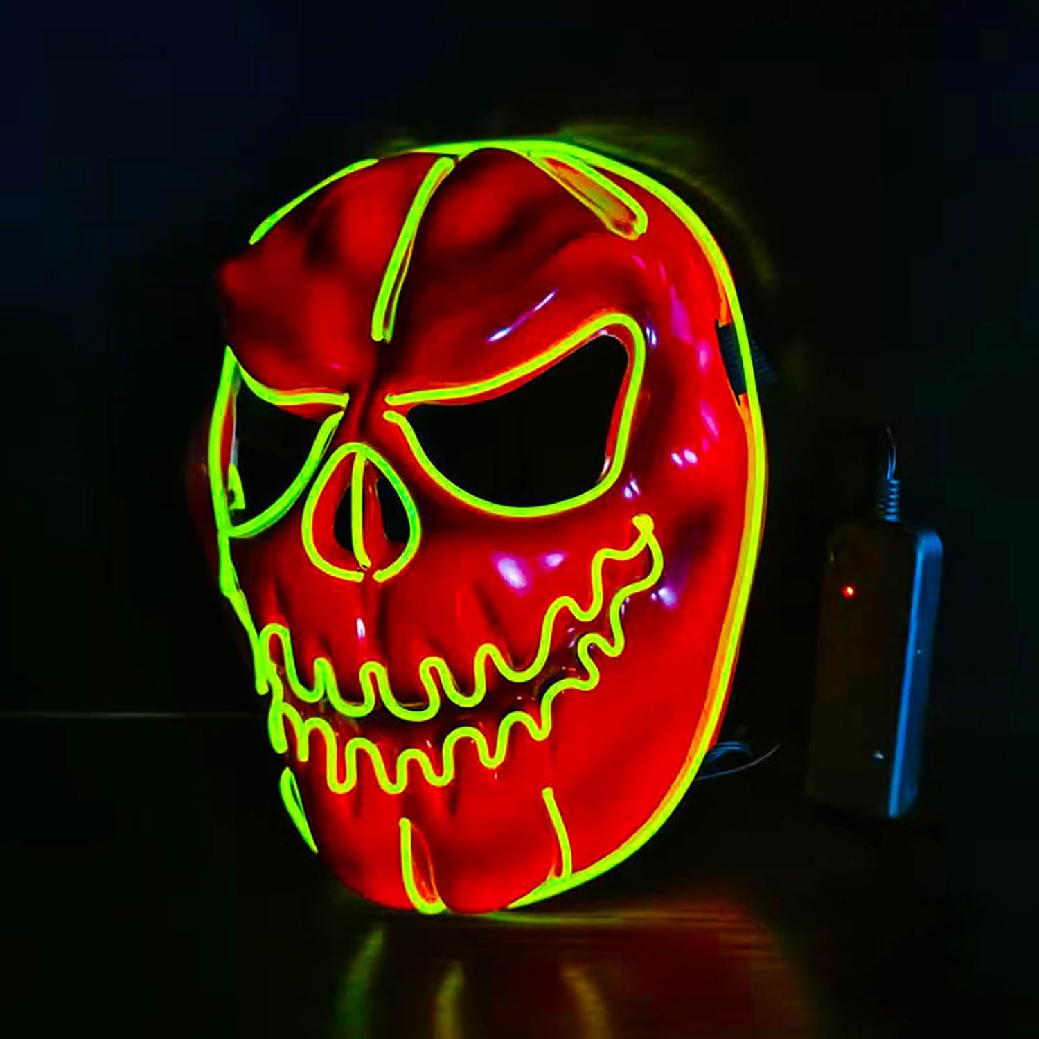 Design portatile: agganciare il Power Pack alla tasca o ai vestiti. Richiede 2 batterie AA (non incluse). È possibile regolare la funzione di illuminazione: fissa + lampeggiante lento + lampeggiante veloce + spento Dimensioni del prodotto: 17 x 23 x 8 cm Scenario di applicazione: adatto per ballerini fantasia, feste, feste di compleanno, carnevale e altri festival, spettacoli cosplay, carnevale, decorazioni, ecc. Confortevole e traspirante: con un morbido cuscinetto in schiuma all'interno, aperture per occhi, naso e bocca e spallacci regolabili, questo LED sfarfallio è perfetto per tutti gli adolescenti e gli adulti.