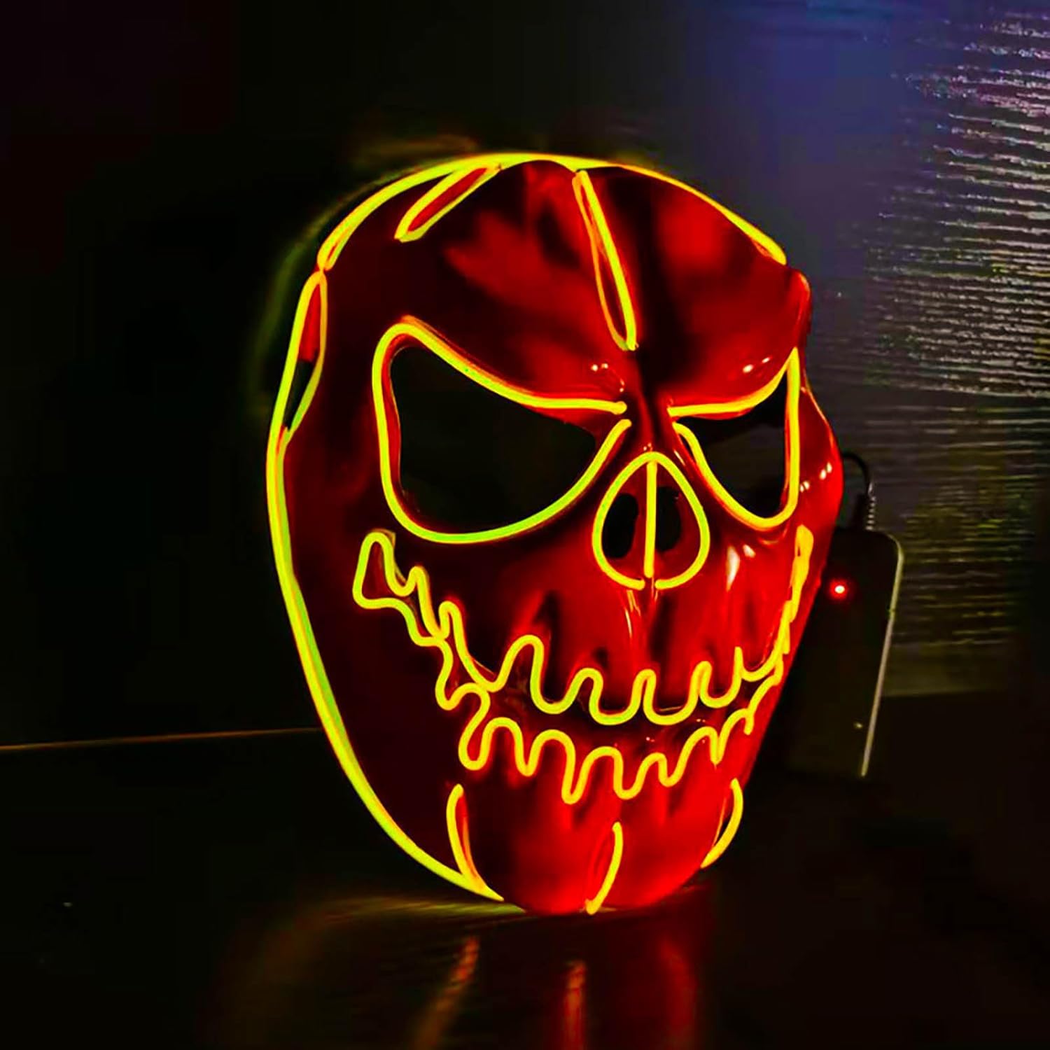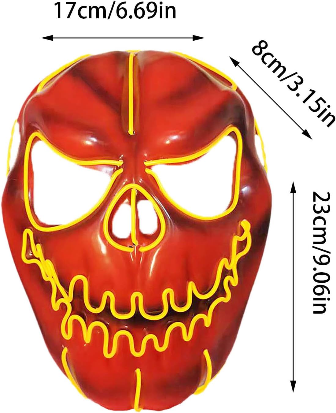 Design portatile: agganciare il Power Pack alla tasca o ai vestiti. Richiede 2 batterie AA (non incluse). È possibile regolare la funzione di illuminazione: fissa + lampeggiante lento + lampeggiante veloce + spento Dimensioni del prodotto: 17 x 23 x 8 cm Scenario di applicazione: adatto per ballerini fantasia, feste, feste di compleanno, carnevale e altri festival, spettacoli cosplay, carnevale, decorazioni, ecc. Confortevole e traspirante: con un morbido cuscinetto in schiuma all'interno, aperture per occhi, naso e bocca e spallacci regolabili, questo LED sfarfallio è perfetto per tutti gli adolescenti e gli adulti.