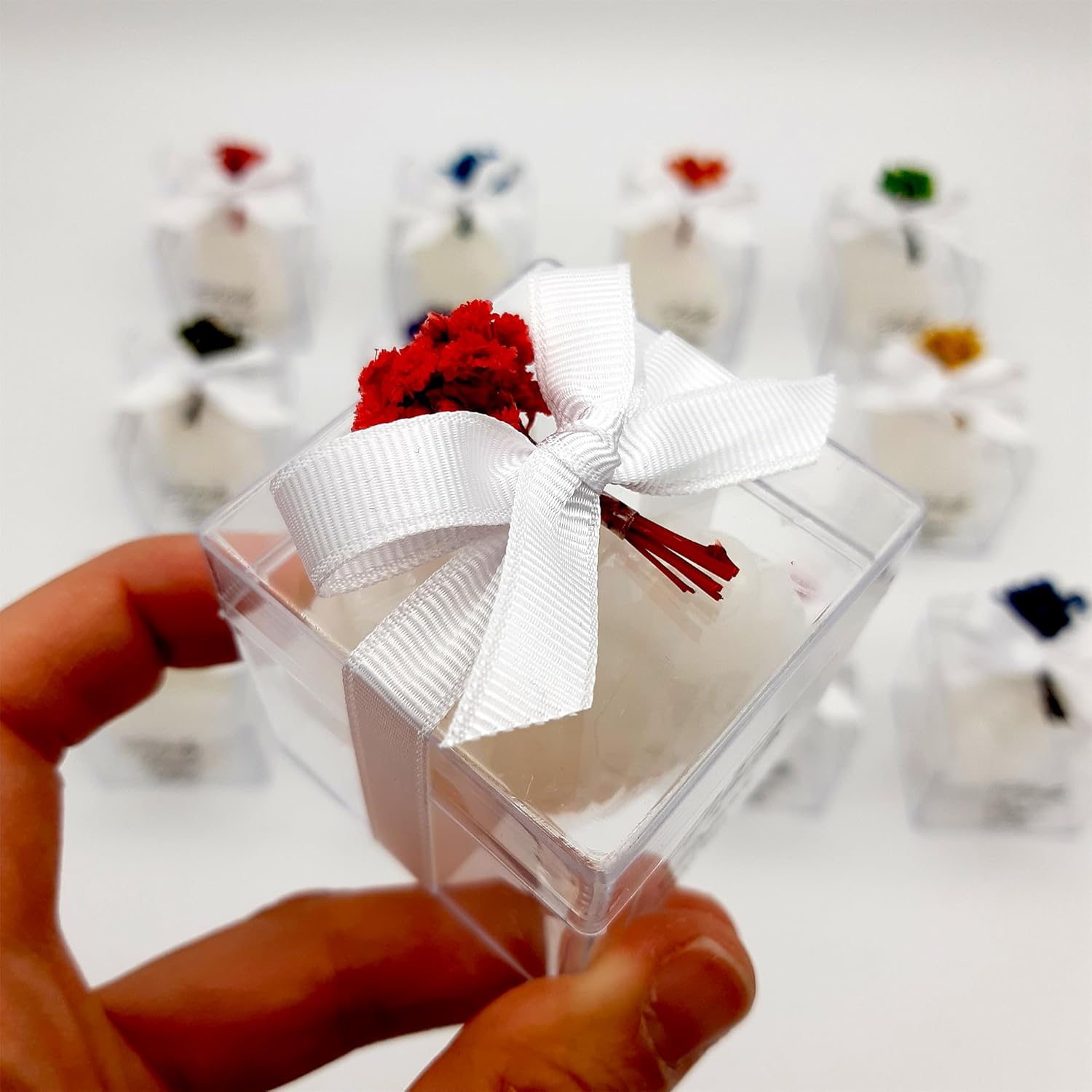 Bomboniere con candele profumate originali – Un’idea elegante e utile per stupire gli ospiti in ogni occasione speciale: battesimo, comunione, cresima, compleanno, 18 anni, matrimonio o 25° anniversario di nozze. Candele in set multipli pronte da regalare – Ogni confezione include più pezzi di candele profumate, ideali per cerimonie con tanti invitati. Perfette da usare come segnaposto o ricordo dell’evento. Profumo delicato e design raffinato – Le candele sprigionano una fragranza leggera e piacevole, confezionate in contenitori curati, adatti a qualsiasi stile: classico, moderno o shabby chic. Bigliettini bomboniera inclusi – Ogni candela può essere accompagnata da un bigliettino personalizzabile, per lasciare un messaggio speciale ai tuoi invitati o indicare data e nome dell'evento. Bomboniere versatili per ogni età e ricorrenza – Ideali per maschi e femmine, ragazzi e adulti. Perfette per creare un’atmosfera calda e accogliente, lasciando un ricordo profumato e duraturo.
