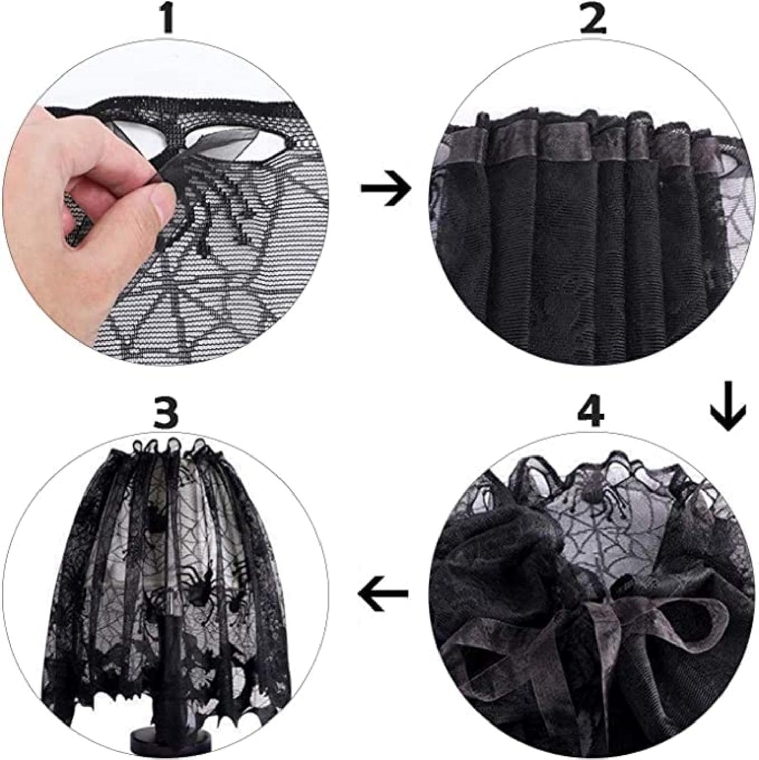 Materiale: grande pizzo di Halloween che può essere utilizzato anche come copertura paralume di Halloween. La copertura del paralume è abbastanza bella e il design è chiaro e cucito bene. Si prega di tenere il paralume lontano da una fiamma libera. Contenuto della confezione: 1 paralume + 1 nastro nero. Questo nastro ti aiuta a regolare la lunghezza per adattarsi a lampade di qualsiasi dimensione. Sicuramente un po' di spettralità per la tua stanza. (Nota: la lunghezza del nastro è più corta del paralume, ben abbinata) Dimensioni perfette: 152 x 47 cm, la copertura per paralume di Halloween funziona alla grande per! È regolabile, quindi se lo desideri più lungo o più corto a seconda delle dimensioni della lampada. Starà benissimo all'ombra della luce. Ampia applicazione: la copertura per paralume in pizzo tre in uno di Halloween è adatta per paralumi, caminetti, tende per finestre, tende per porte e decorazioni da tavola, può anche essere utilizzata per abiti e scialli per bambini per feste di tutti i santi. Questa sciarpa per paralume/mantello è molto unica, ha principalmente pipistrelli sul fondo. Si tratta di una sensazione di Halloween senza essere troppo spaventoso guardando la notte di Halloween, aggiungendo un fresco.