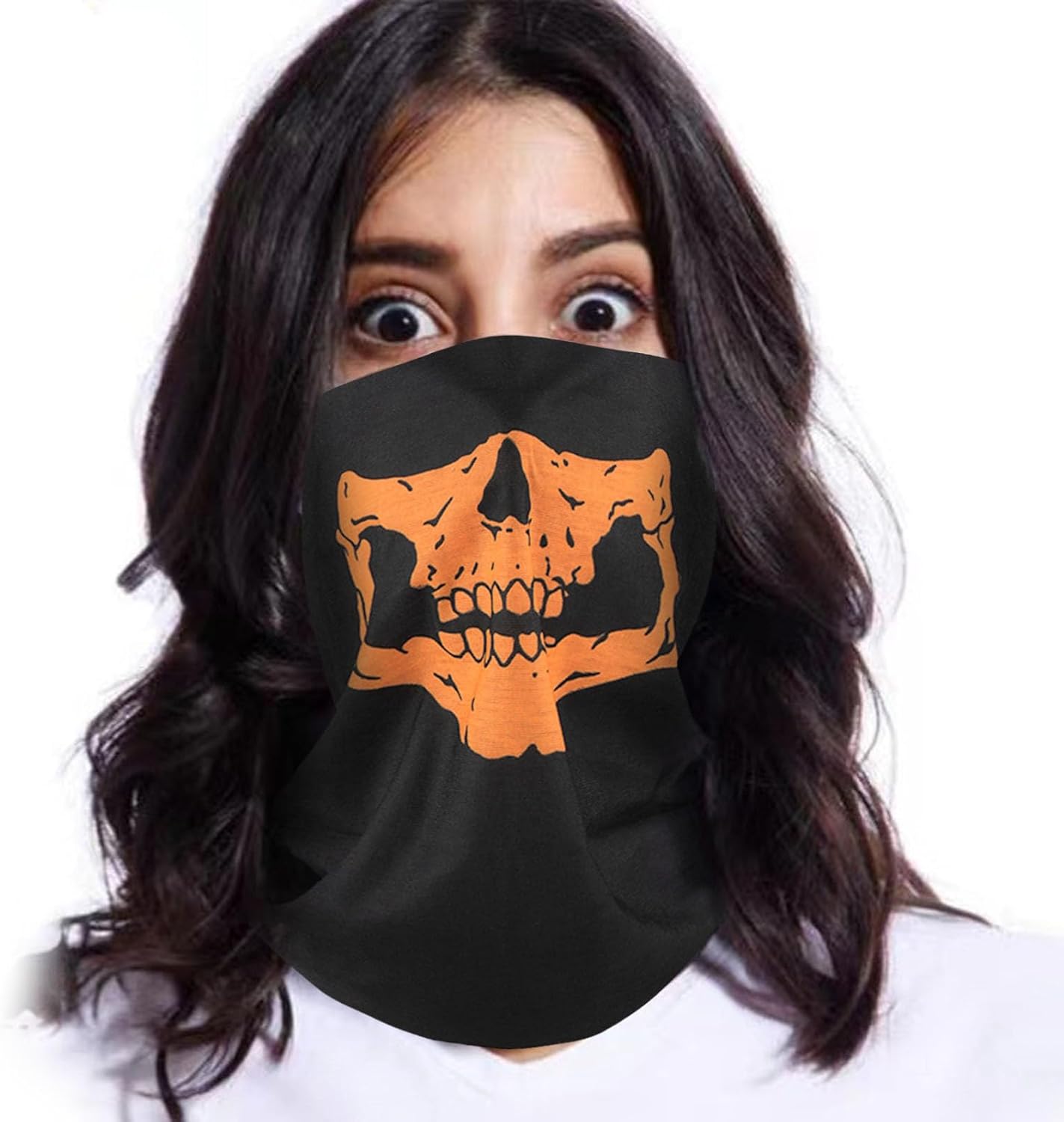 Realizzato in materiale di alta qualità, comodo e flessibile, pieghevole, con forte elastico, traspirante, assorbe l'acqua, traspirante. Costume spaventoso per feste di Halloween e accessori fornitori, perfetto per occasioni Halloween, spettacoli, cosplay e altre occasioni. Dimensioni del quadrante: 47 x 24 cm. La forma dello scheletro ti darà un look spaventoso, perfetto l'atmosfera di Halloween. Il pacchetto include: 1 viso, disponibile per equitazione all'aperto e feste di Halloween.