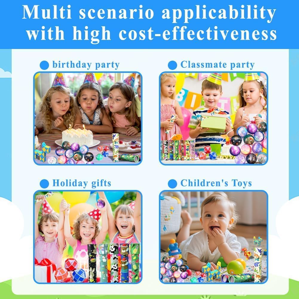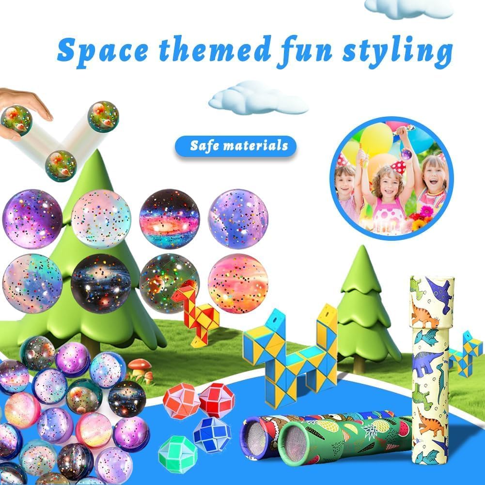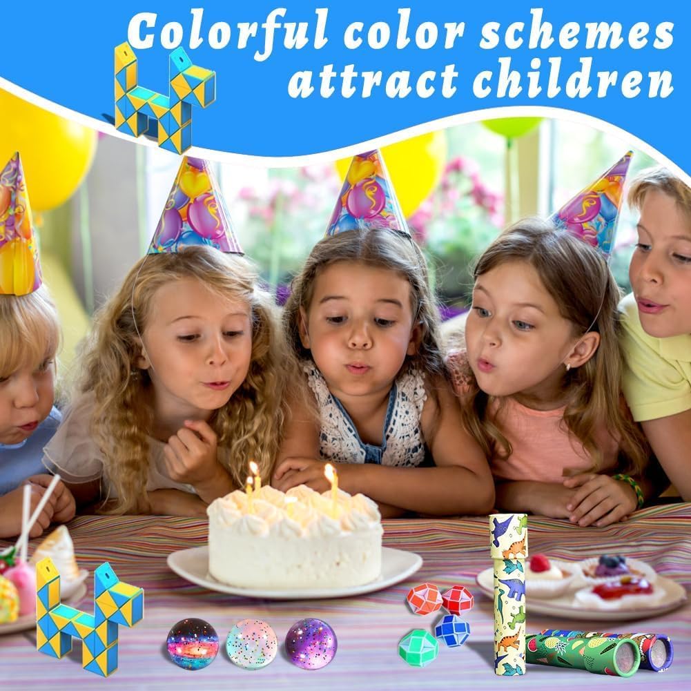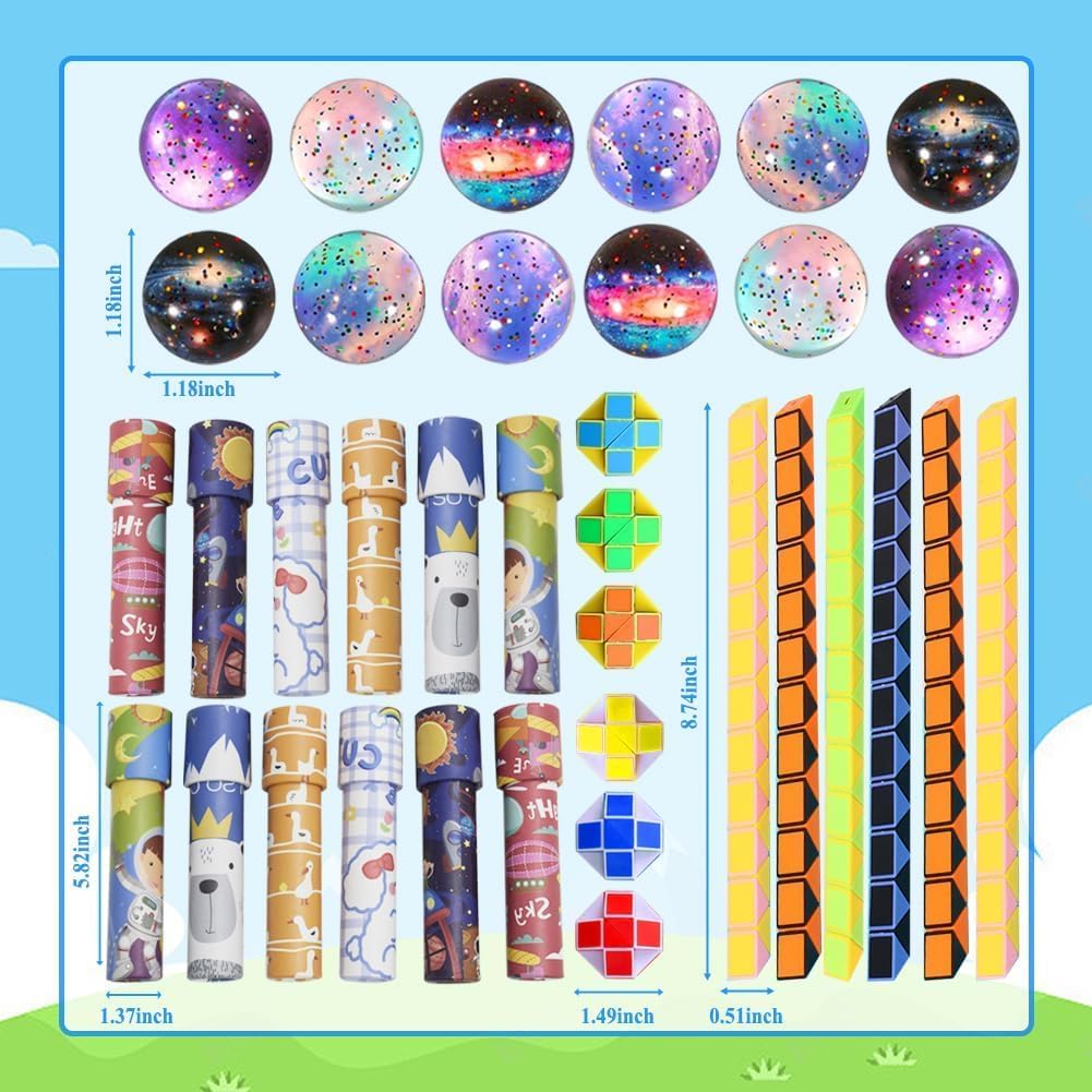 【Completamento e praticità】Questa bomboniera per feste di compleanno include 12 caleidoscopi, 12 cubi serpente multicolore e 12 palline spaziali a rimbalzo. Dimensioni comode e leggera da portare, ideale per giocare in compagnia con amici! 【Materiali di alta qualità】I caleidoscopi sono realizzati in robusta carta kraft, i cubi serpente in plastica colorata resistente, le palline in gomma elastica di alta qualità. Finiture precise, colori vivaci e texture piacevole al tocco: adatti per tutti i bambini, senza rischio di rottura! 【Sviluppo sensoriale e creatività】I motivi carini e colorati stimolano i sensi visivi, favoriscono l'imaginazione e incoraggiano i giochi di ruolo. Girando il caleidoscopio, trasformando il cubo serpente o giocando con le palline, i bambini svilupperanno creatività e coordinazione! 【Divertimento e trasformazione】Il cubo serpente si trasforma in varie figure ruotando i blocchi triangolari; il caleidoscopio rivela motivi infinitamente diversi ad ogni giro; le palline leggere e elastiche sono perfette per giochi attivi. Un set che garantisce ore di divertimento! 【Regalo ideale per ogni occasione】Perfetto come bomboniera di compleanno, premio scolastico, regalo di Natale o dono per amici. Un pacchetto che piace a tutti i bambini, sia per le feste private che per gli eventi scolastici!