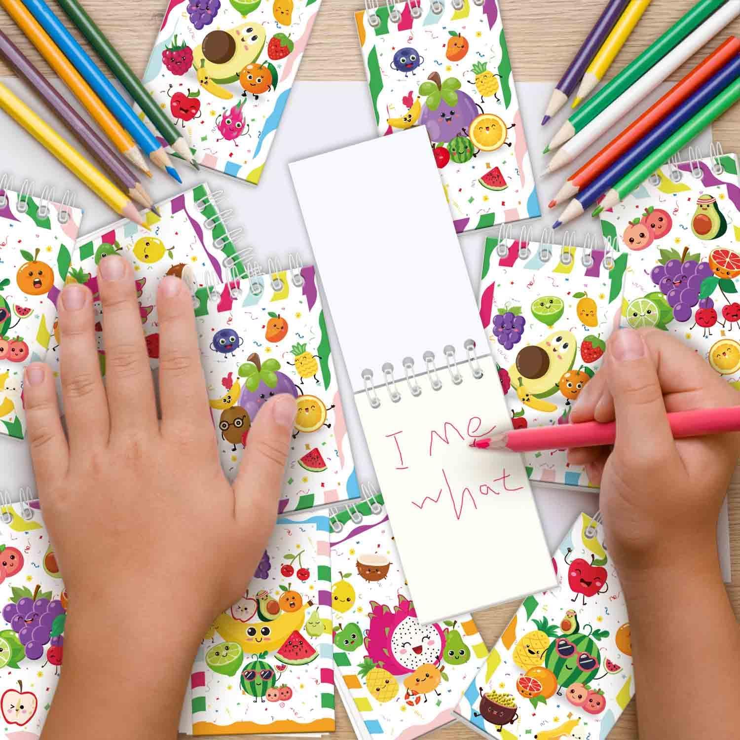 Materiale: sacchetti a tema frutta, quaderno a spirale realizzato in carta, gli adesivi sono realizzati in schiuma impermeabile, i braccialetti sono realizzati in silicone, morbidi e confortevoli. Forniture per feste di frutta: include 12 braccialetti, 50 adesivi per bagagli, 12 sacchetti regalo, 12 braccialetti schiaffi, 12 adesivi fai da te (4 stili) e 12 badge a tema frutta, sufficienti per i bambini da condividere con gli altri per divertirsi, e puoi confezionarli nei sacchetti per feste come omaggi per gli ospiti. Braccialetti a tema frutta: questi bomboniere sono realizzati in materiali PVC, comodi e sicuri da indossare, basta picchiettarli delicatamente sul polso e formeranno un cerchio e indossarlo saldamente al polso. Design a tema frutta: le nostre decorazioni per feste di frutta sono stampate con fragole, ananas, anguria e altri disegni di frutta. che soddisferà le tue diverse esigenze, crea un mondo di frutta estiva da sogno per la tua festa, carino e dolce, lasciando a tutti ricordi belli e indimenticabili. Ampia applicazione: ideale per feste estive a tema frutta, feste a tema frutta, feste di compleanno, baby shower e molte altre occasioni; decora la tua festa con queste bellissime feste a tema frutta, rendendo la tua festa un evento davvero memorabile.