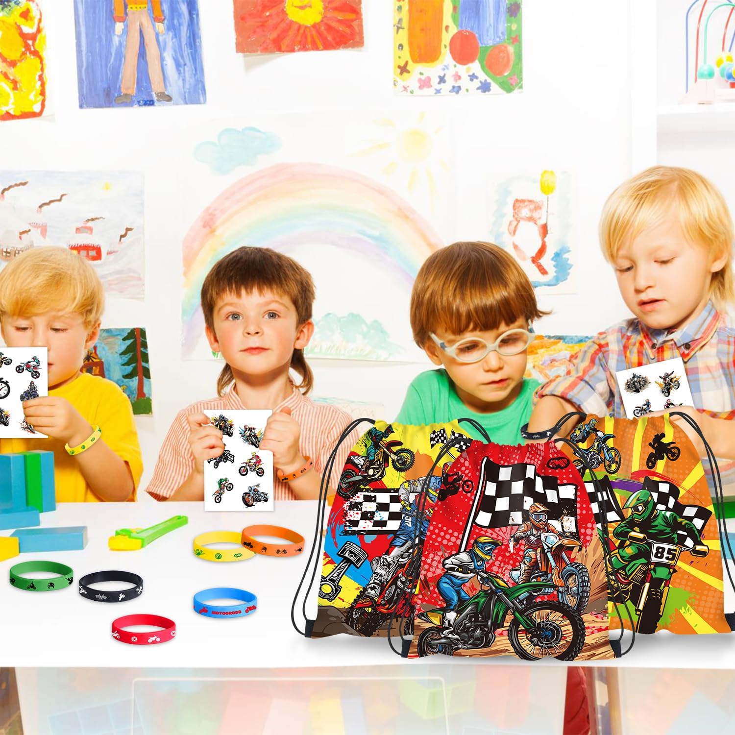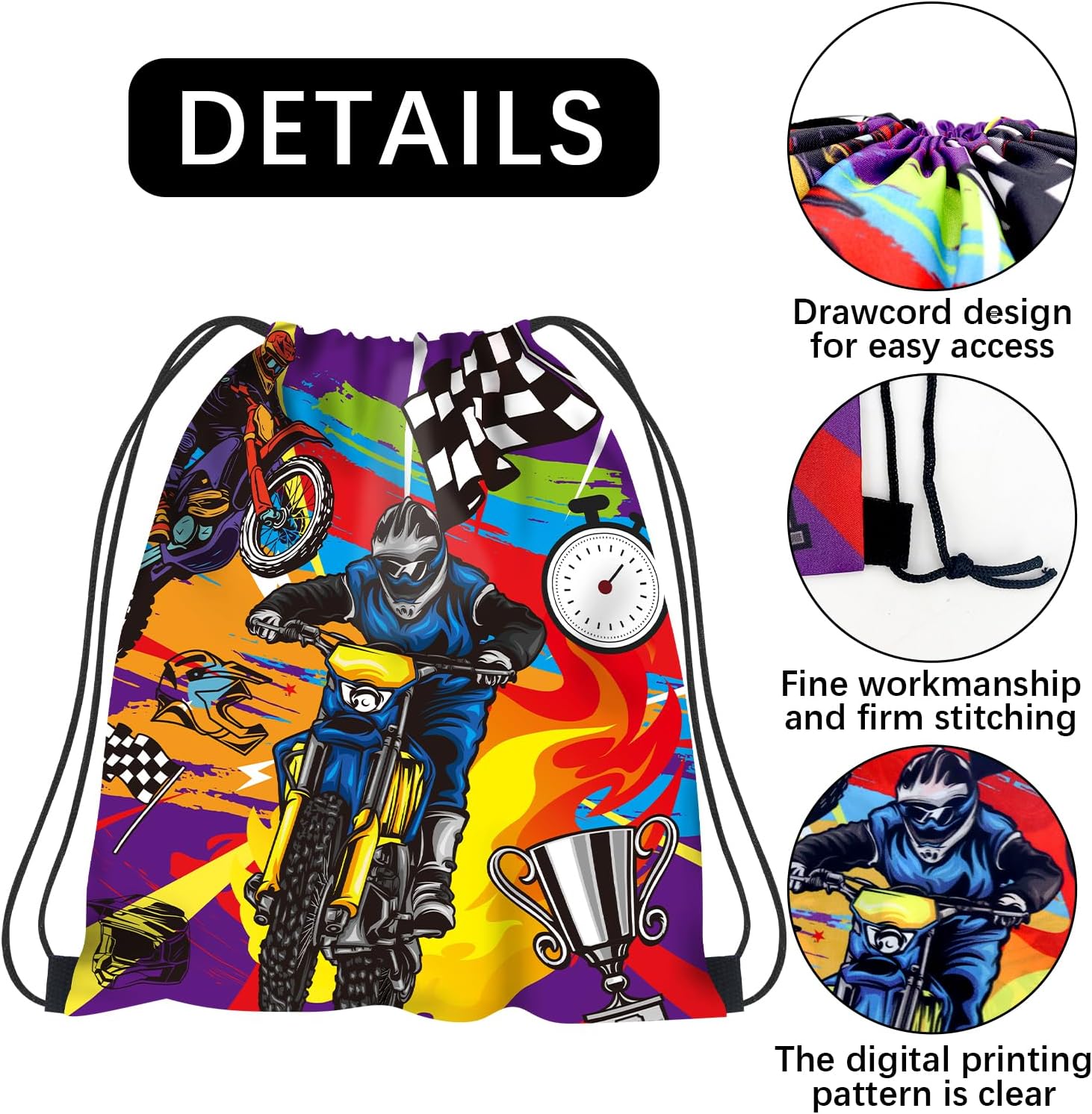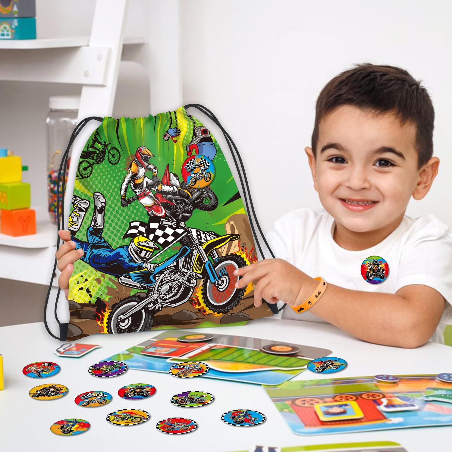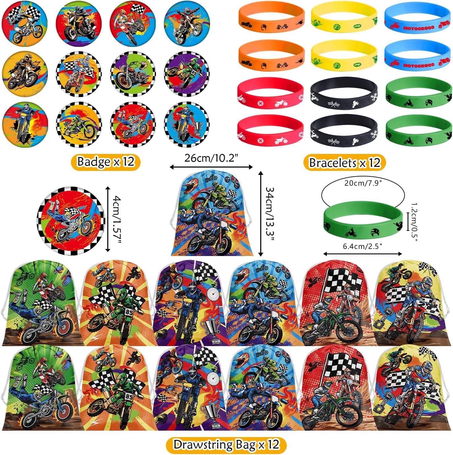 Set regalo di costruzione per bambini di grande valore: include 12 braccialetti, 12 badge per bottoni a tema Dirt Bike, 16 borse da festa con coulisse a tema Dirt Bike da 10 * 13 pollici, 6 stili, sufficienti per i bambini da condividere con gli altri per divertirsi, e puoi metterli nelle borse da festa come omaggi per gli ospiti. Materiale: queste borse per bomboniere con coulisse sono realizzate in tessuto di poliestere, che è affidabile e leggero e sono riutilizzabili. I braccialetti sono realizzati in materiale robusto, flessibile ma resistente. 12 sacchetti da festa con coulisse: nella confezione riceverai 12 sacchetti regalo di compleanno per bambini in 6 diversi modelli a tema motociclistico, 2 pezzi per ogni stile; la quantità è sufficiente per poterla utilizzare e sostituire nella vita quotidiana o nelle feste, o semplicemente per condividerla con gli altri. Design unico per bici da cross: queste squisite feste in bici da cross prediligono forniture specifiche per le persone che amano le bici da cross e gli sport. I ricchi colori tropicali, tra cui il blu, il giallo, l'arancione, il rosso e il verde, si fondono con motivi unici come tracce di pneumatici, trofei ed elementi a tema motociclistico inseriti nelle forniture per feste di compleanno per moto da cross. Molto adatto per feste a tema moto da cross o consegne di regali di club sportivi. Ampia applicazione: le bomboniere per moto da cross sono un must per ogni appassionato di moto da cross. Fanno anche ottimi regali o premi per gare di dirt bike, forniture per regali di club. Eventi scolastici e molto altro.
